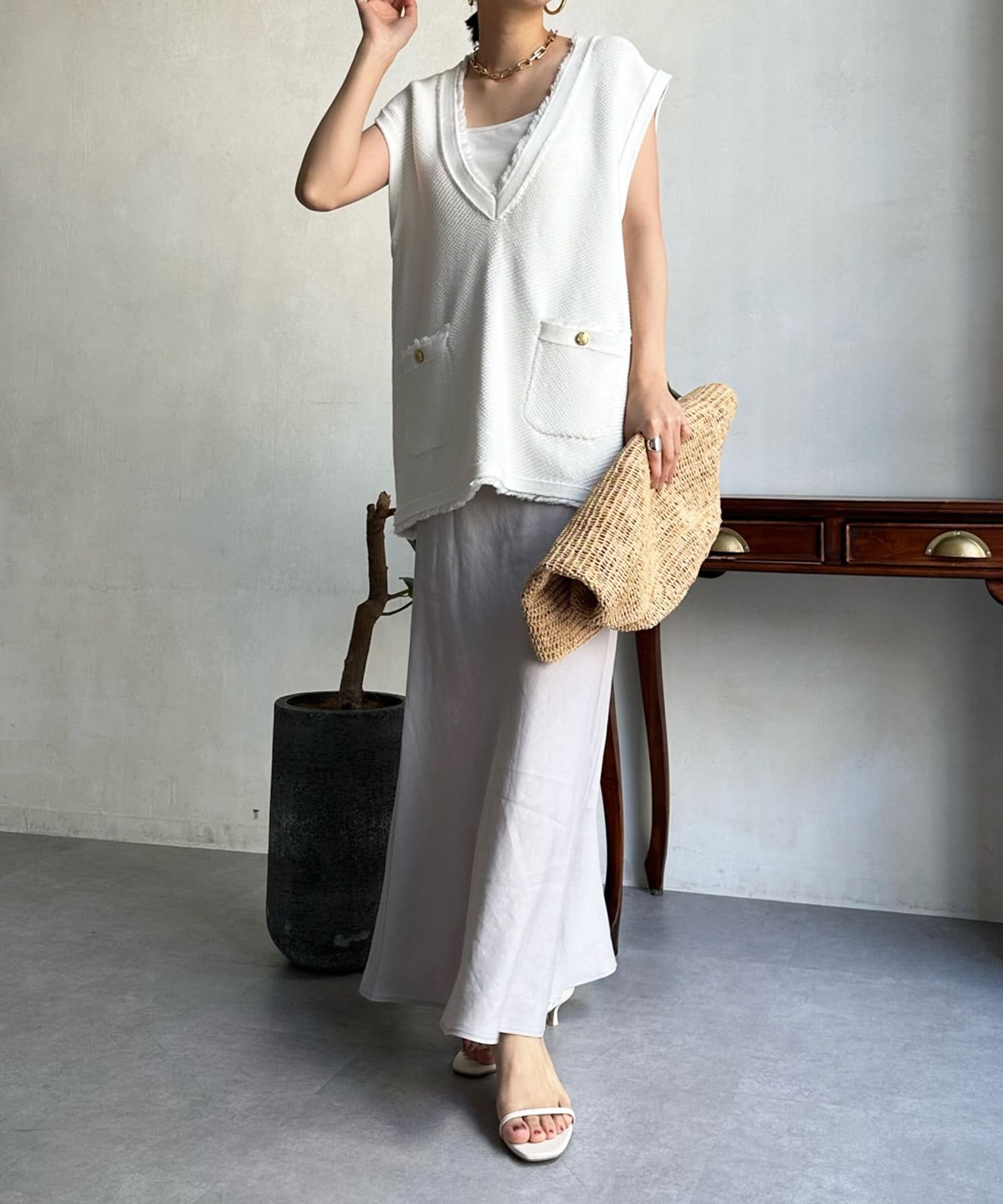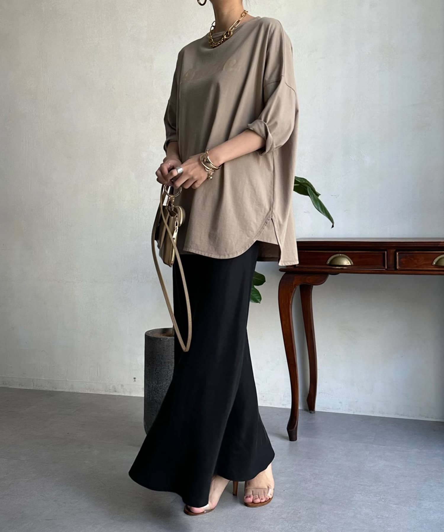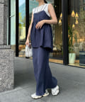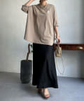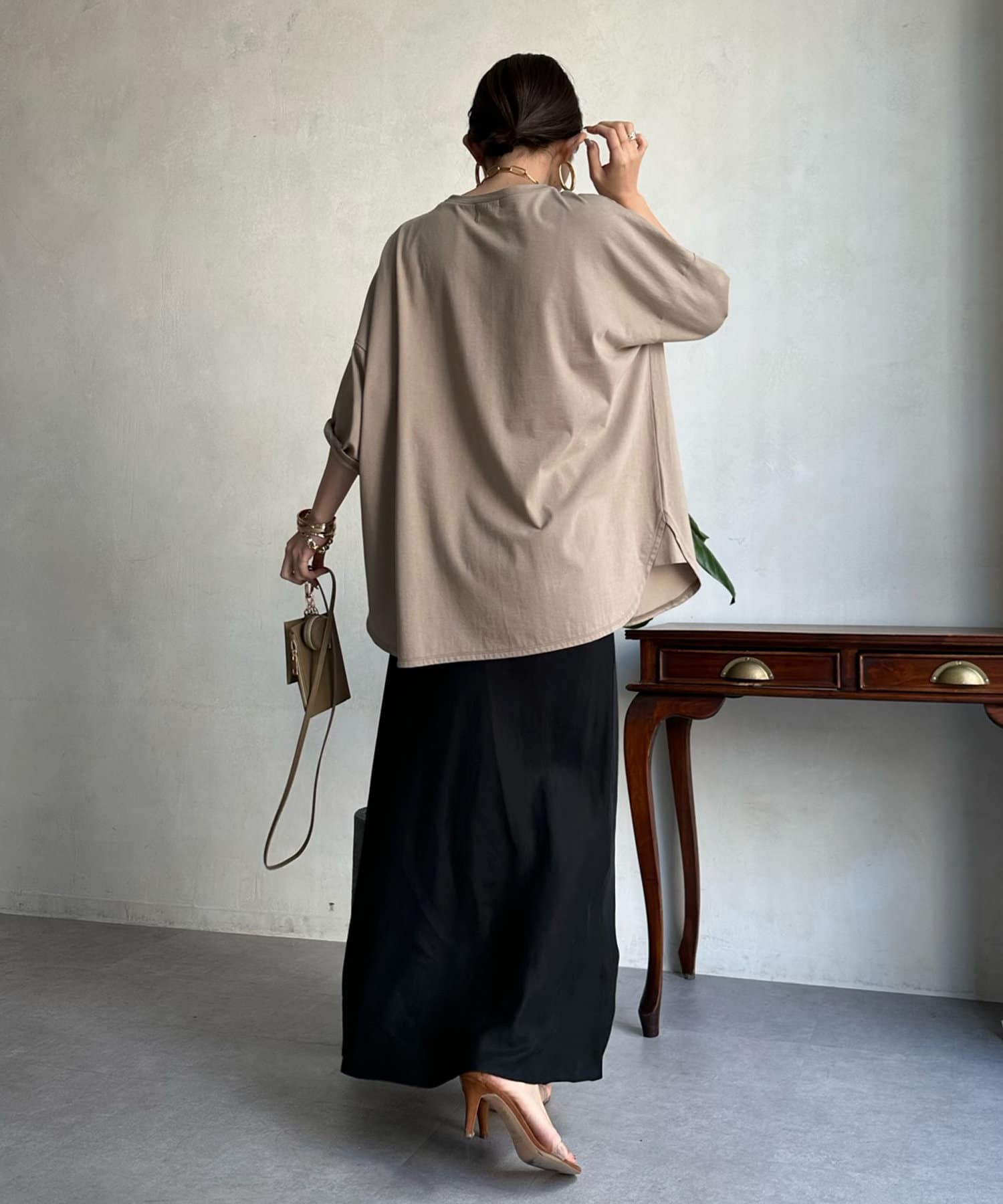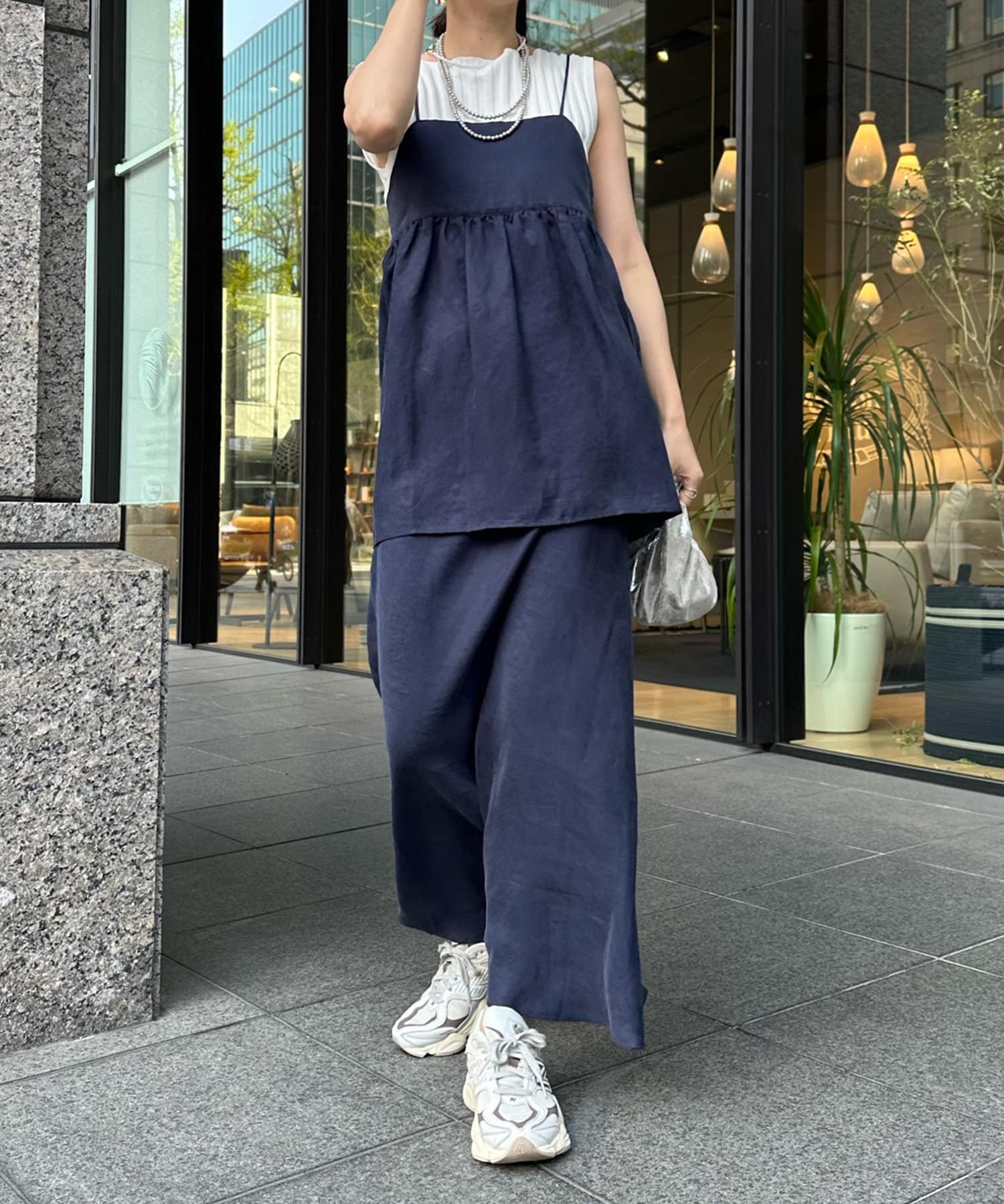 滑らかなキュプラ素材に、ナチュラルな風合いのリネン素材を混ぜた軽やかな生地感で、リラクシーな着心地に。