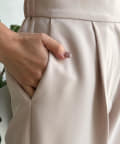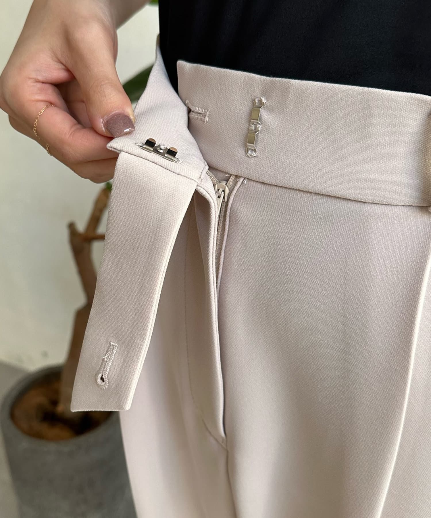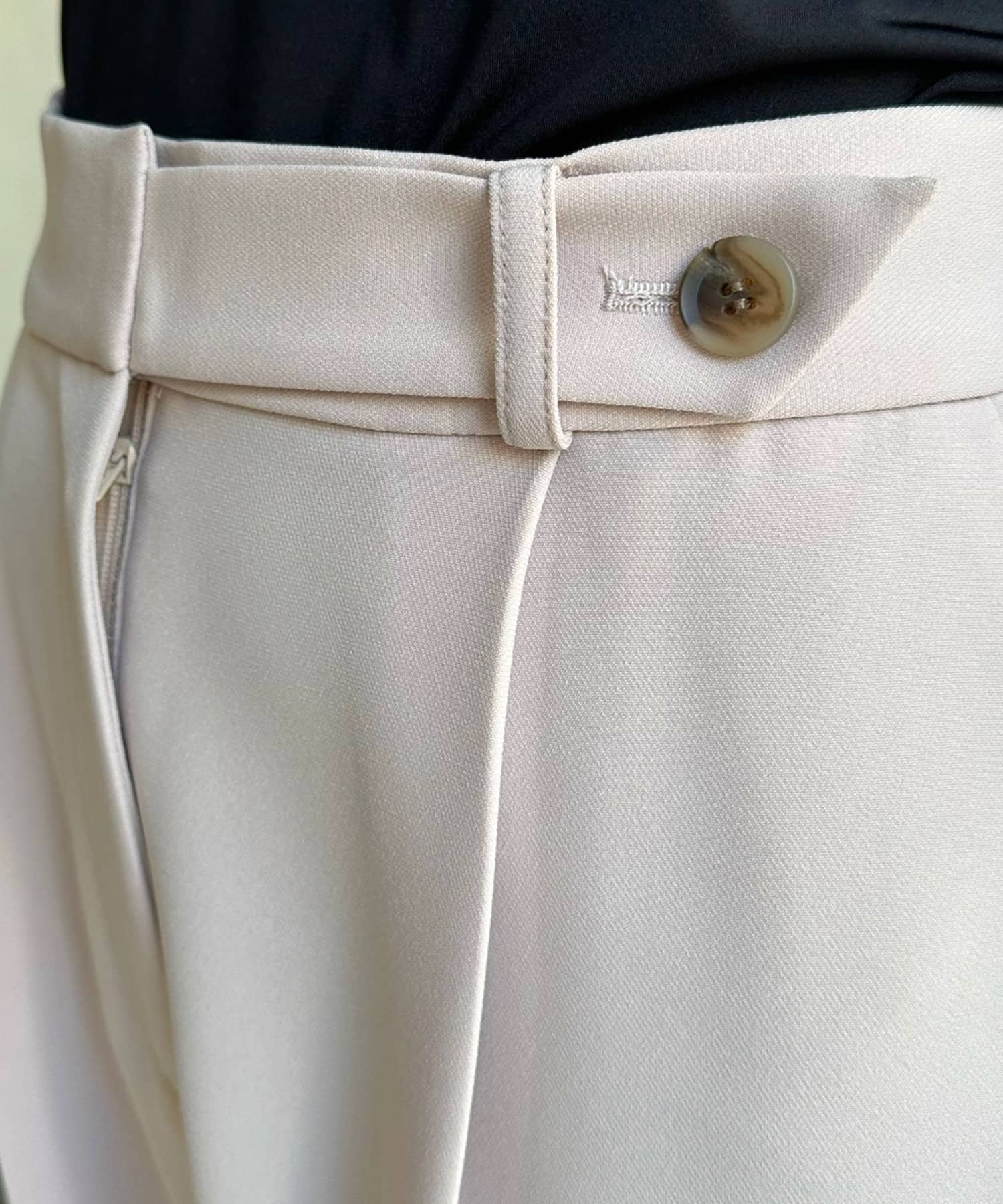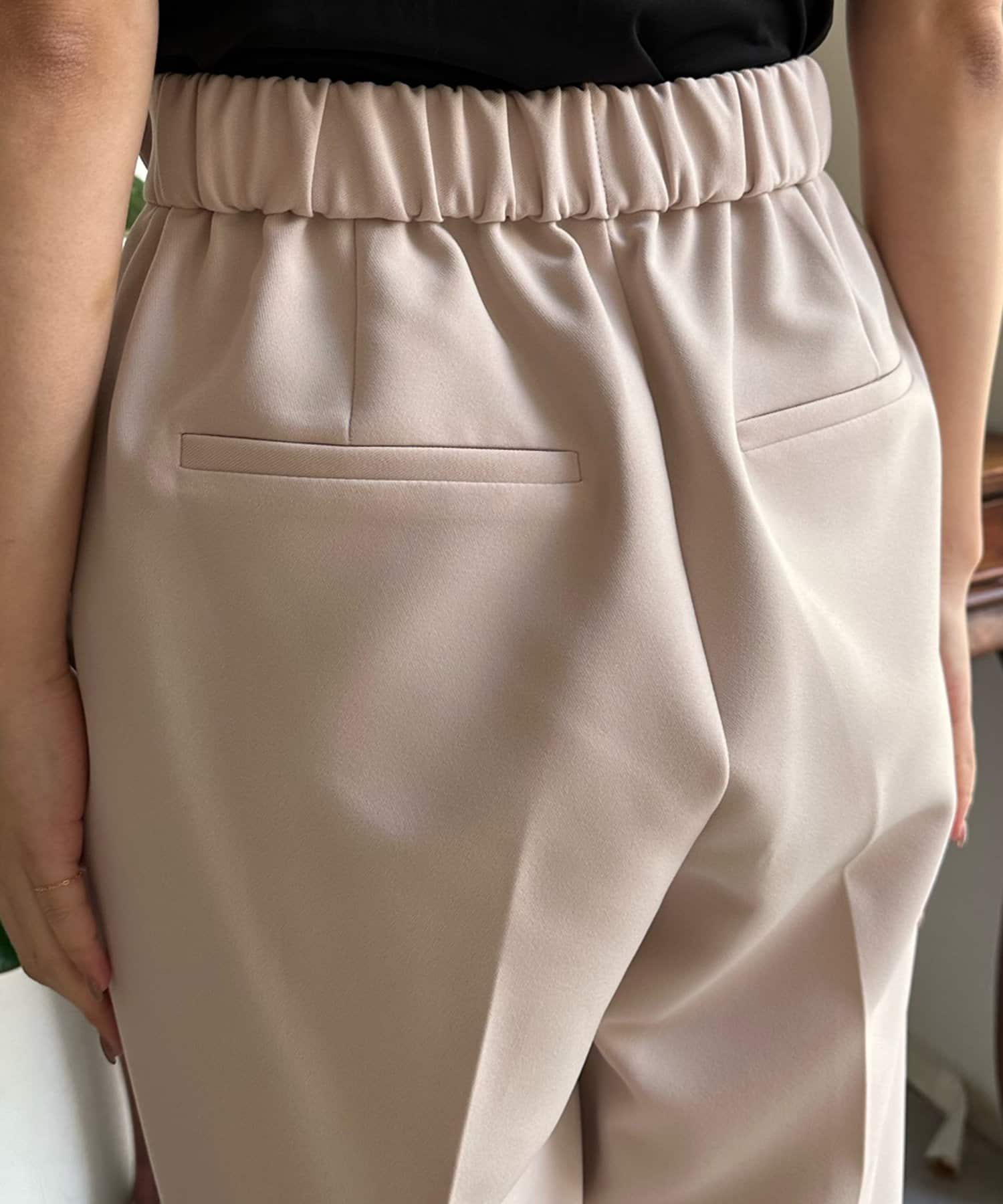 裾に向けてすっきりとしたラインのシルエットと、前後に施したセンタープレスが美脚見えをプラスしてくれます。