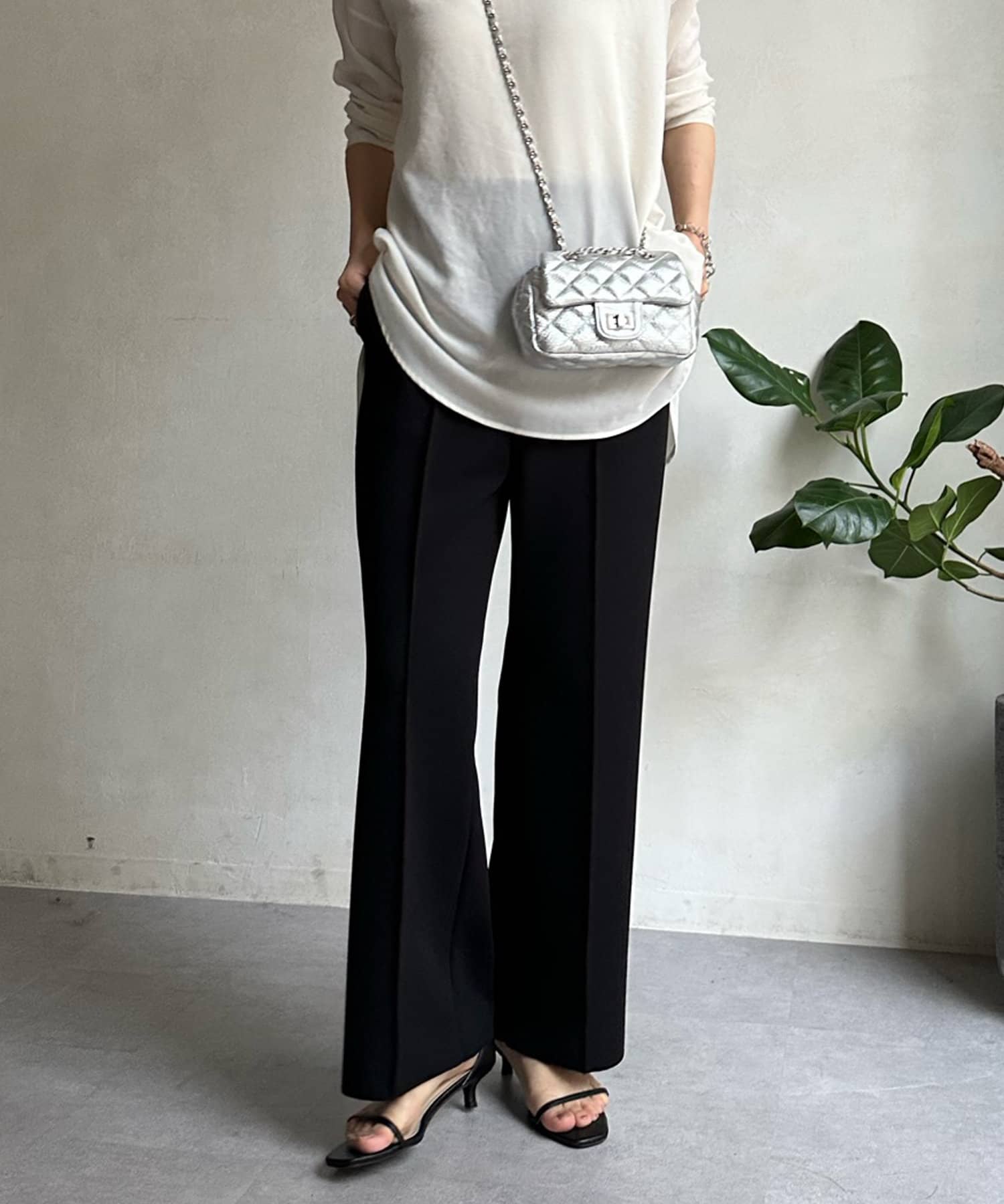 シルエットはまっすぐと落ちる、きれいな見え抜群のストレートに。フロントにはセンタープレスを施し、脚長効果をサポートします。