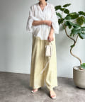 ウエストゴムでイージーな穿き心地ながら、さらっとした落ち感がある素材ですっきりと着用頂けます。