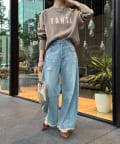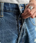 ダメージ加工を施し、裾はフリンジで仕上げヴィンテージライクな1着に。