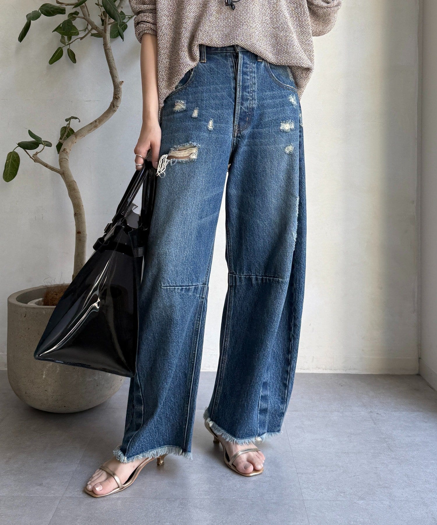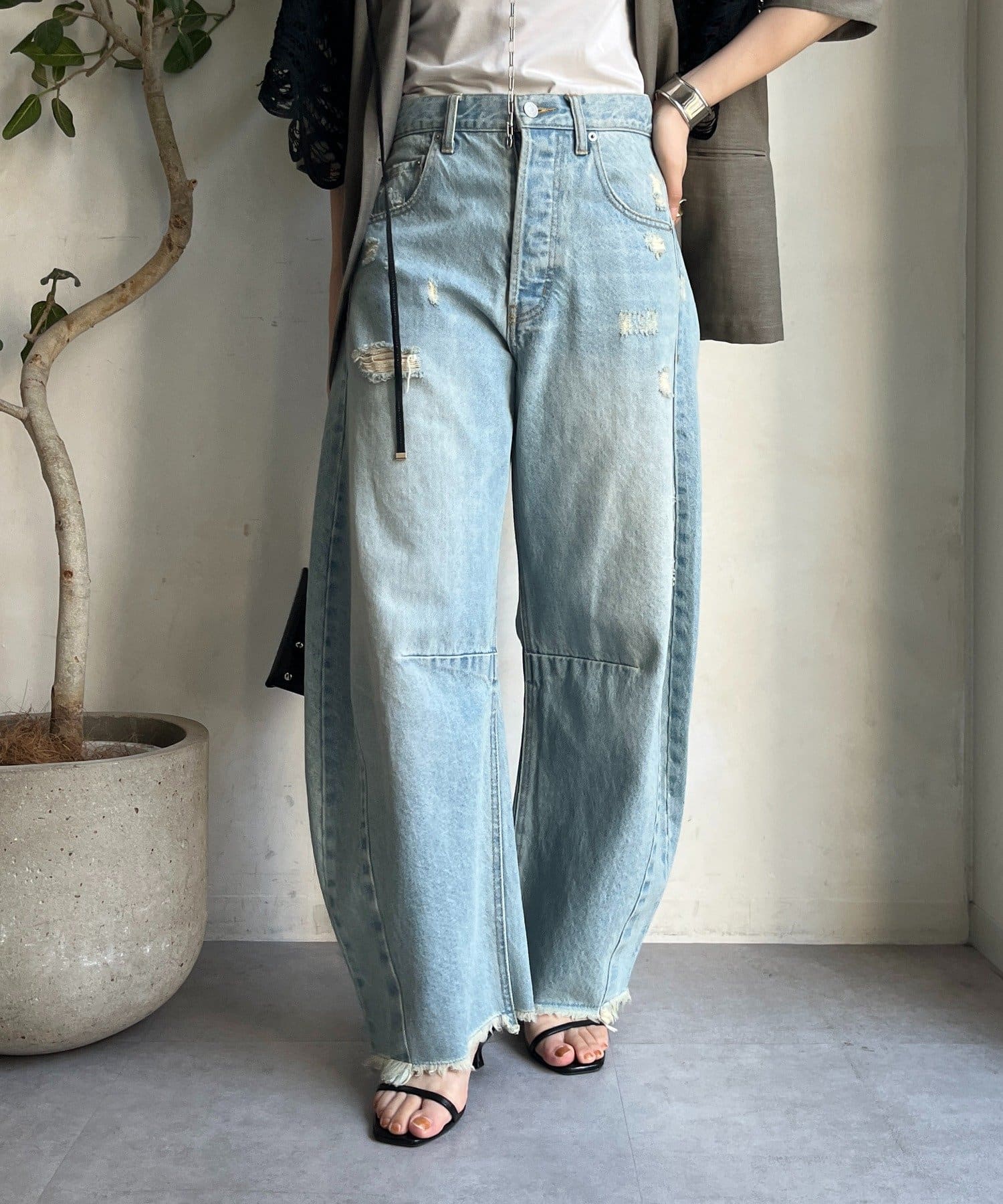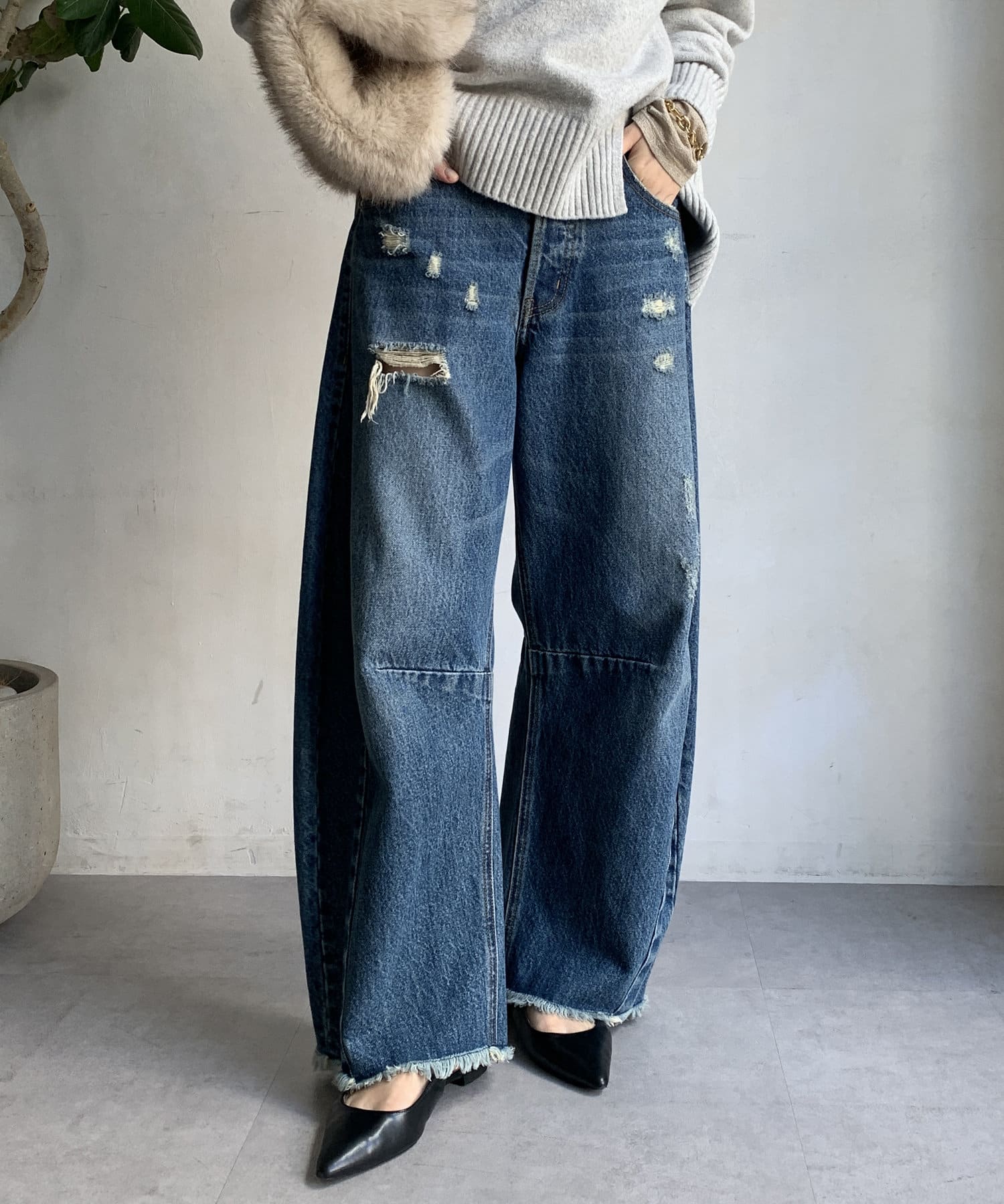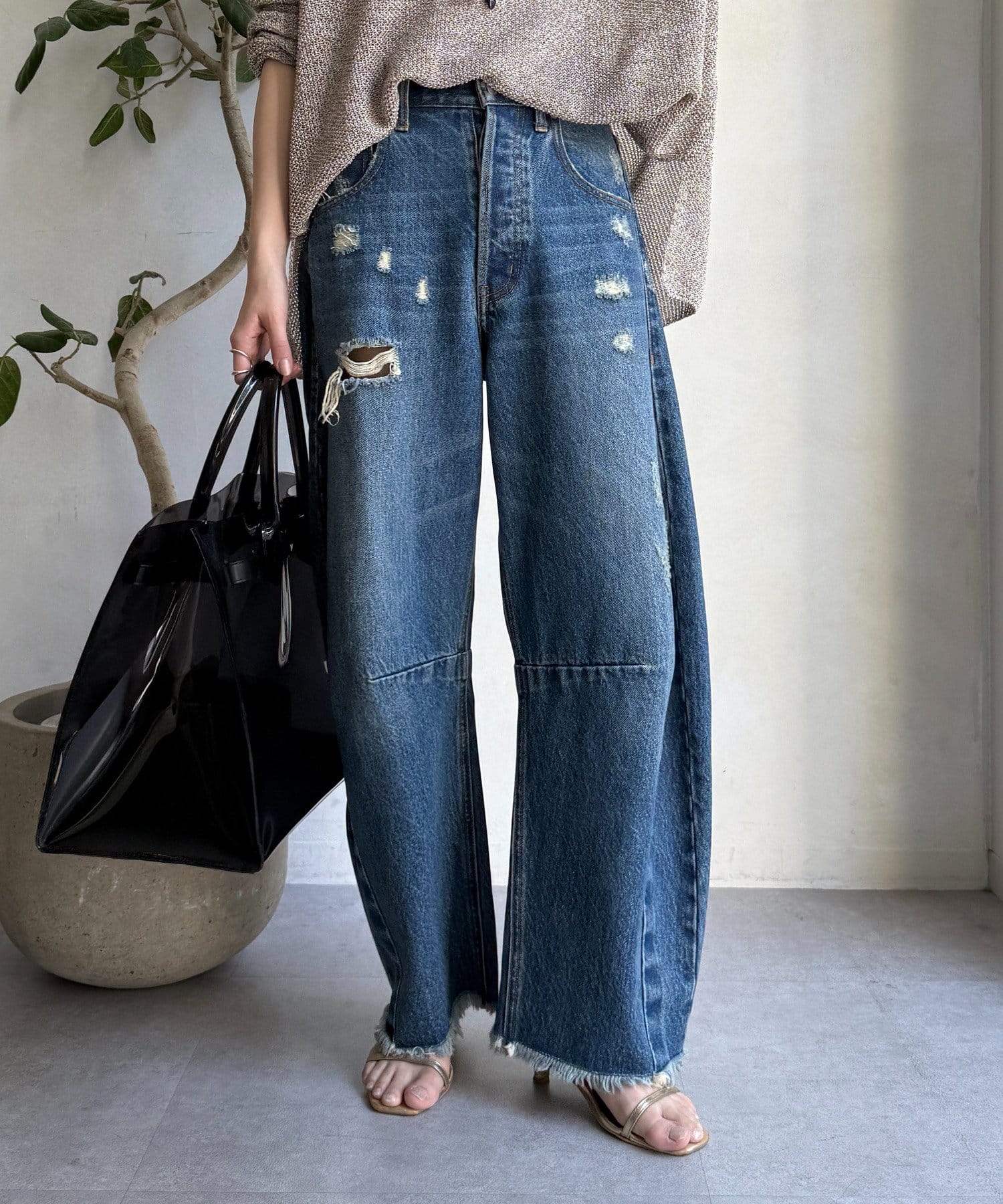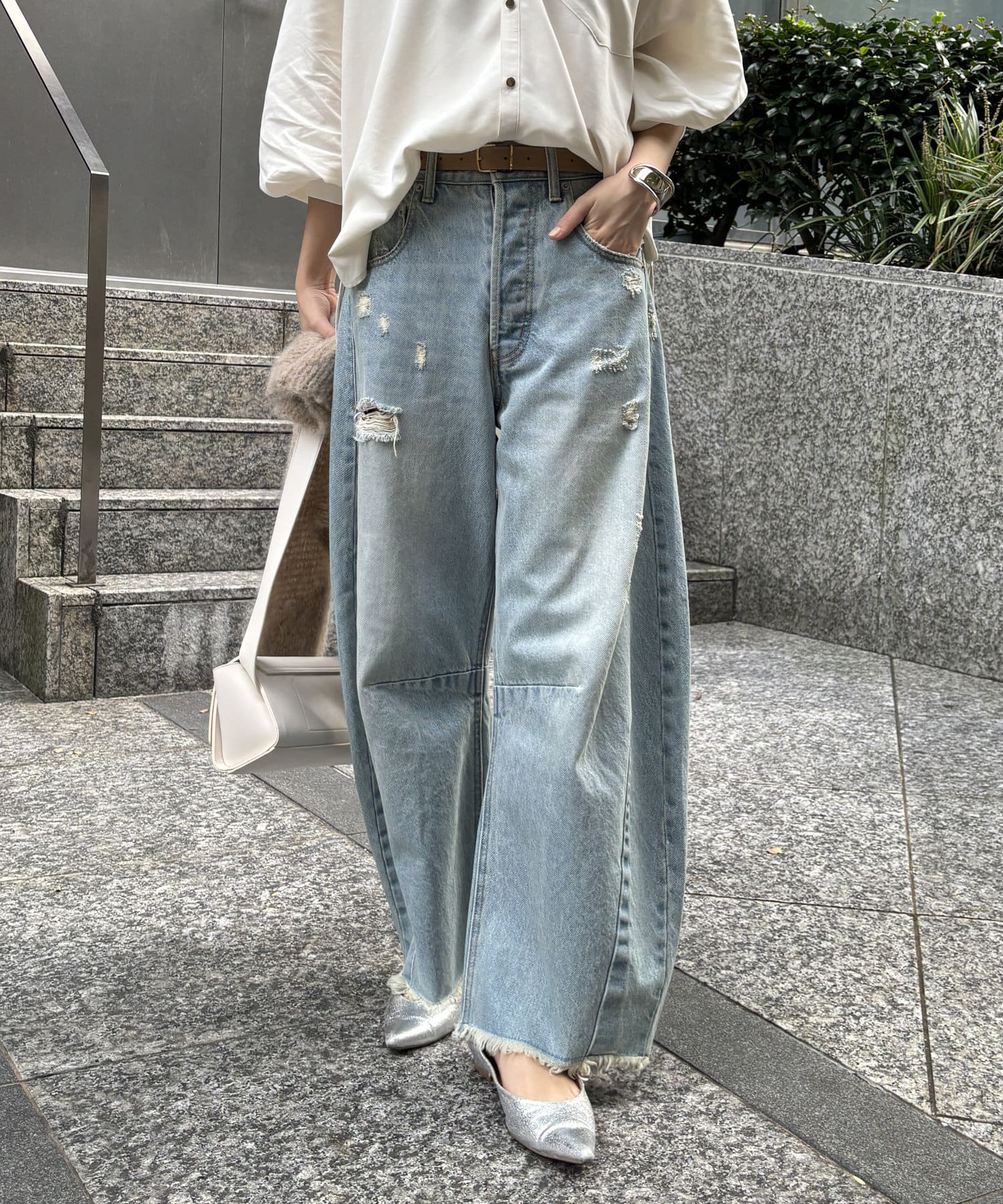 【完売カラー追加!/ベストセラーアイテム】ダメージカーブデニム
