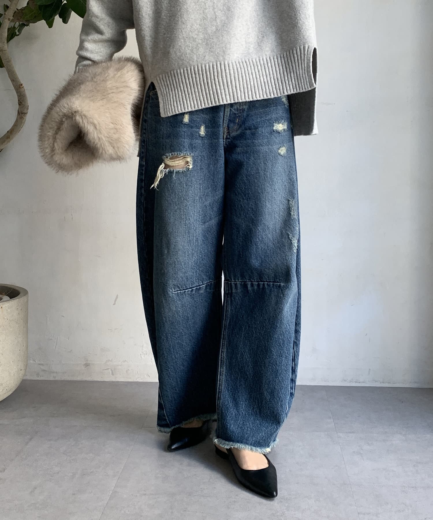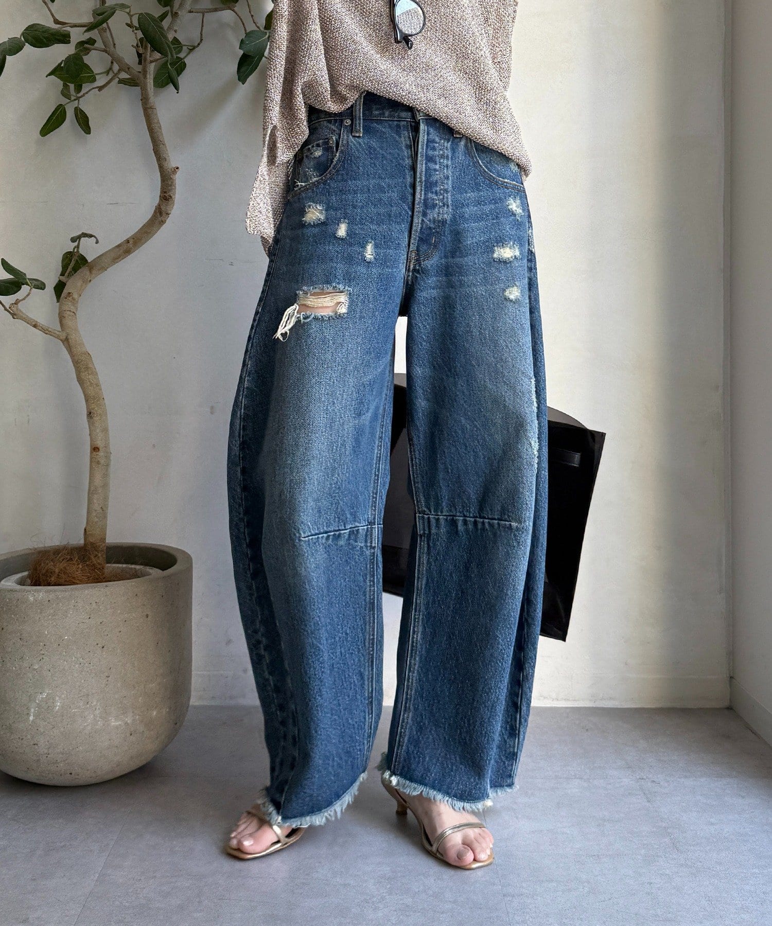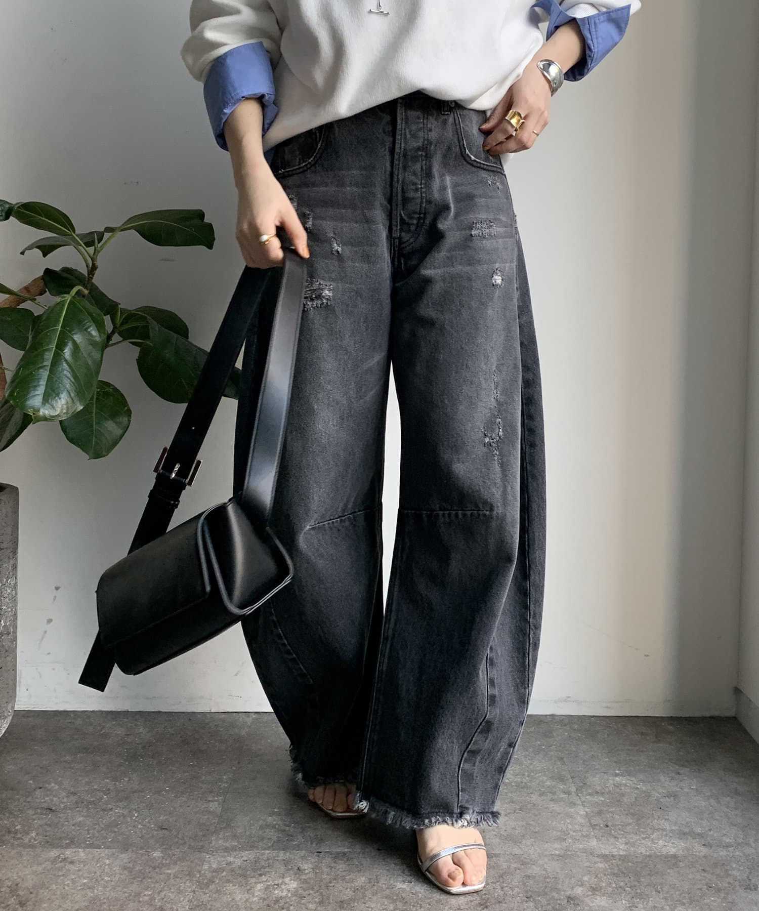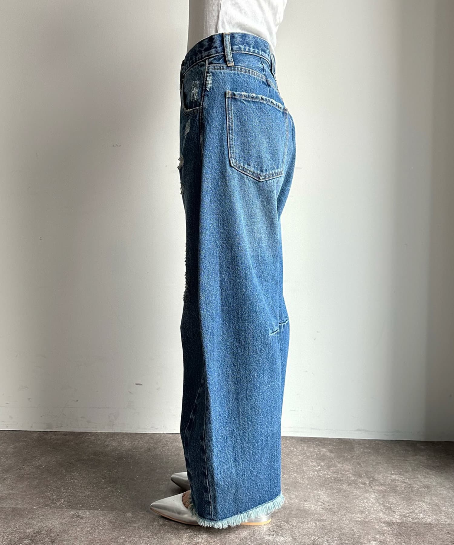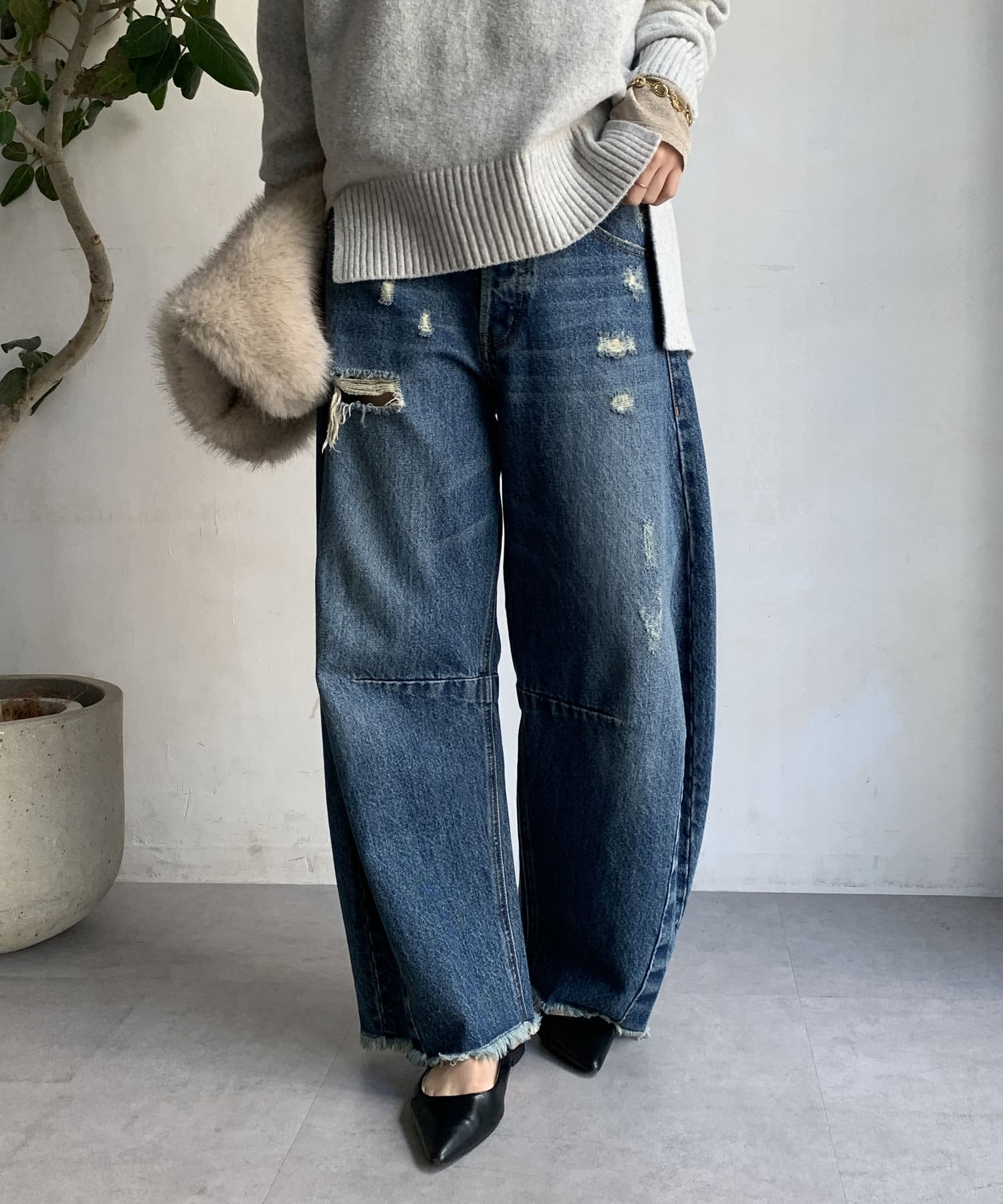 【完売カラー追加!/ベストセラーアイテム】ダメージカーブデニム