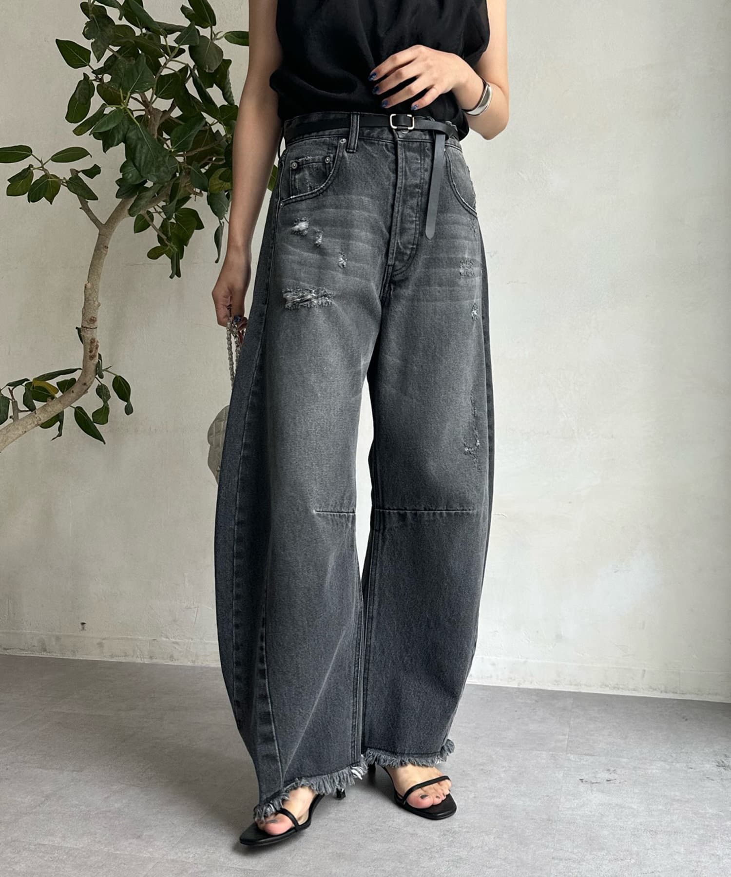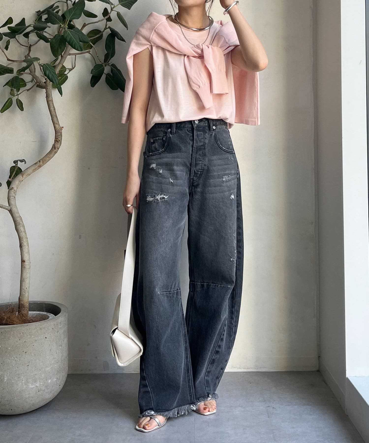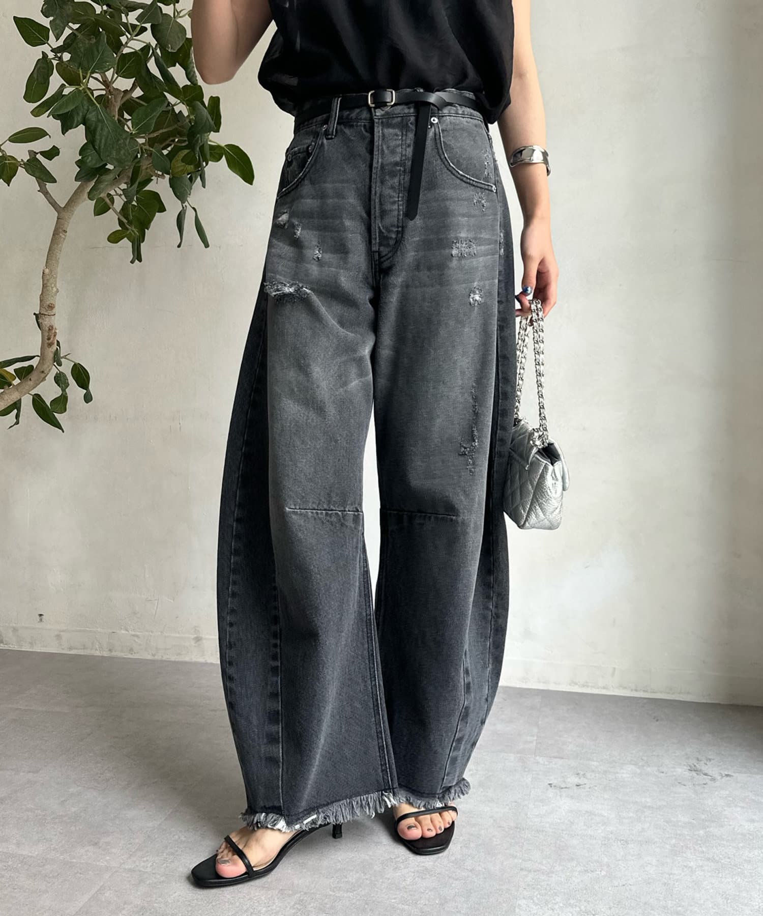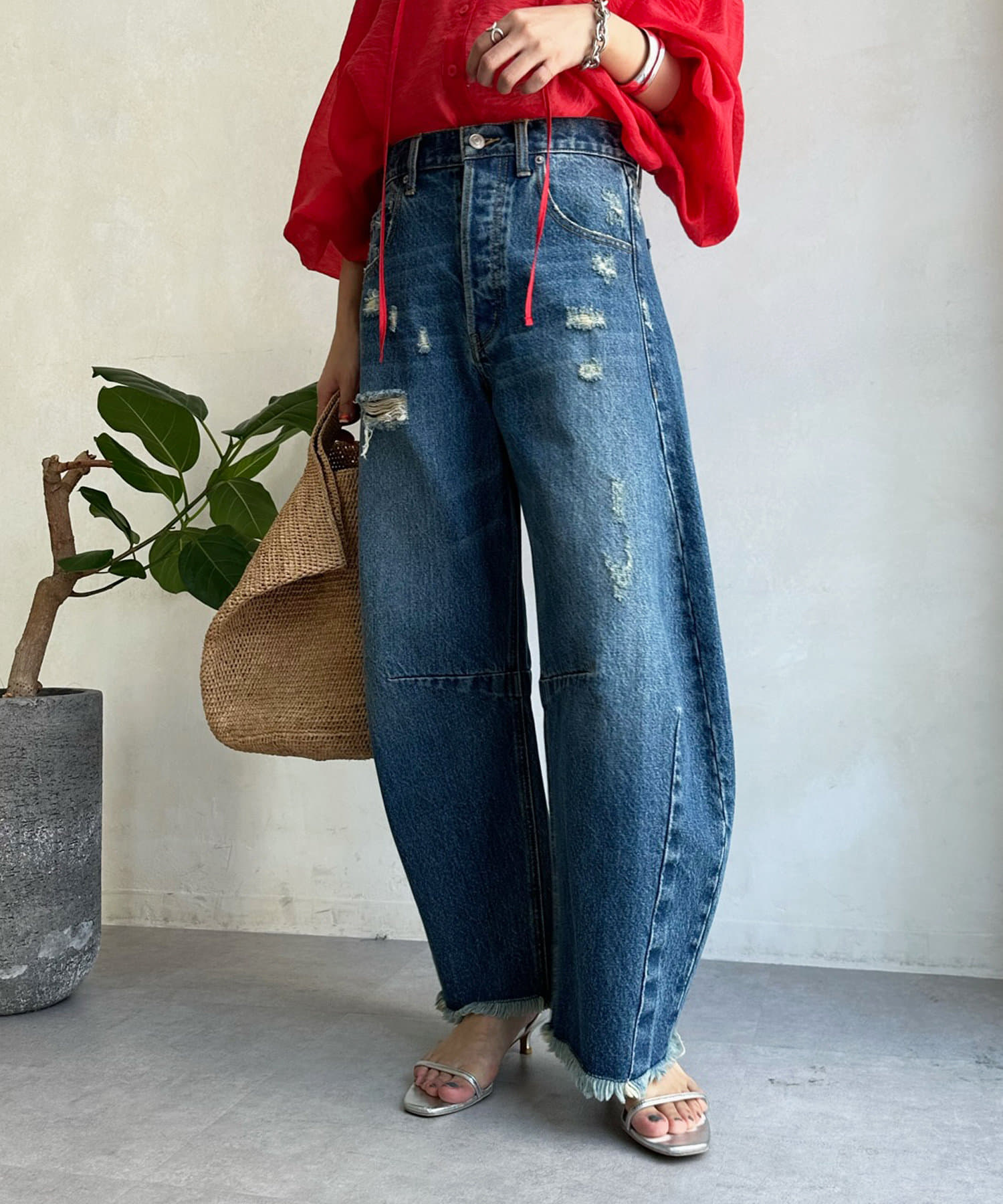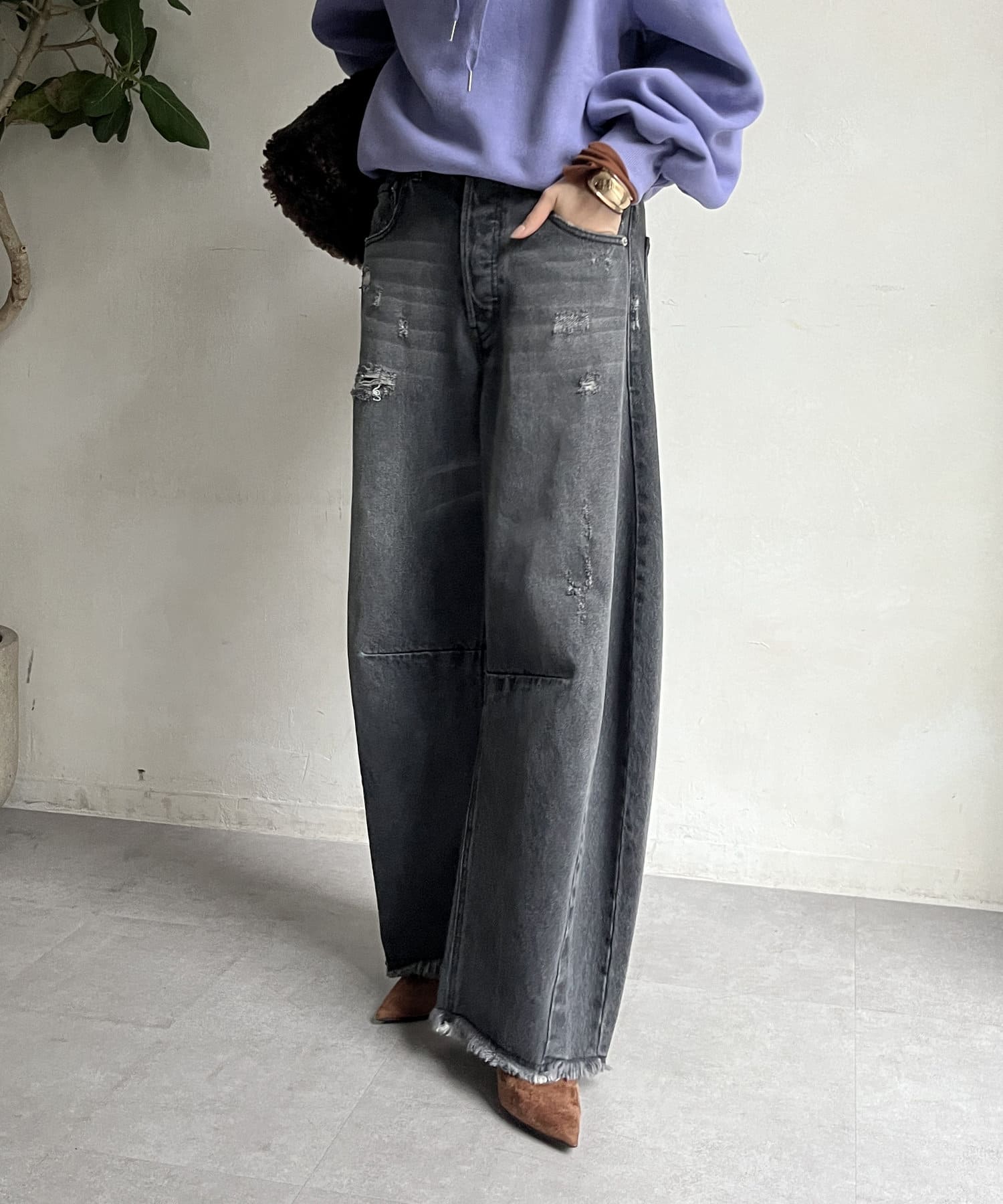 【完売カラー追加!/ベストセラーアイテム】ダメージカーブデニム