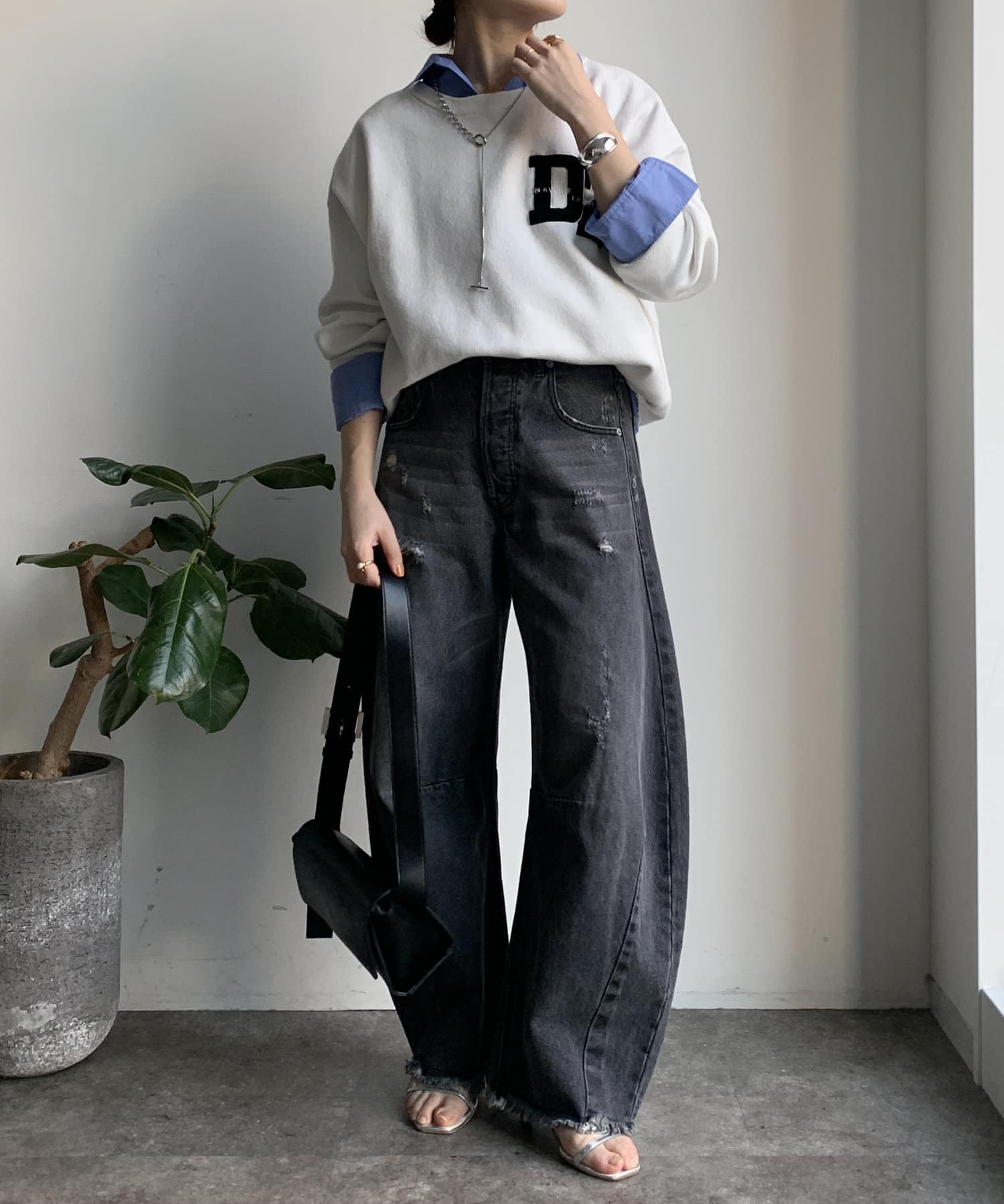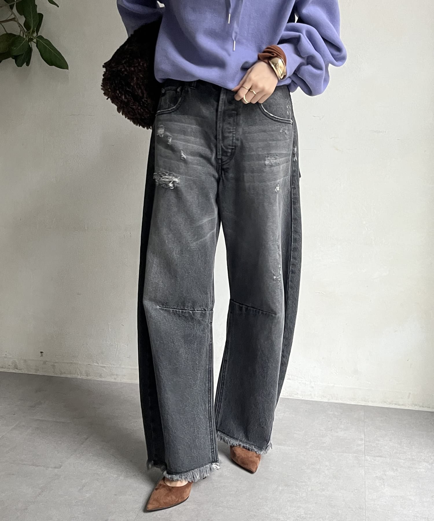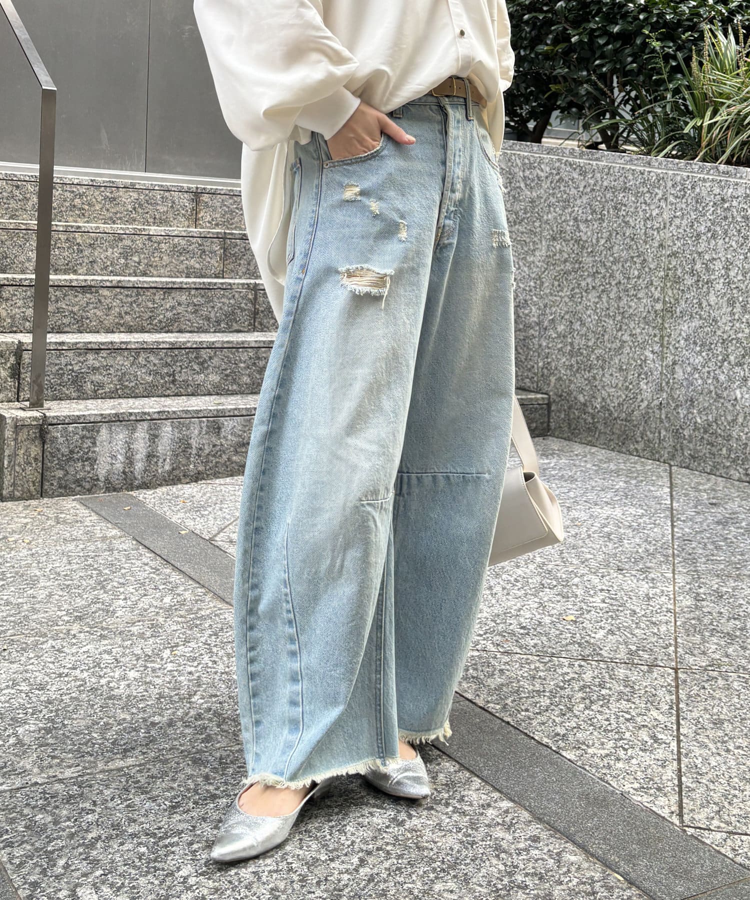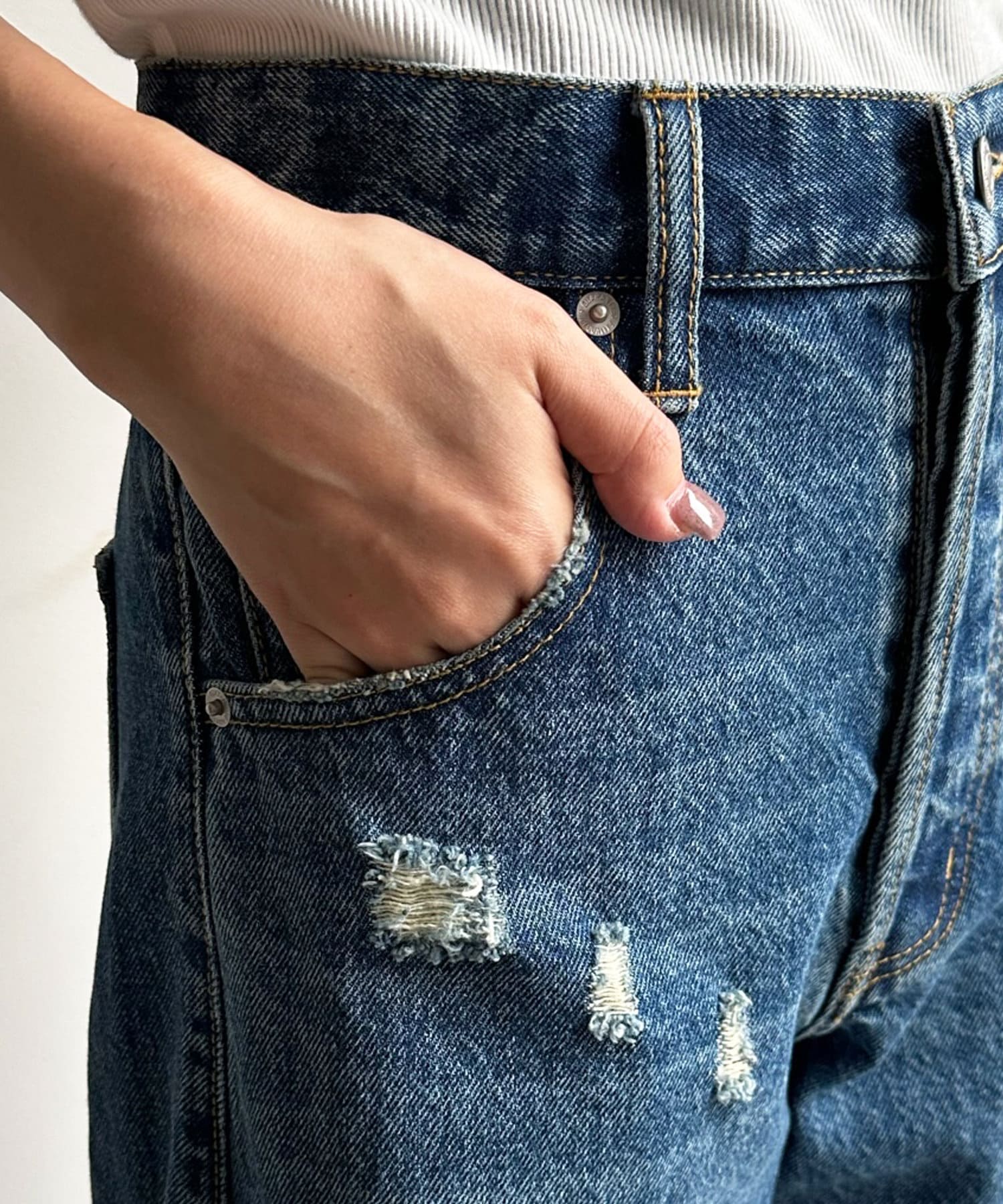 【完売カラー追加!/ベストセラーアイテム】ダメージカーブデニム