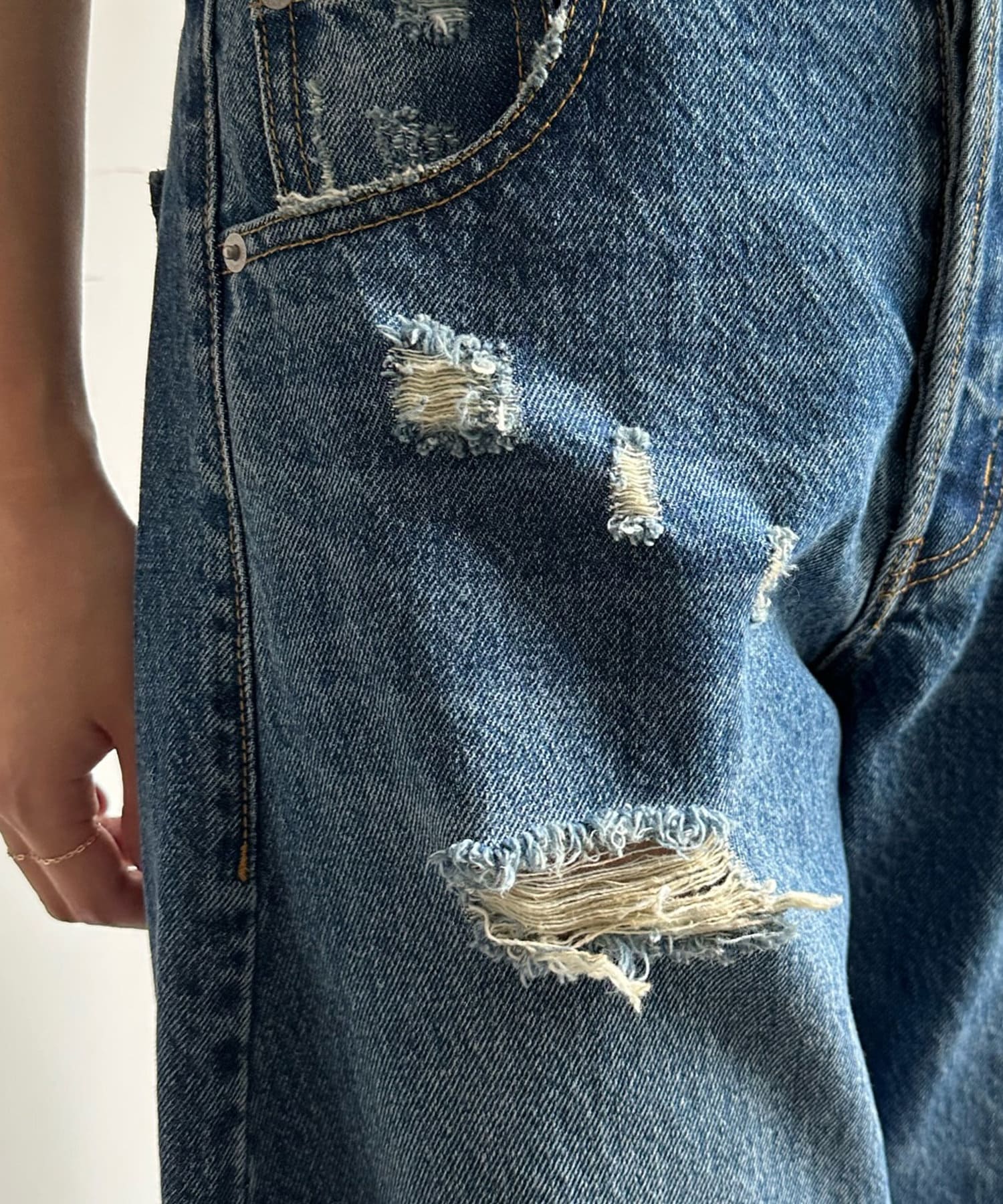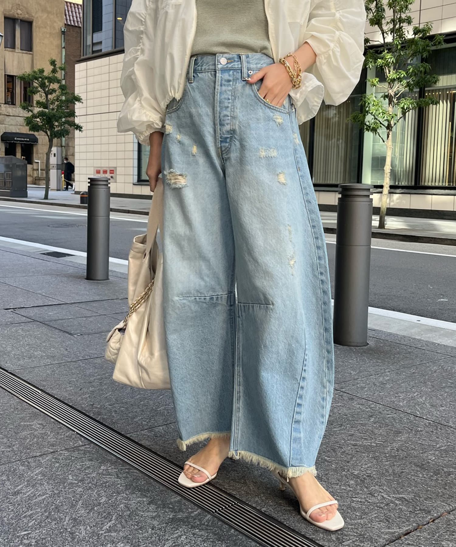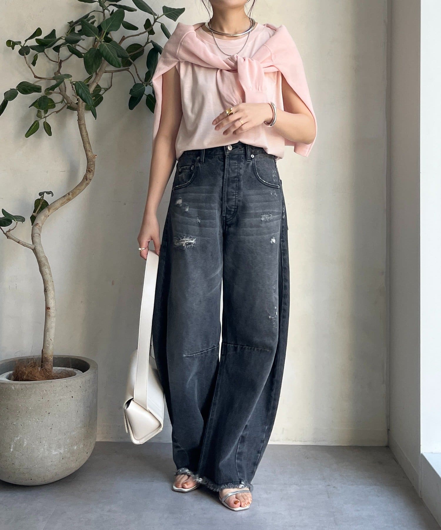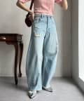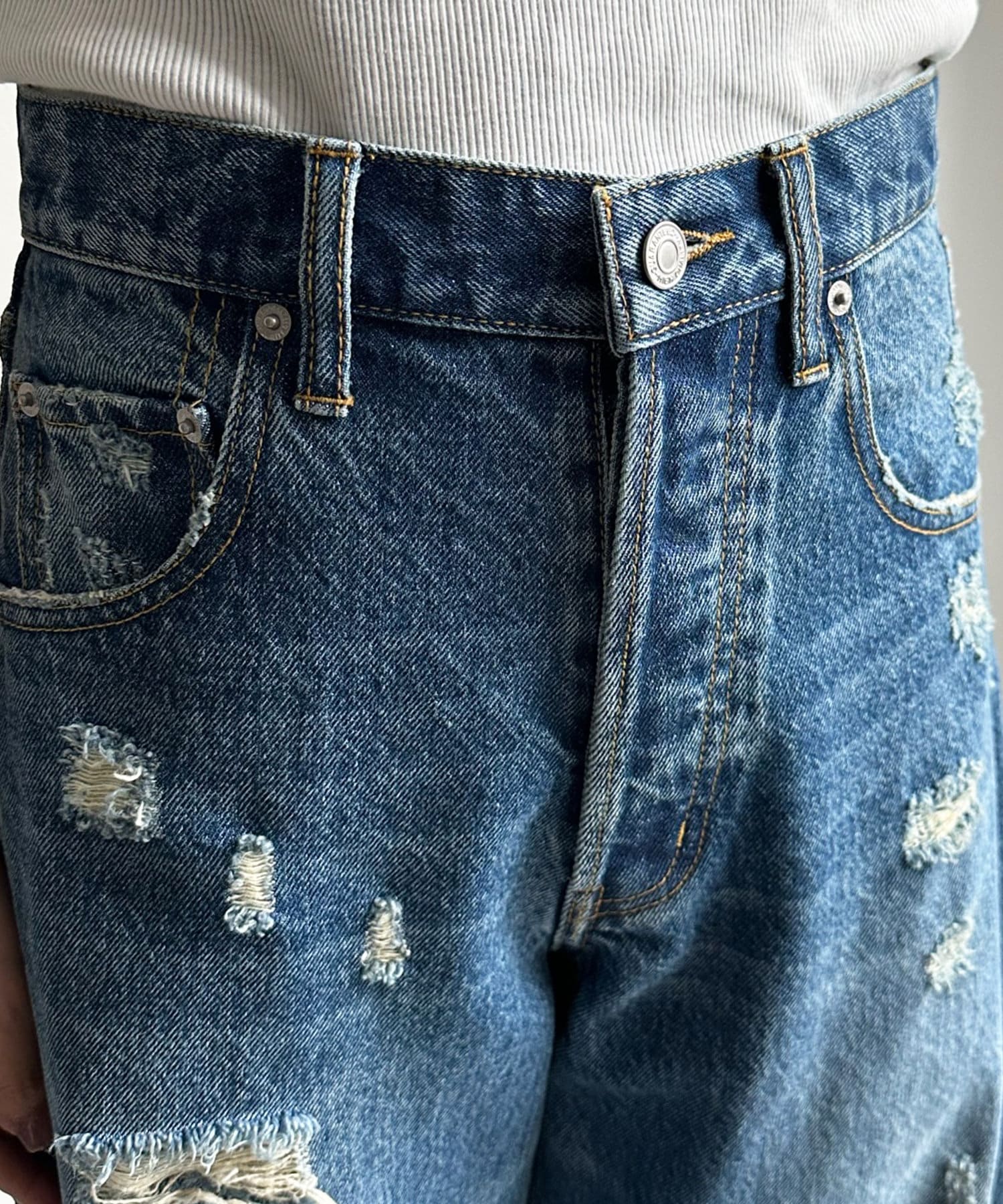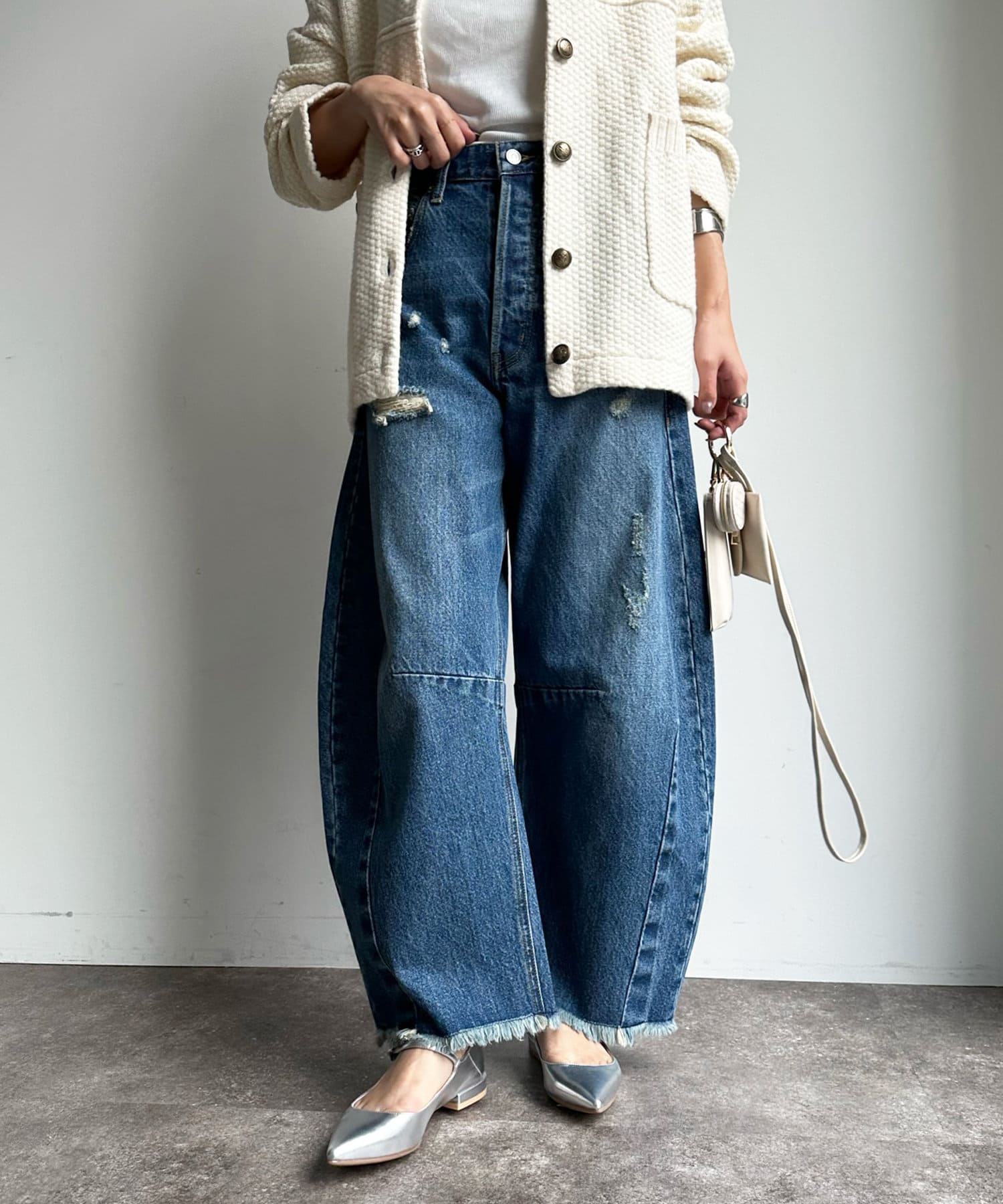 【完売カラー追加!/ベストセラーアイテム】ダメージカーブデニム