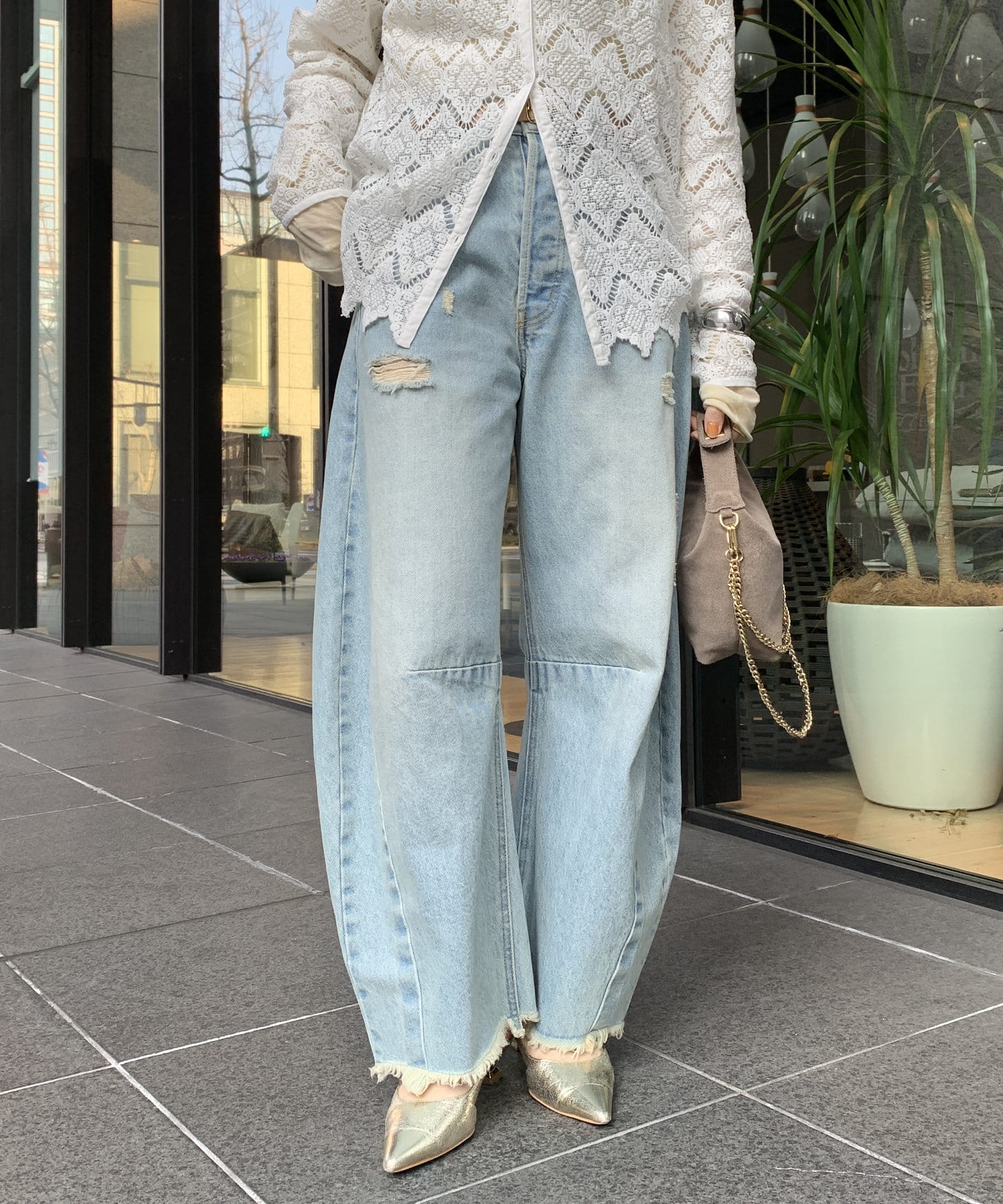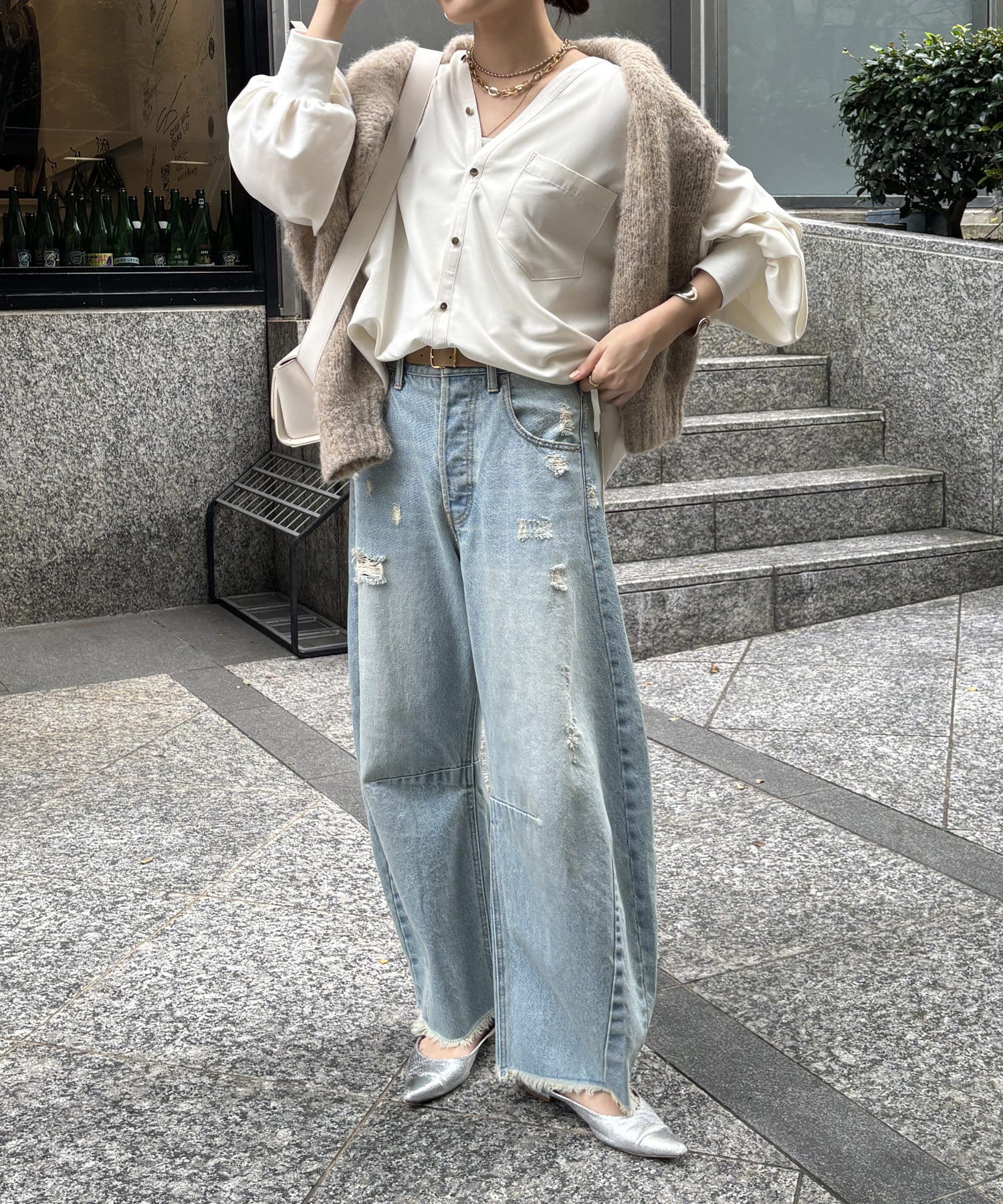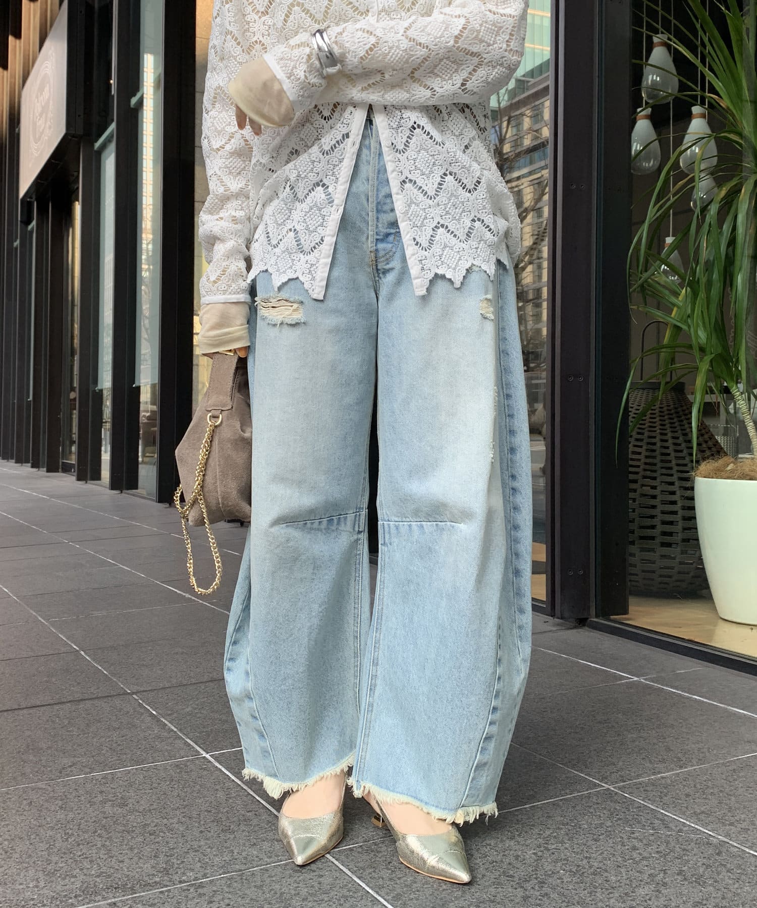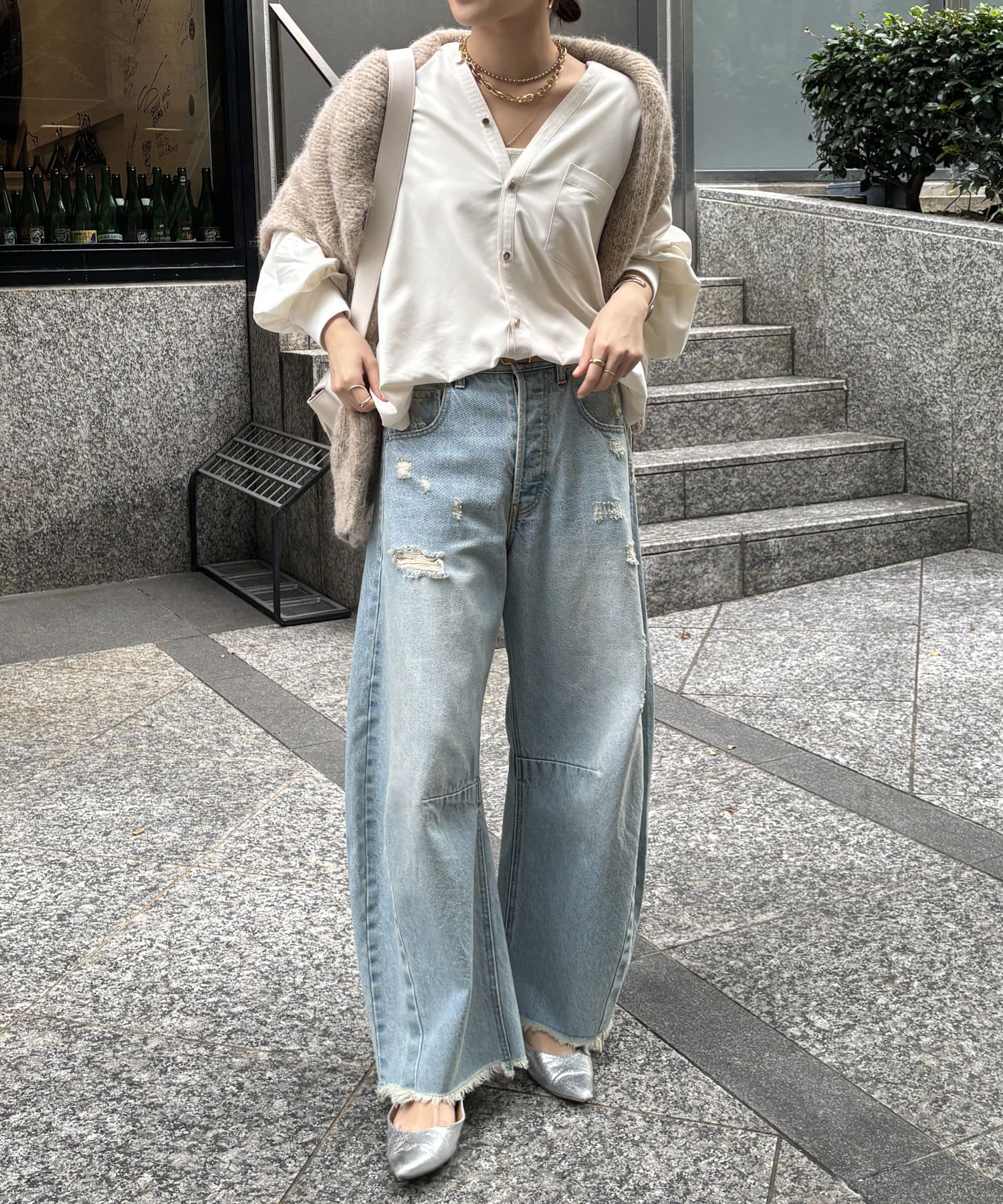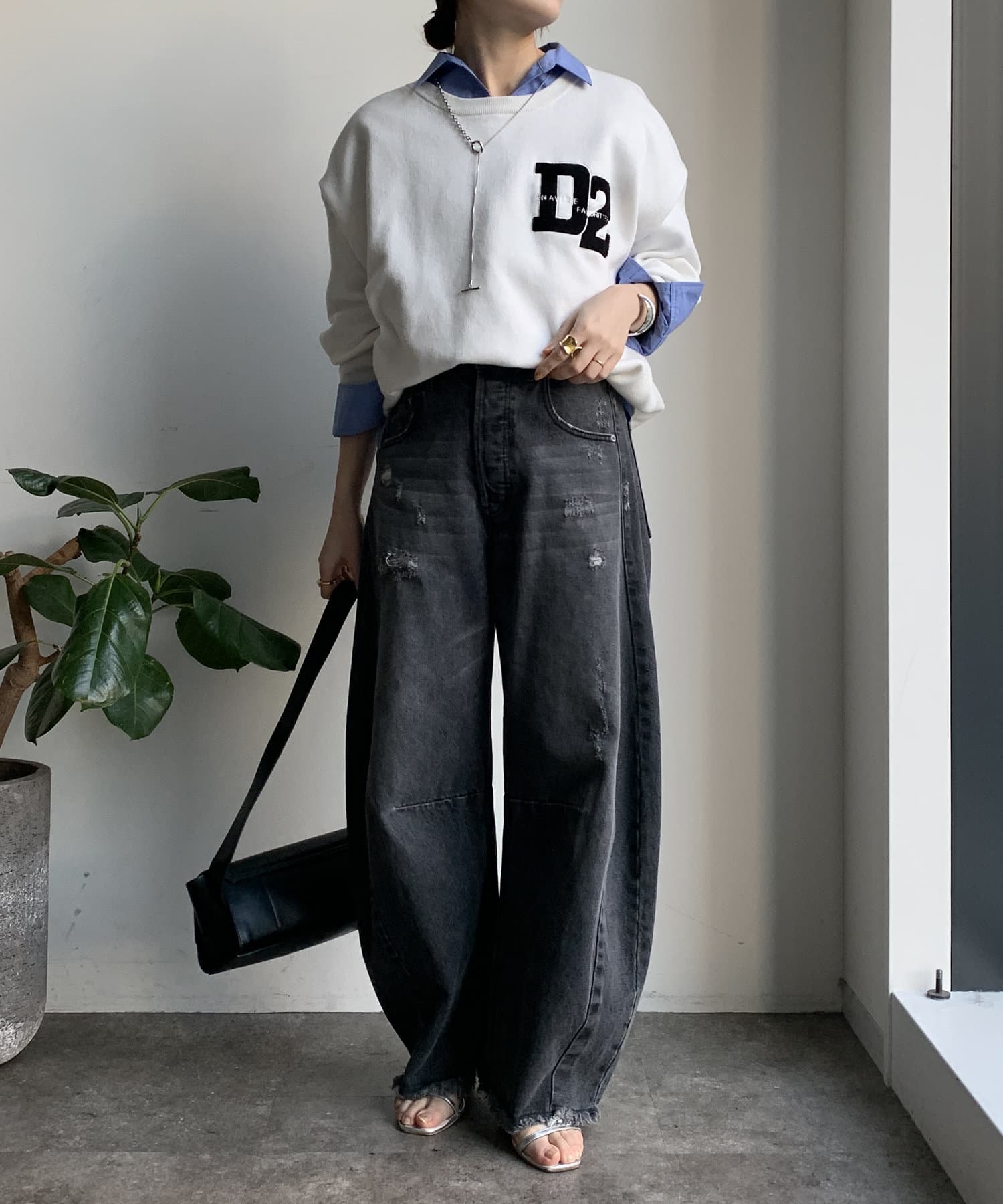 【完売カラー追加!/ベストセラーアイテム】ダメージカーブデニム