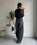 ヒップラインや脚のラインなど気になる部分をカバーしながら、裾にかけて細身になるシルエットに。