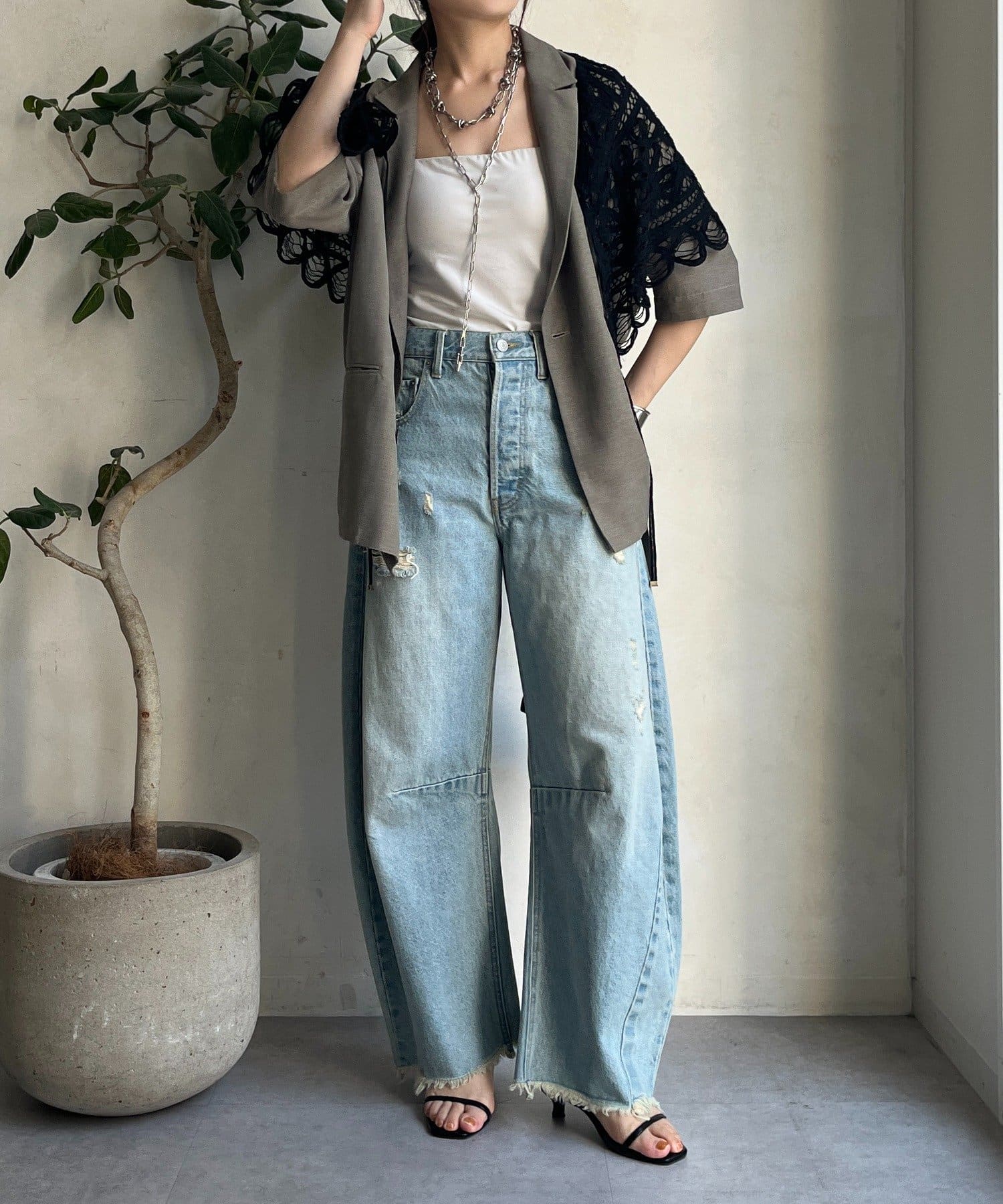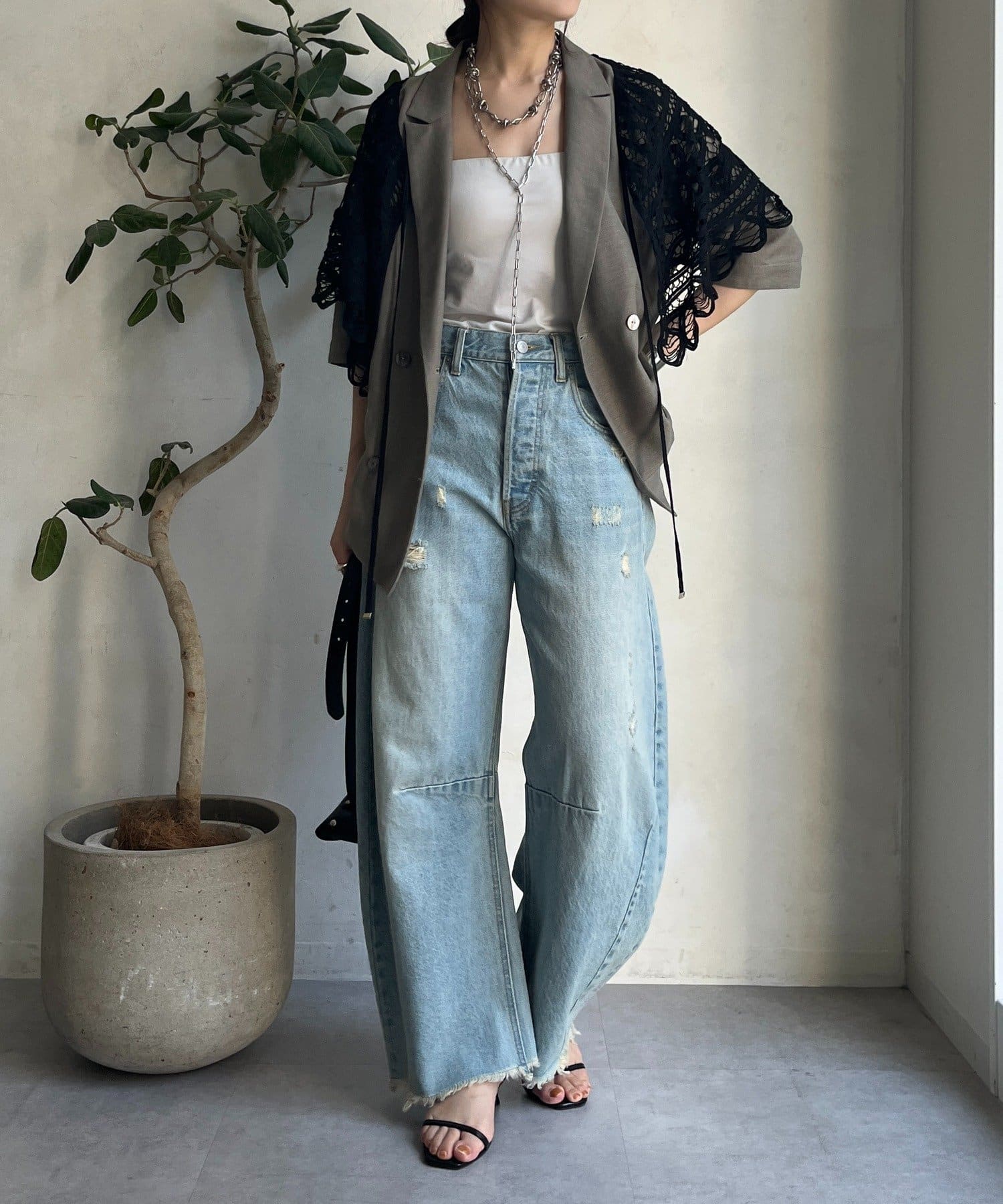 シンプルなアイテムとスタイリングするだけでも抜群にサマ見えしてくれ、ワンランク上のデニムコーデが楽しめる主役級アイテムですよ。