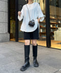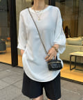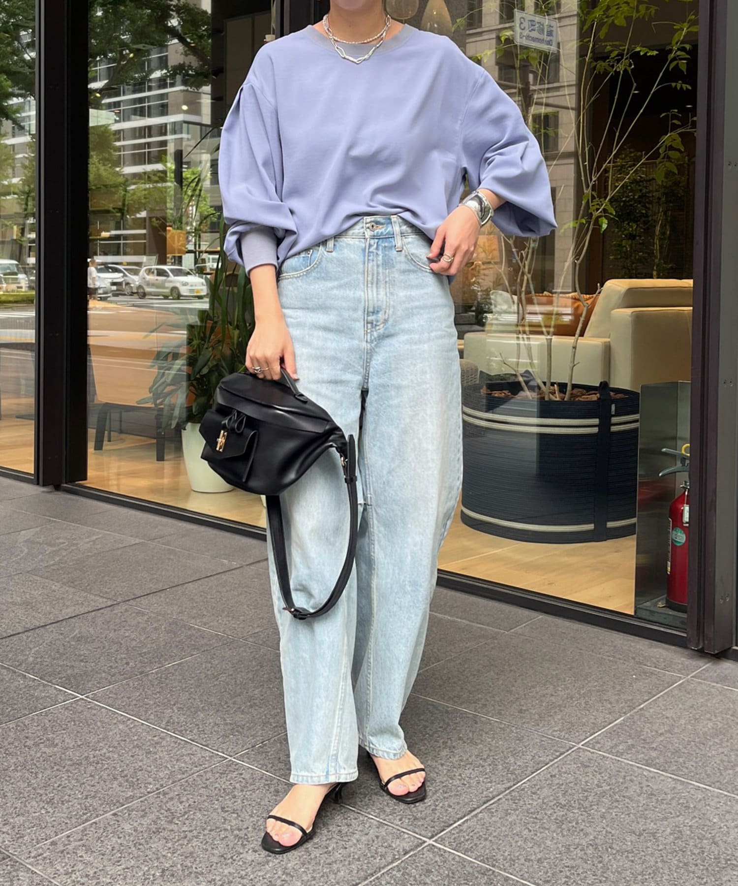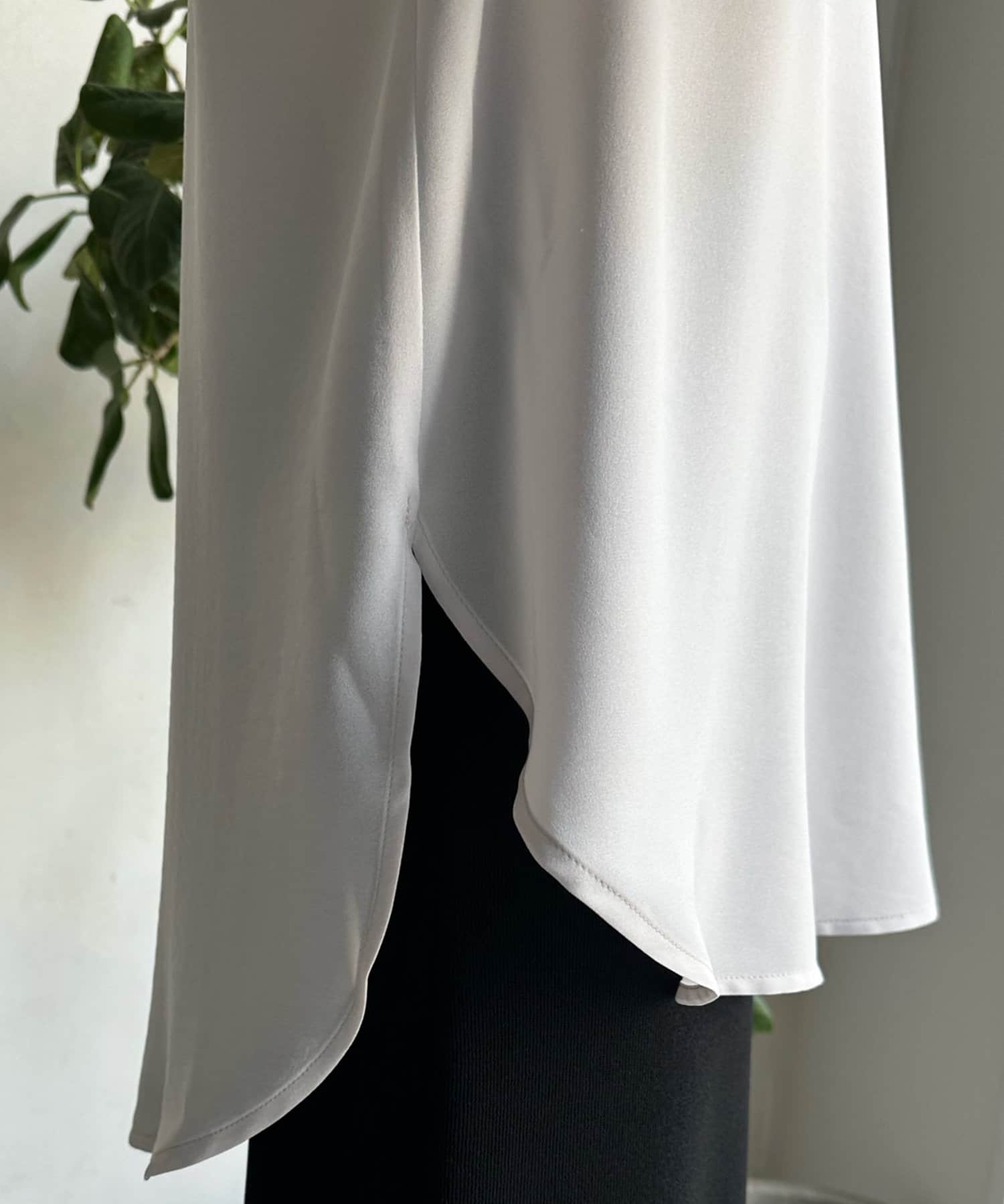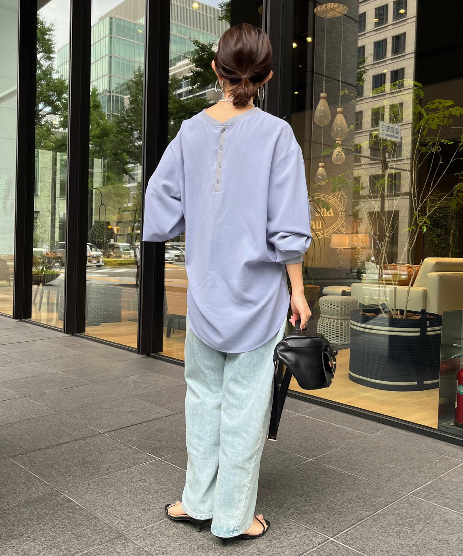 そして、バックネック部分のボタンデザインや裾のカットなどで程よく抜け感のあるカジュアルさをプラスします。