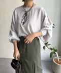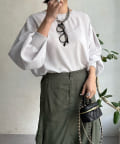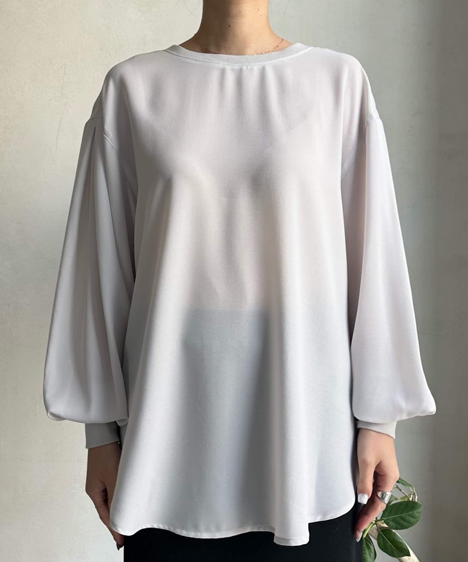 首元・袖口をリブに切り替えたさり気ないデザインがポイントのブラウス。