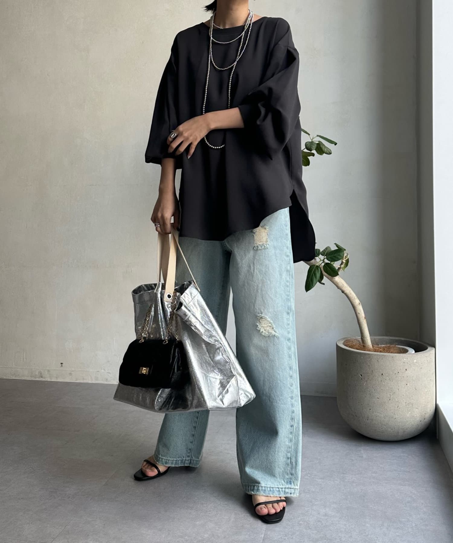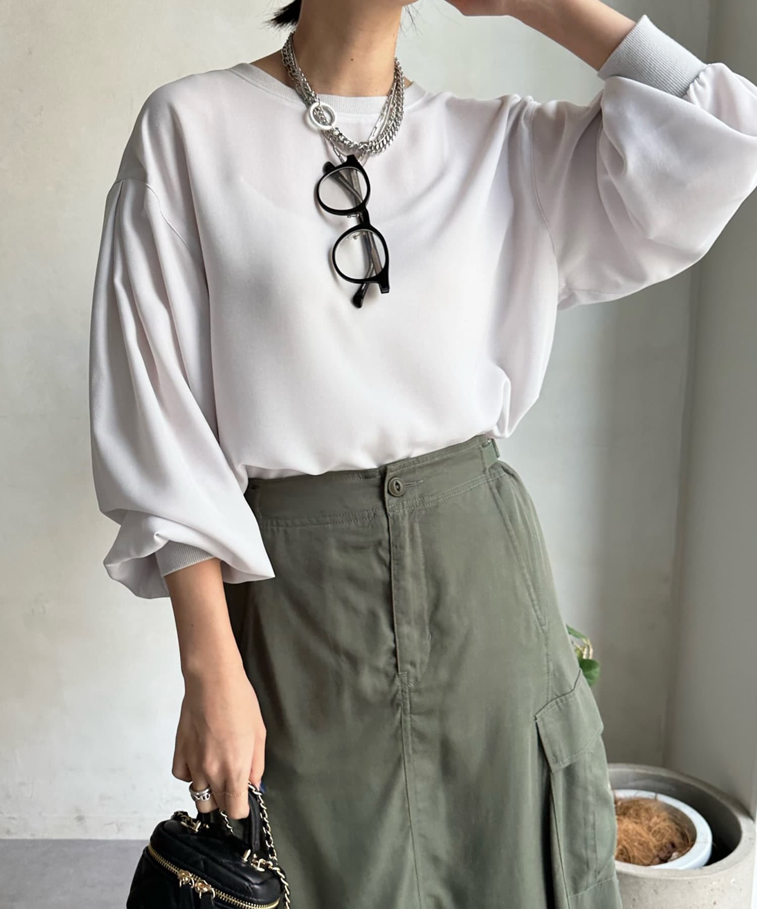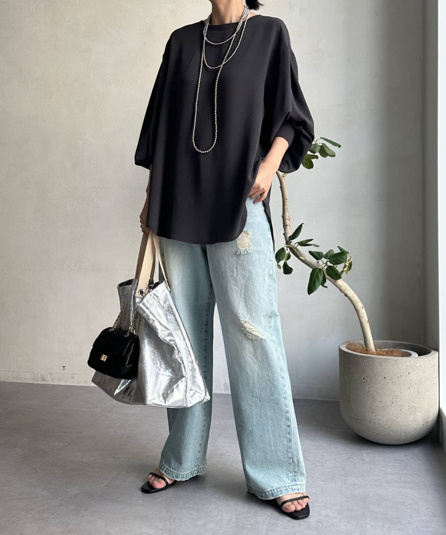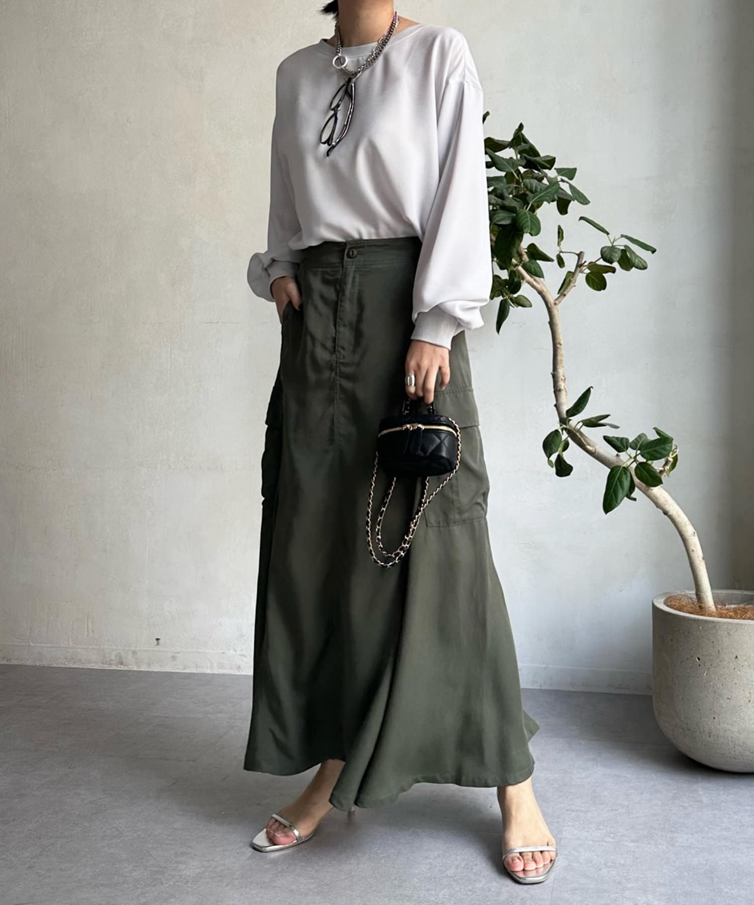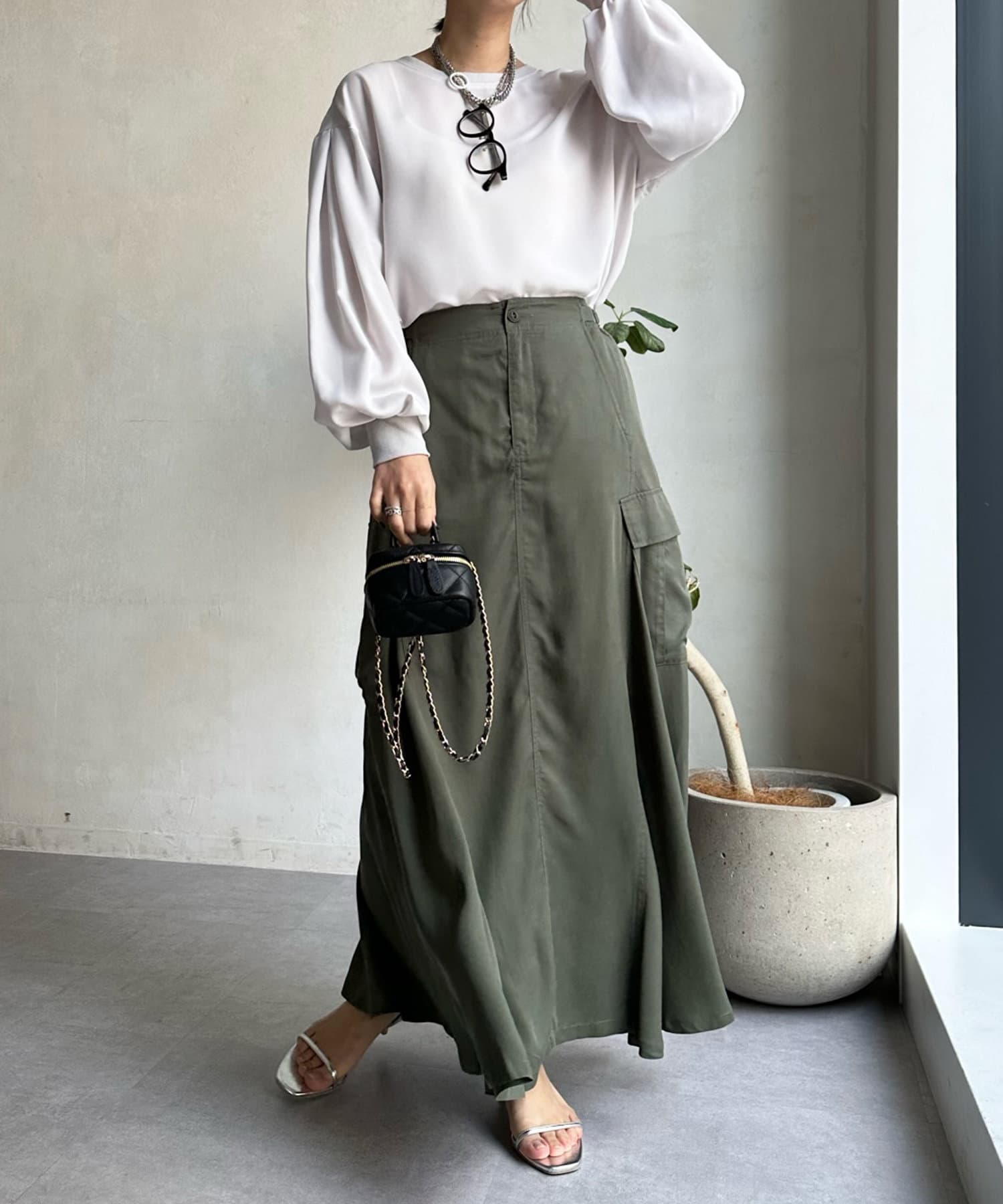 ジョーゼットの軽い素材感できれいめカジュアルなスタイルに!