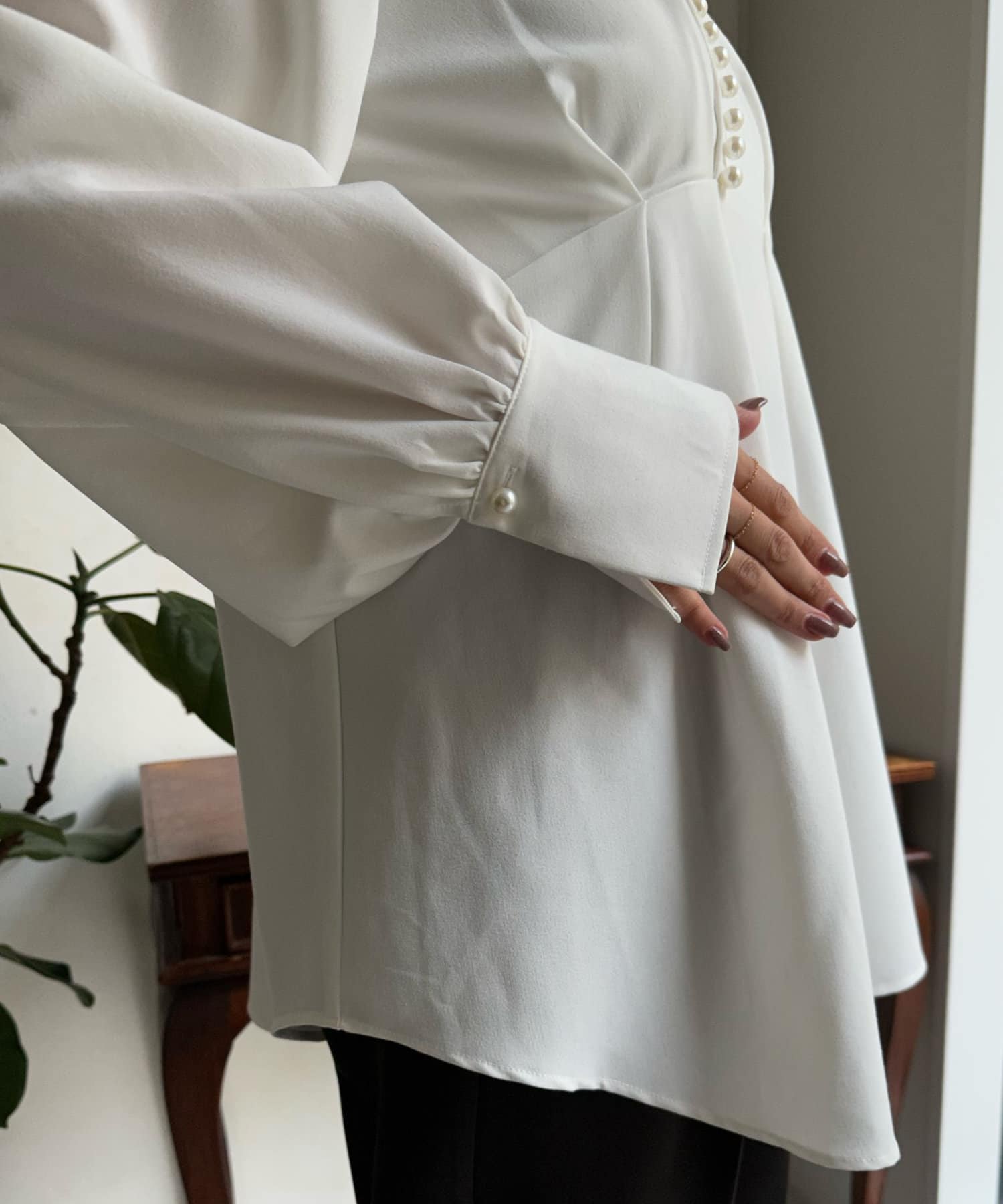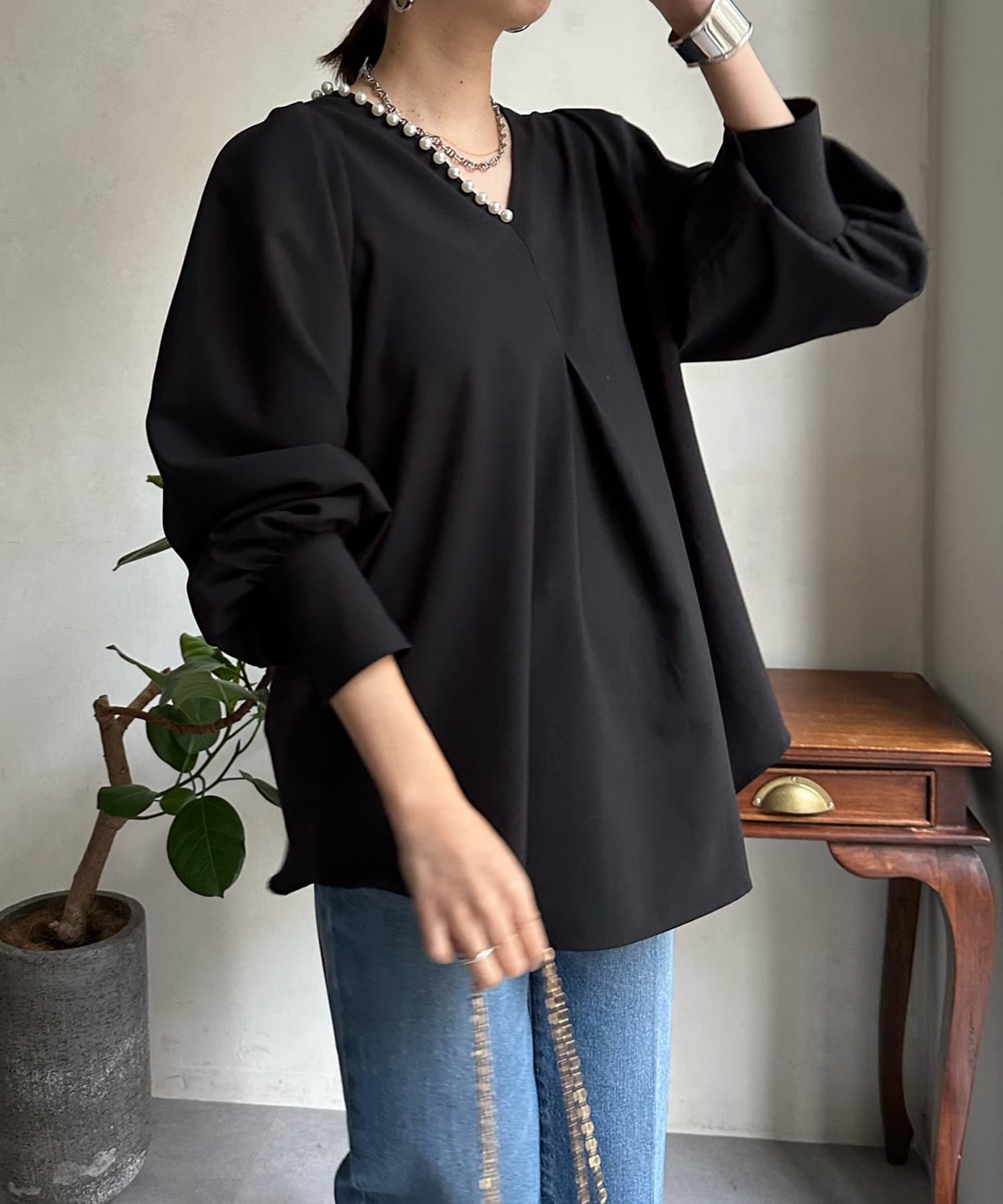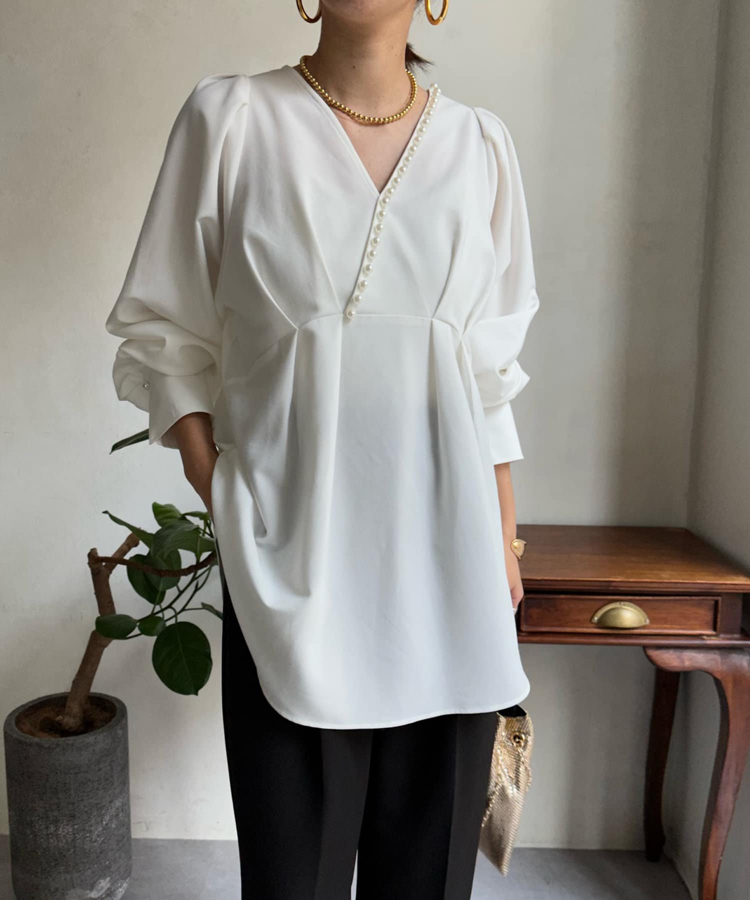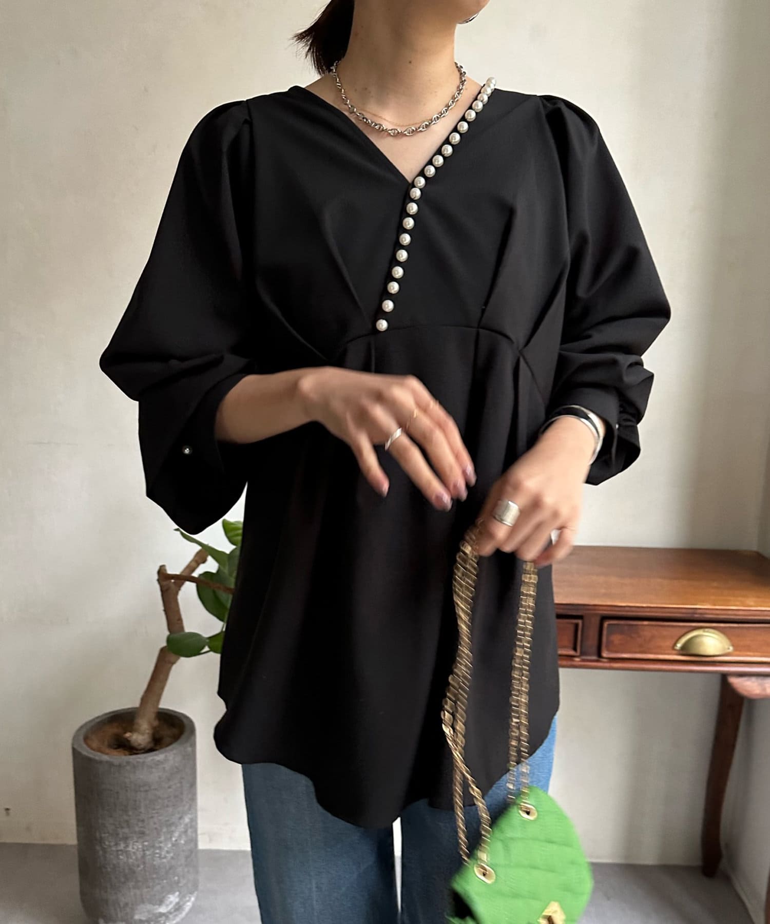 • DOUDOU(ドゥドゥ) 【WEB限定】パールデザイン2WAYブラウス