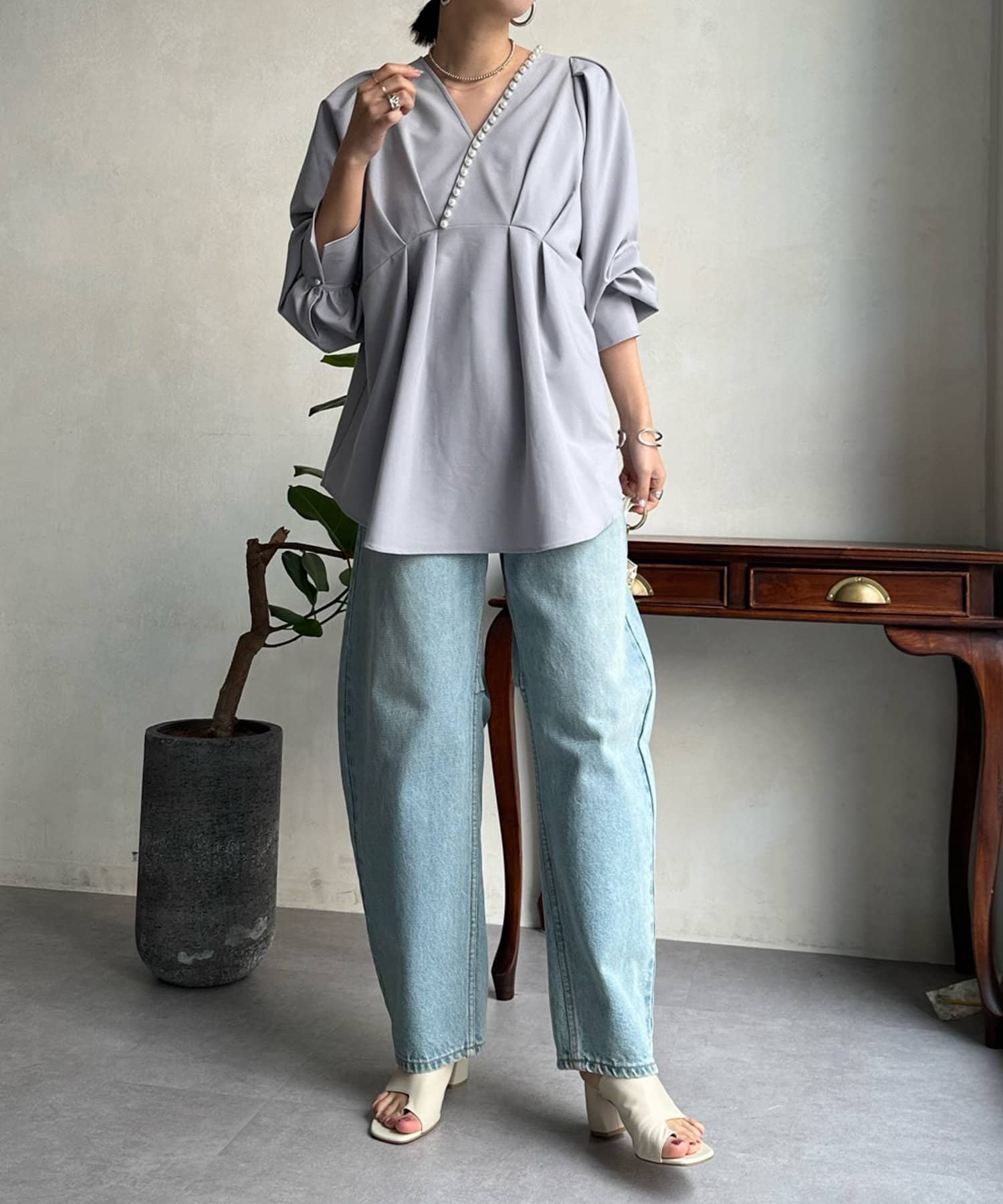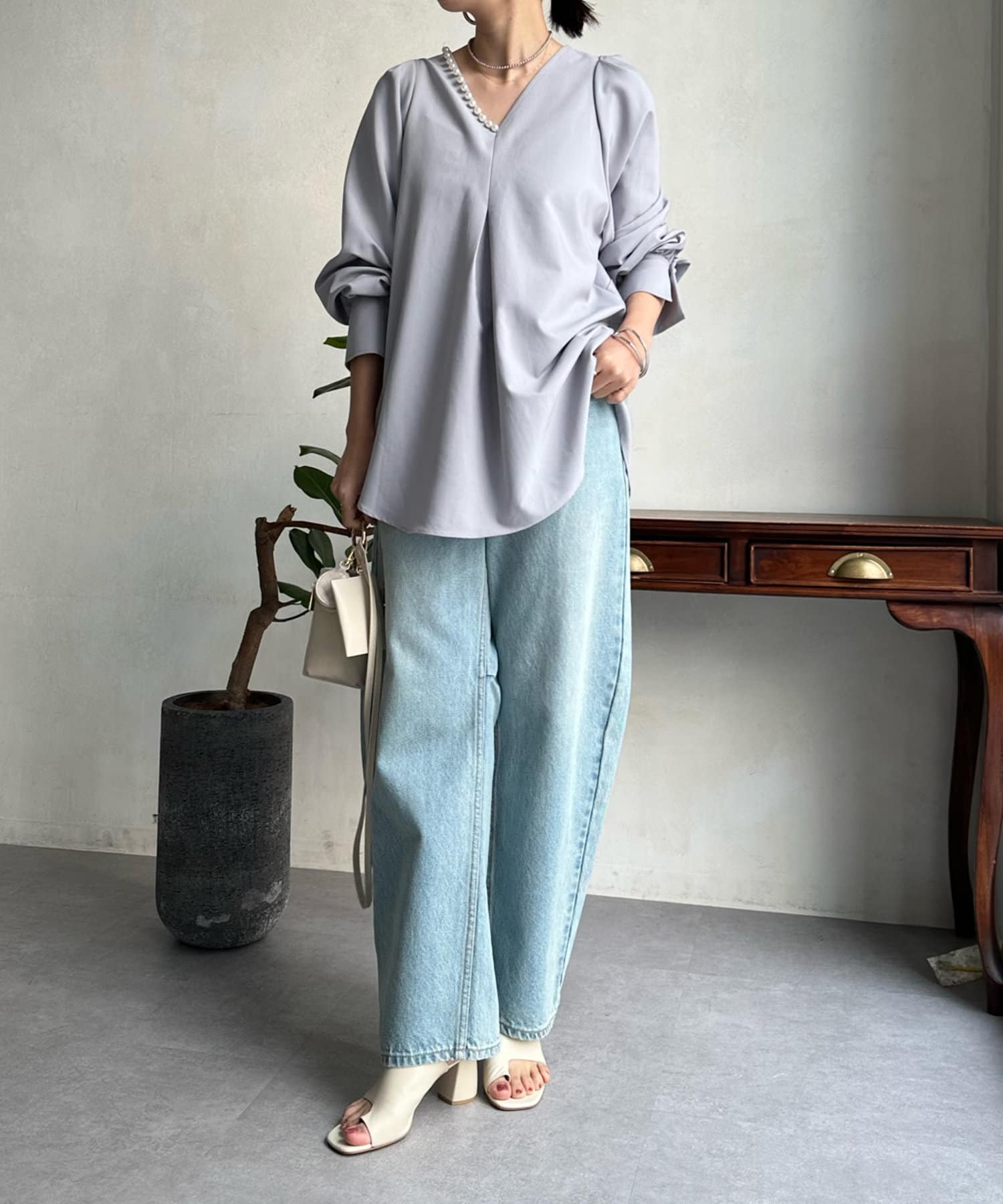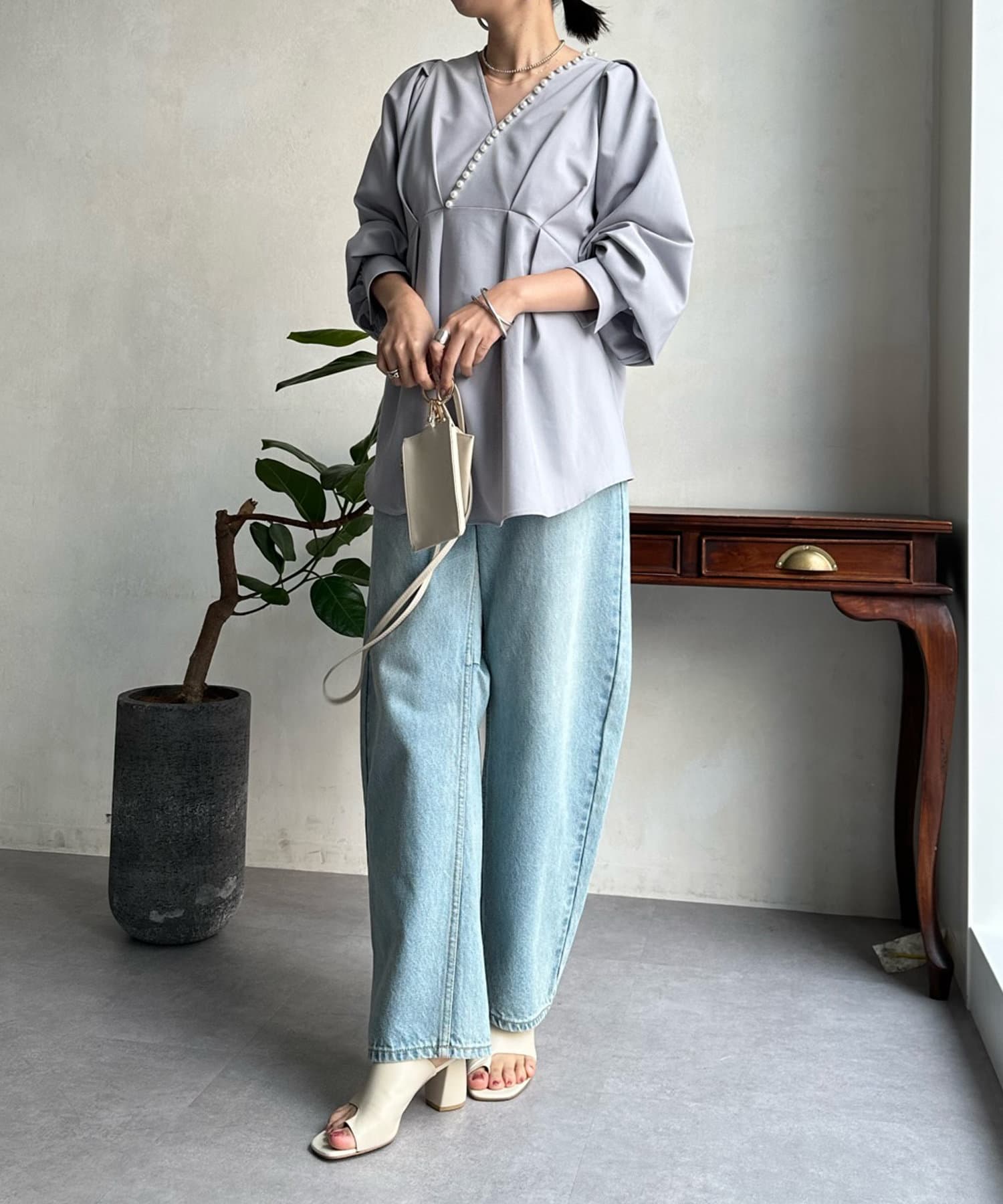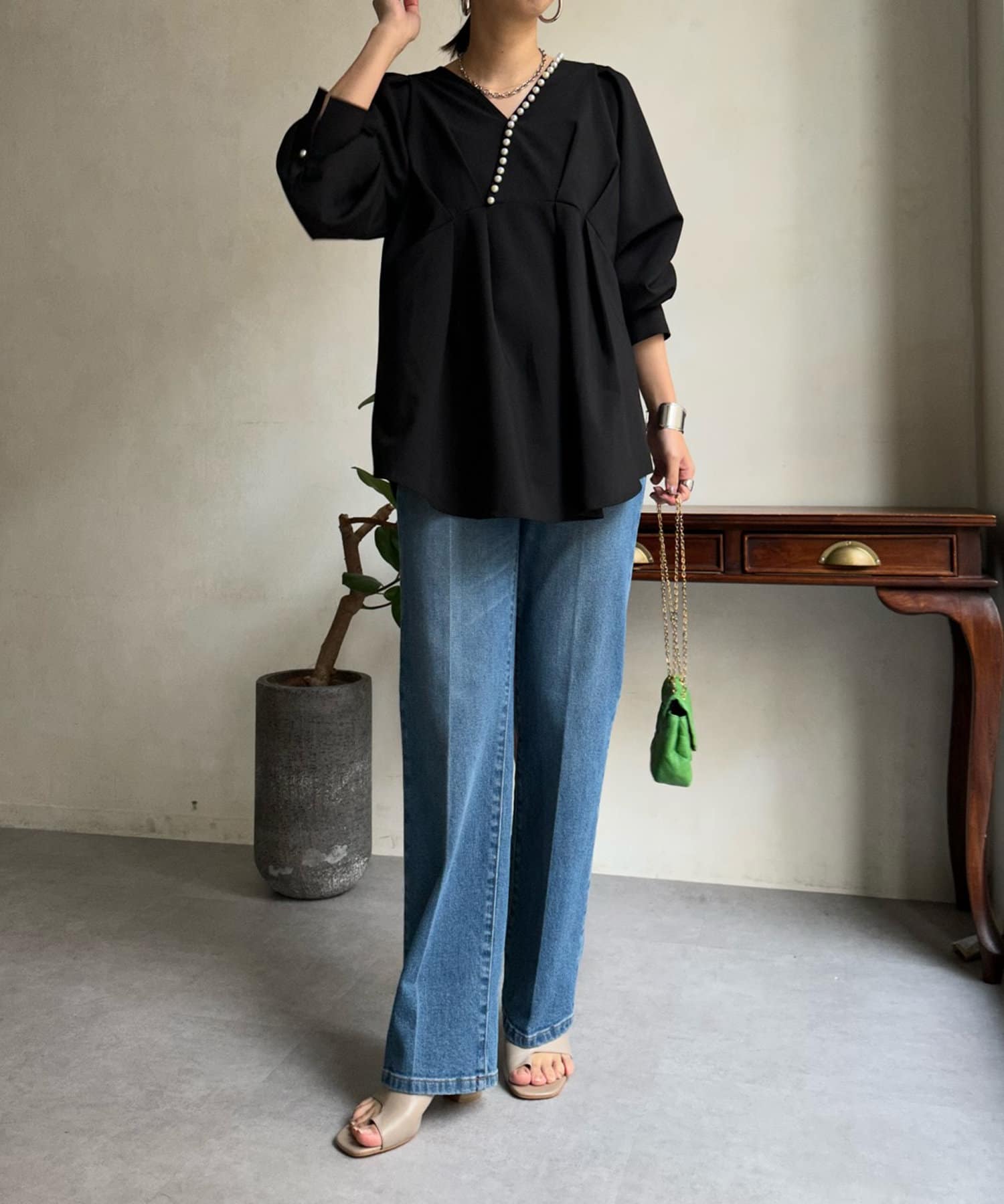 • DOUDOU(ドゥドゥ) 【WEB限定】パールデザイン2WAYブラウス