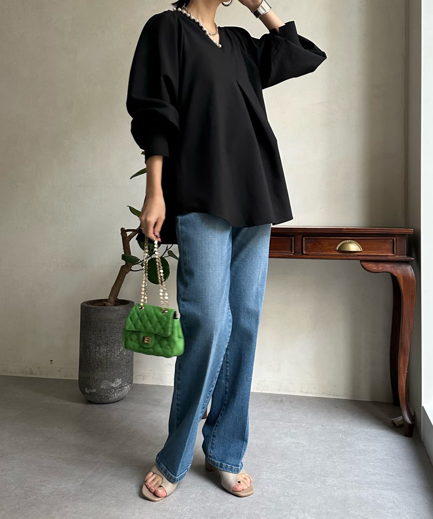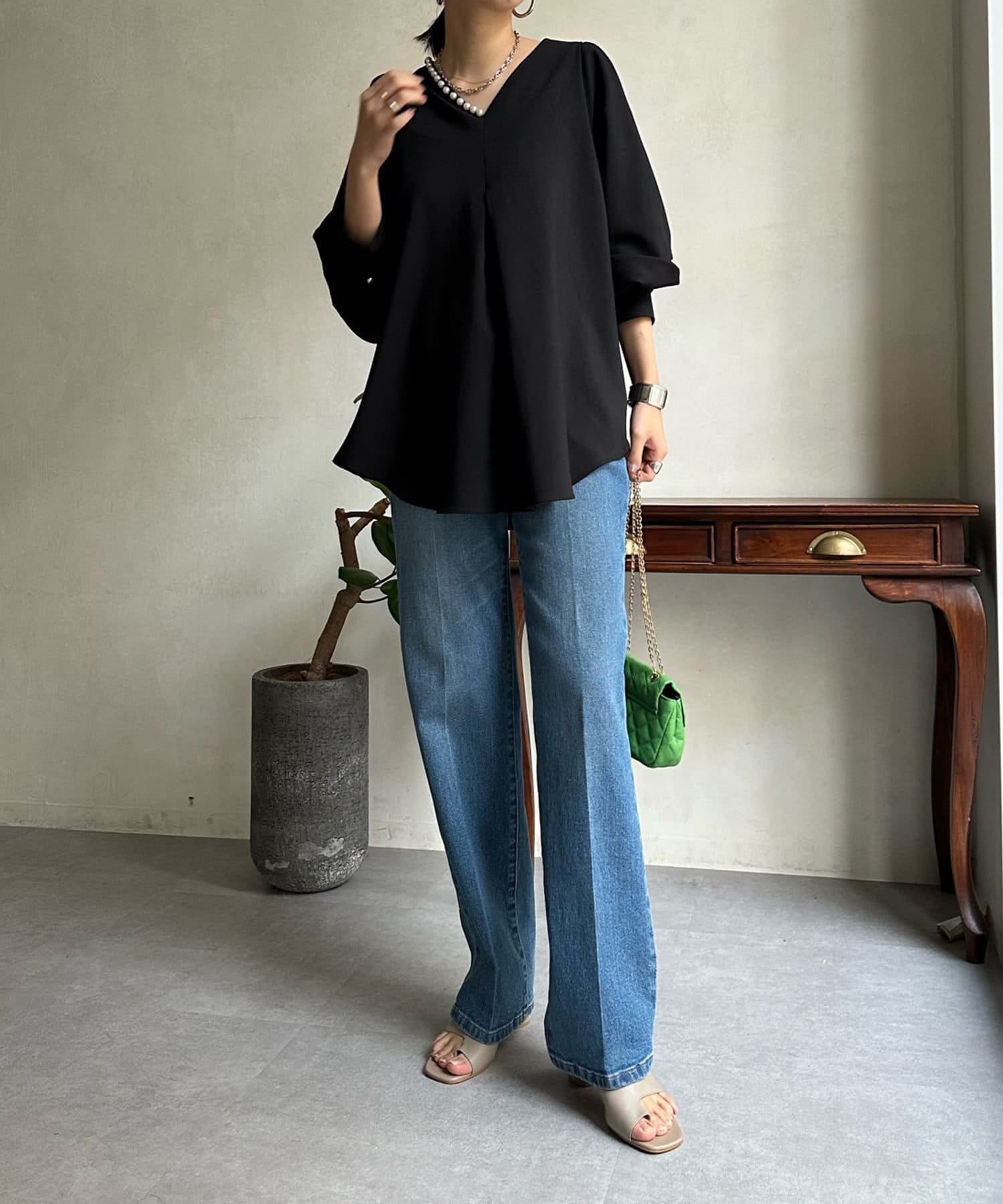 程よい肌見せが叶うVネックで、女性らしさも◎