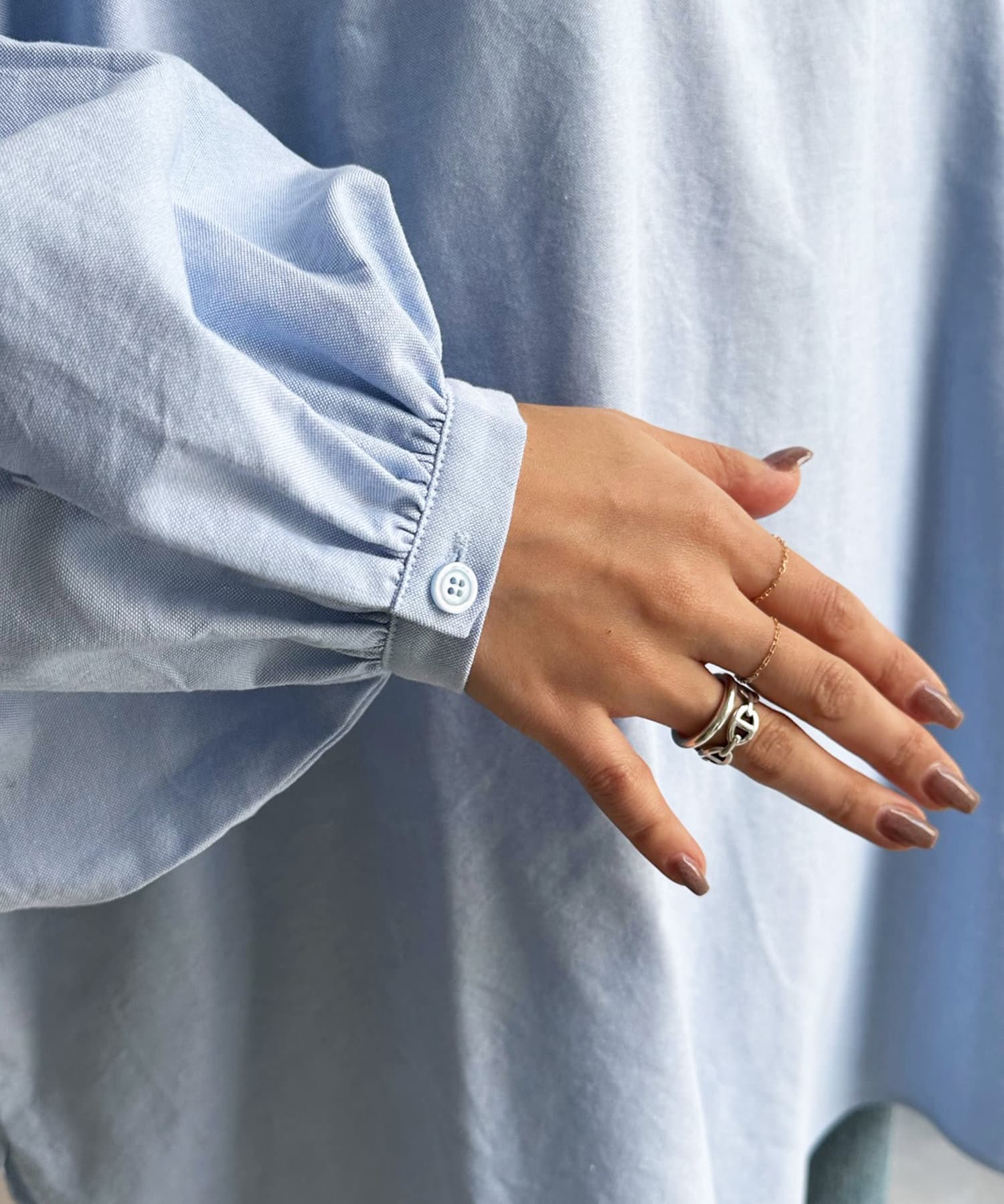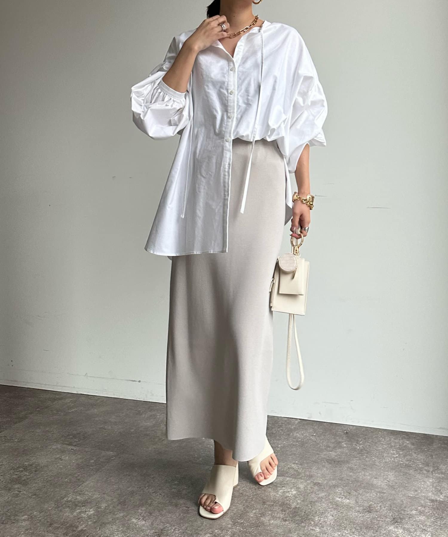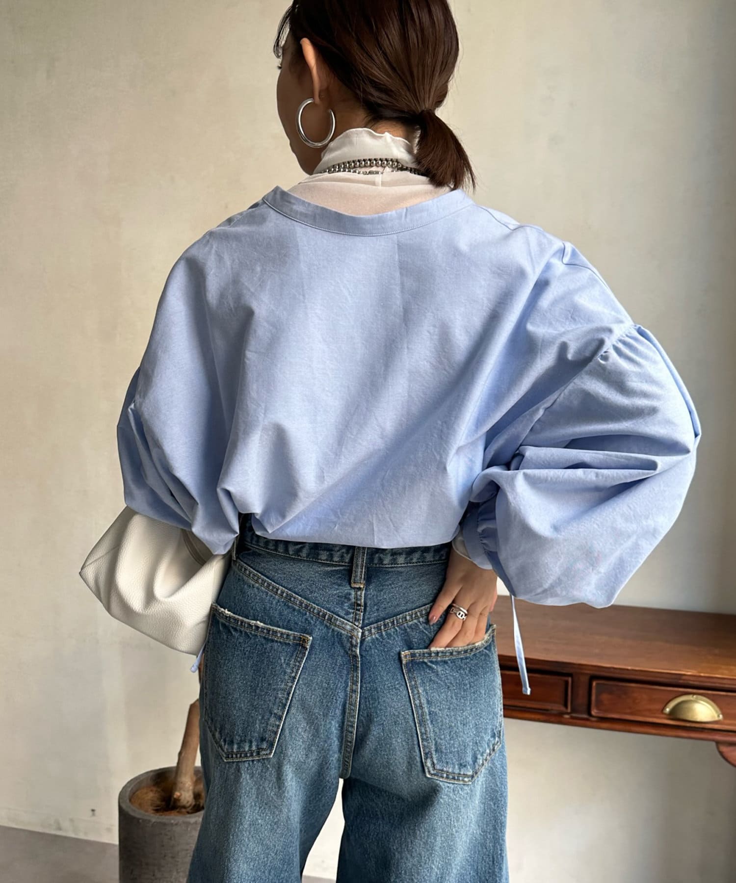 ショルダーラインと袖口にギャザーを寄せ、ボリューム感を作った袖シルエットがポイントです。