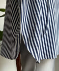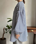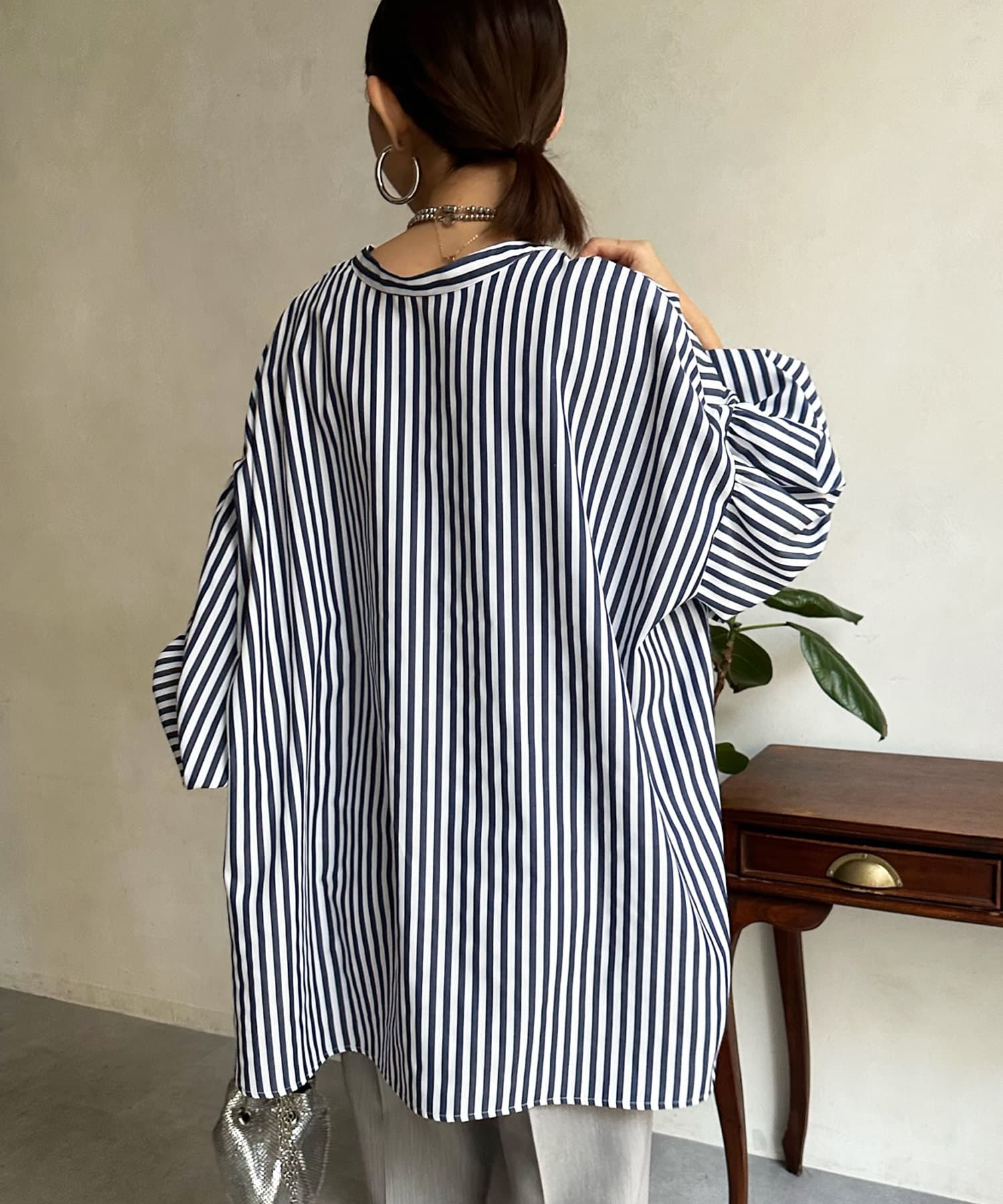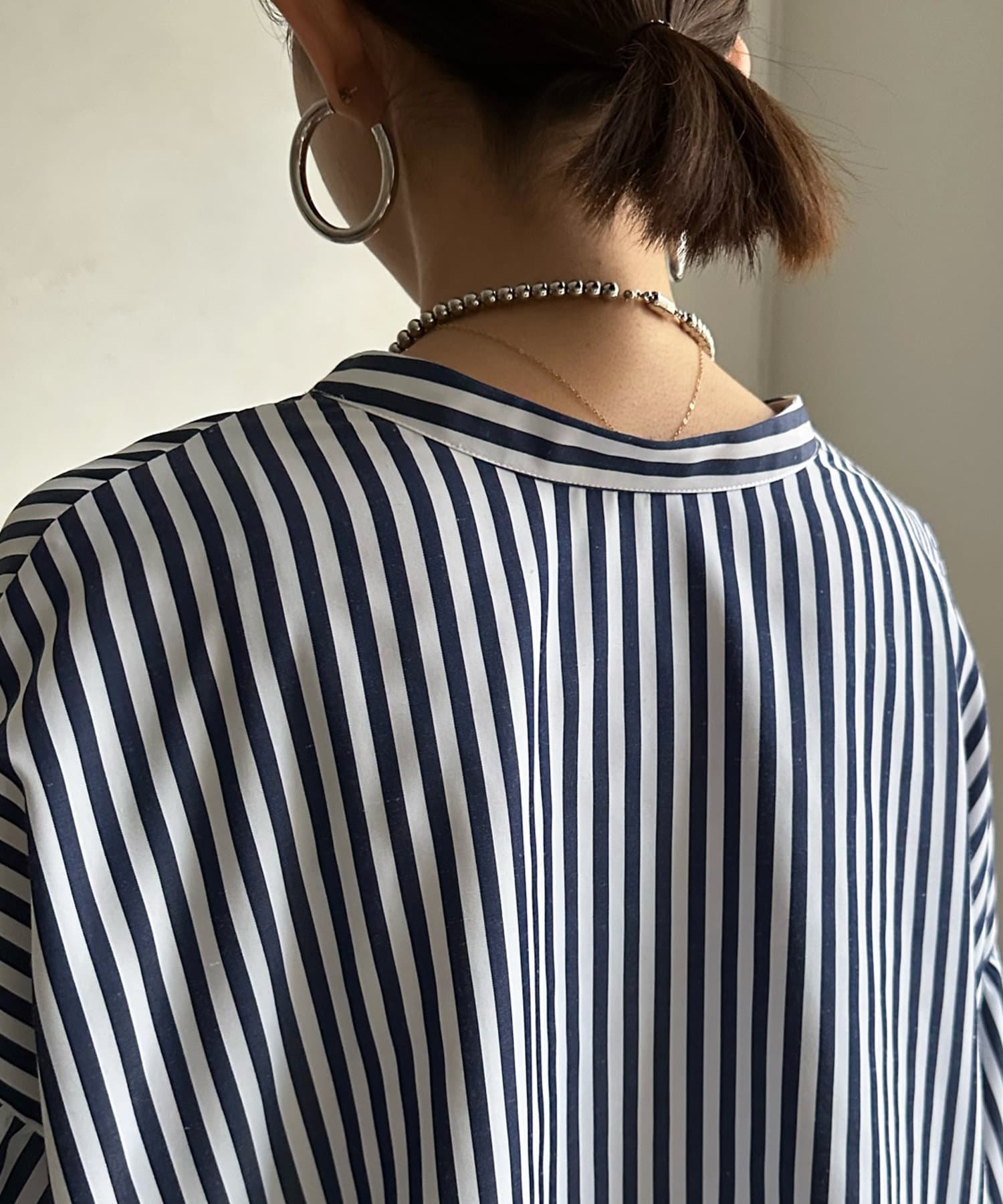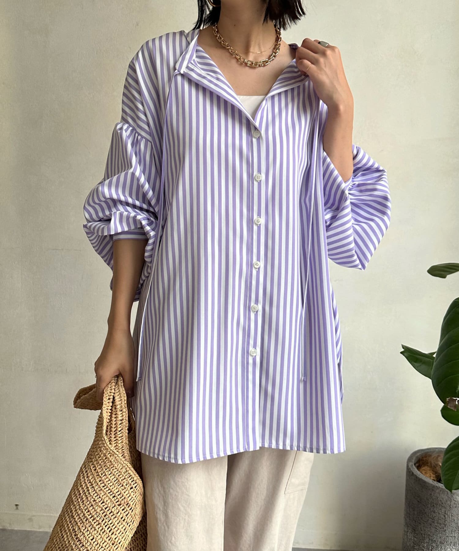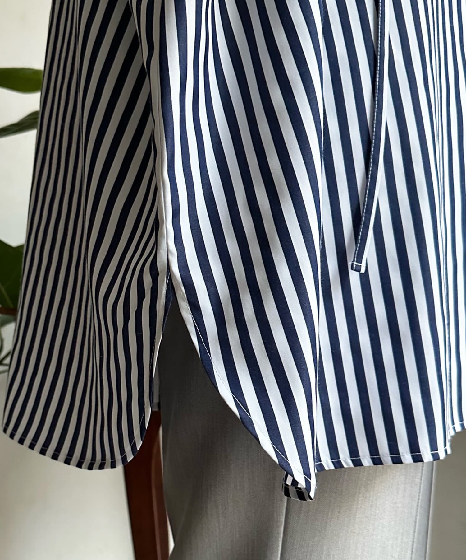 お顔周りがすっきりと見えるスキッパーデザインで、首元にはトレンド感のあるリボンをプラス。