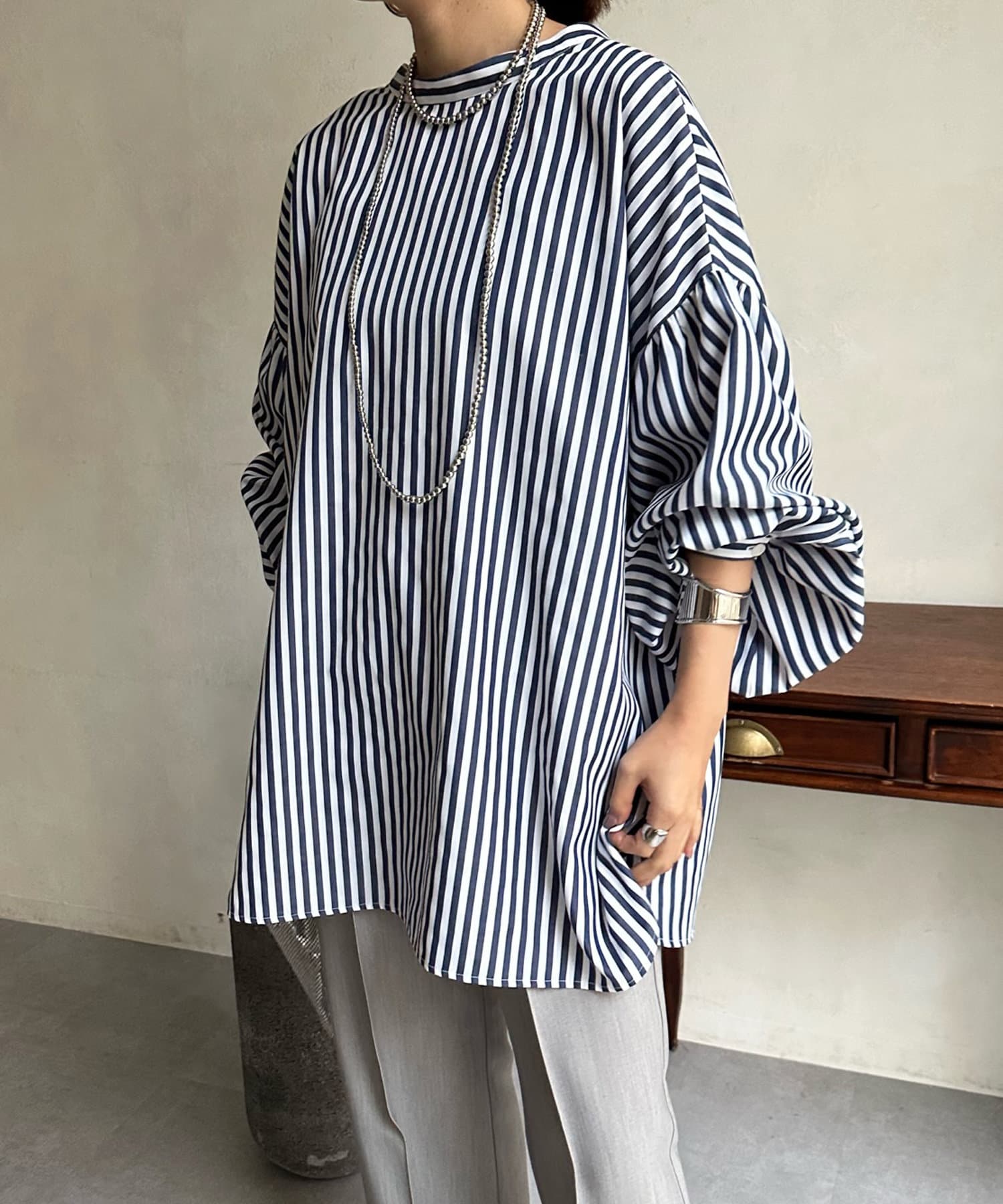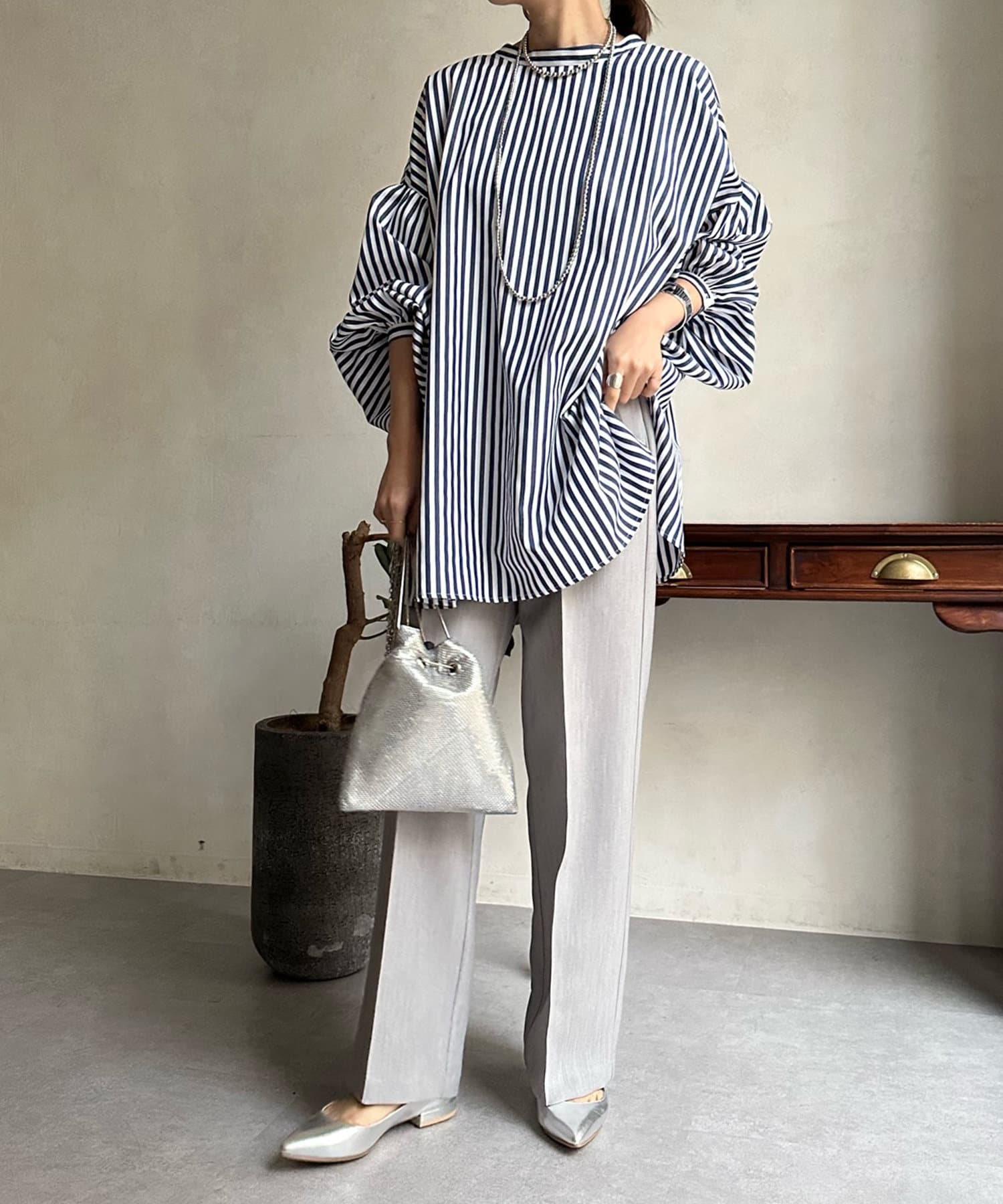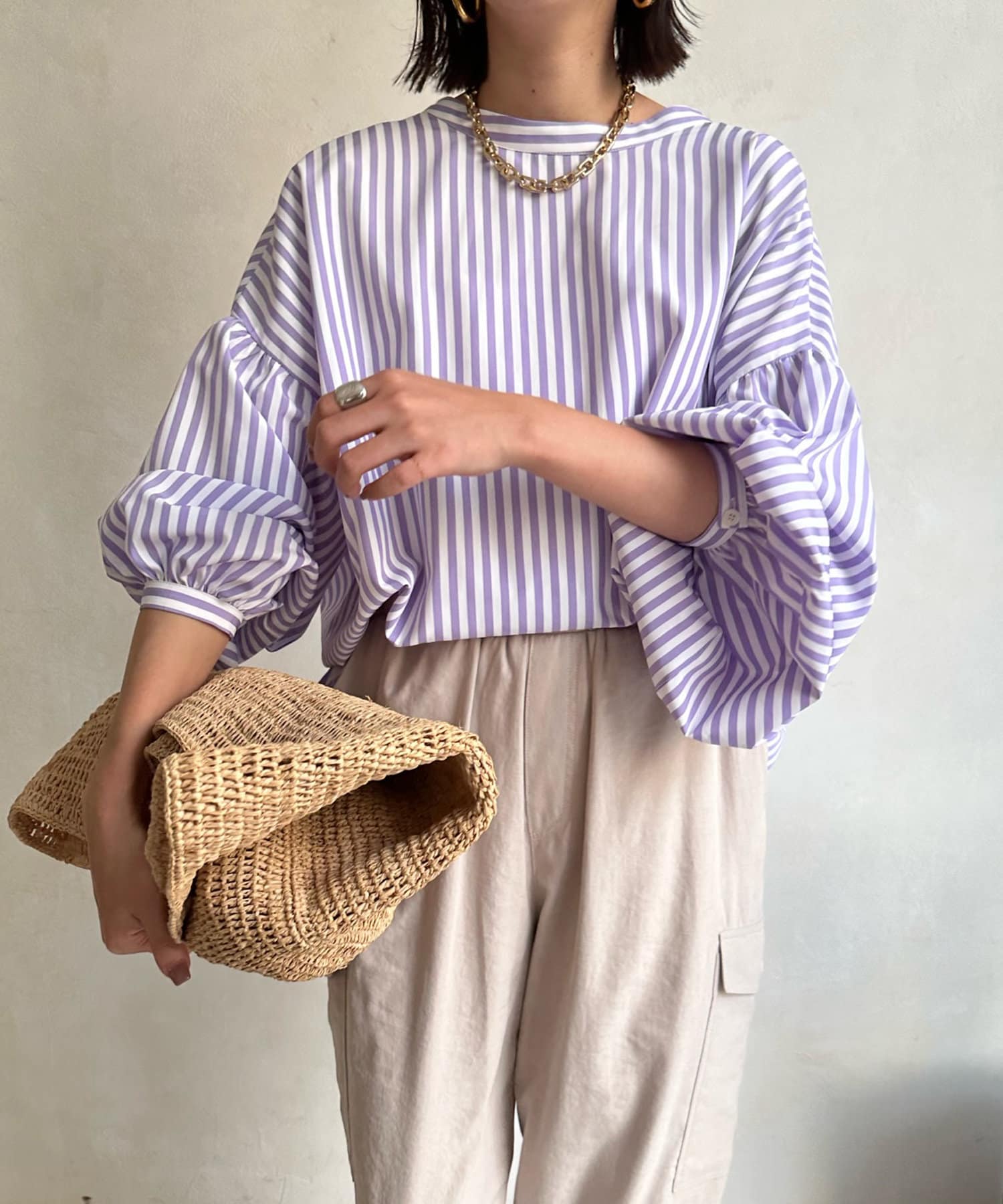 ショルダーラインと袖口にギャザーを寄せ、ボリューム感を作った袖シルエットがポイントです。