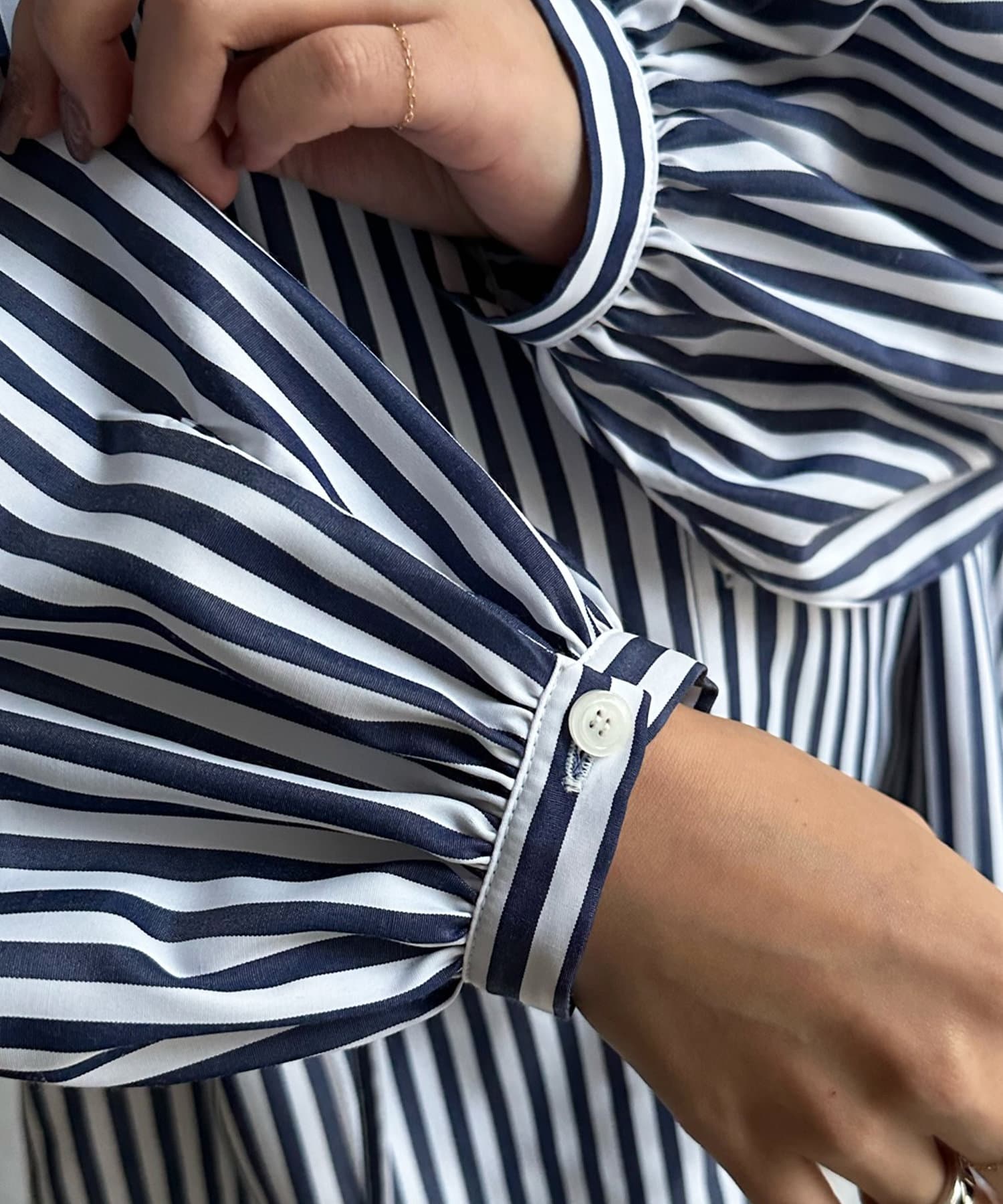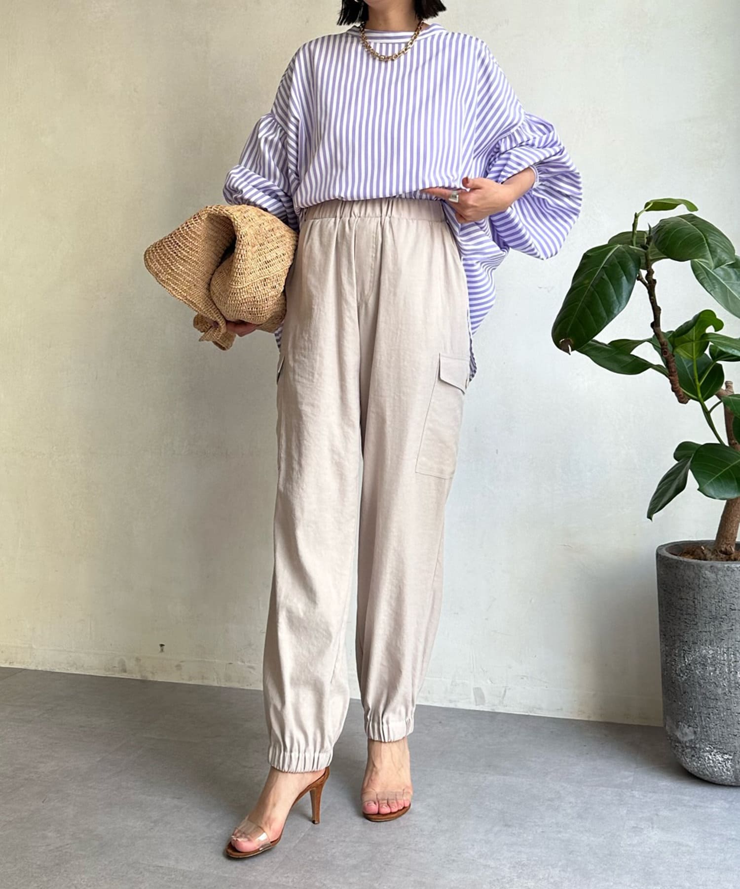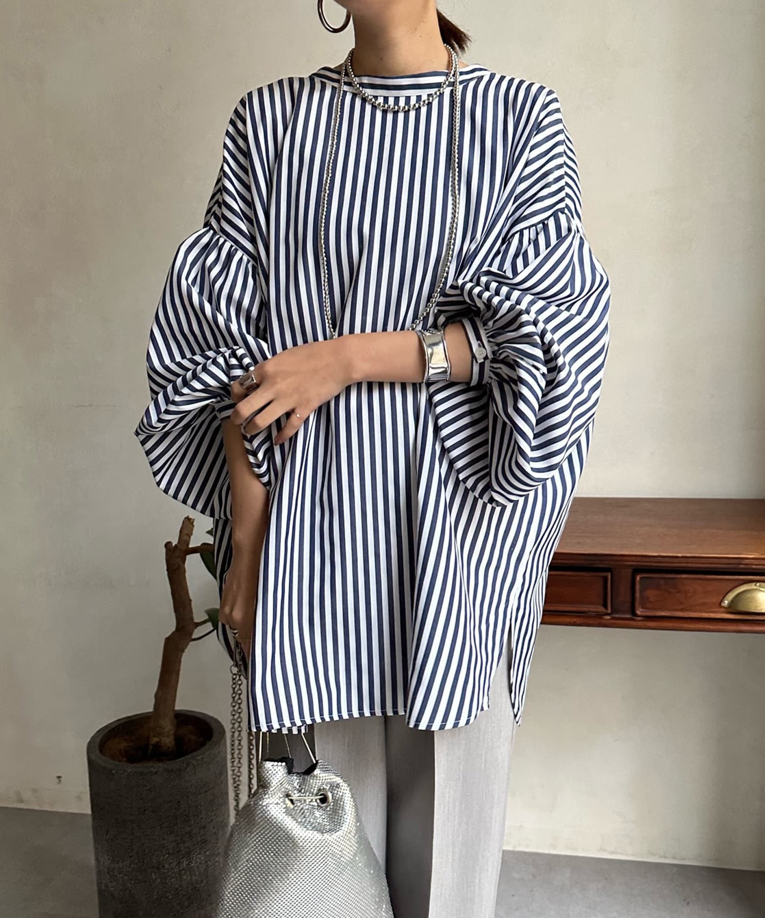 ショルダーラインと袖口にギャザーを寄せ、ボリューム感を作った袖シルエットがポイントです。