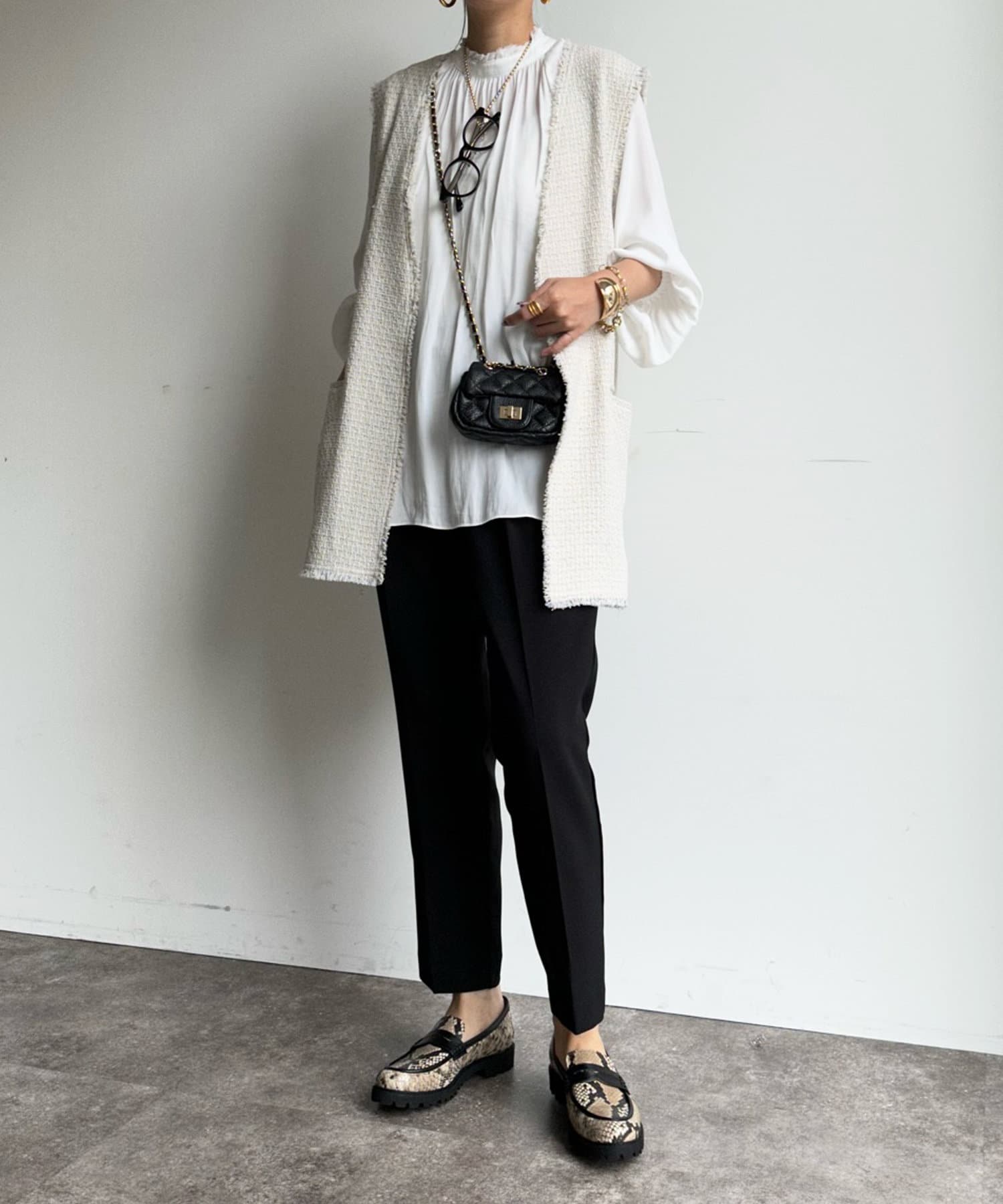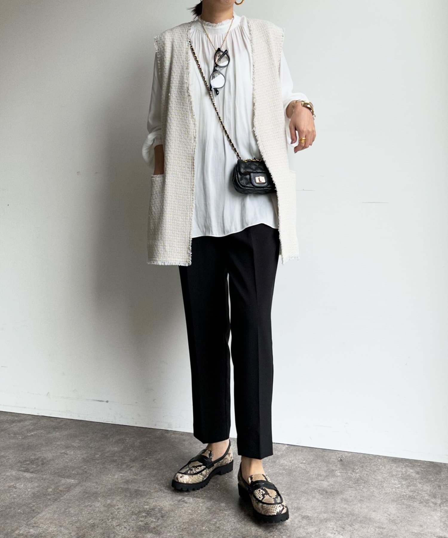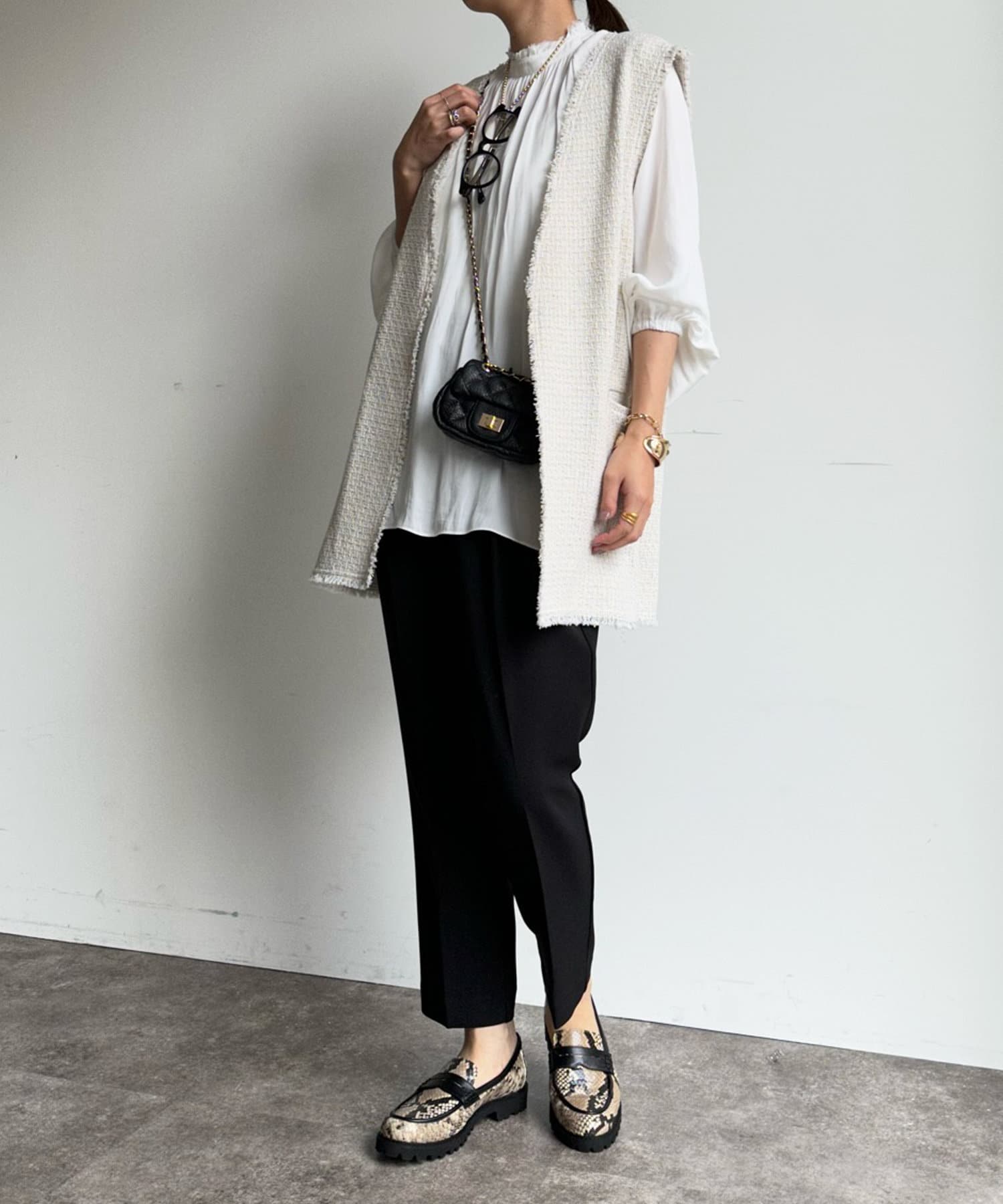 落ち感があり、柔らかに透ける素材感で上品さをプラス。