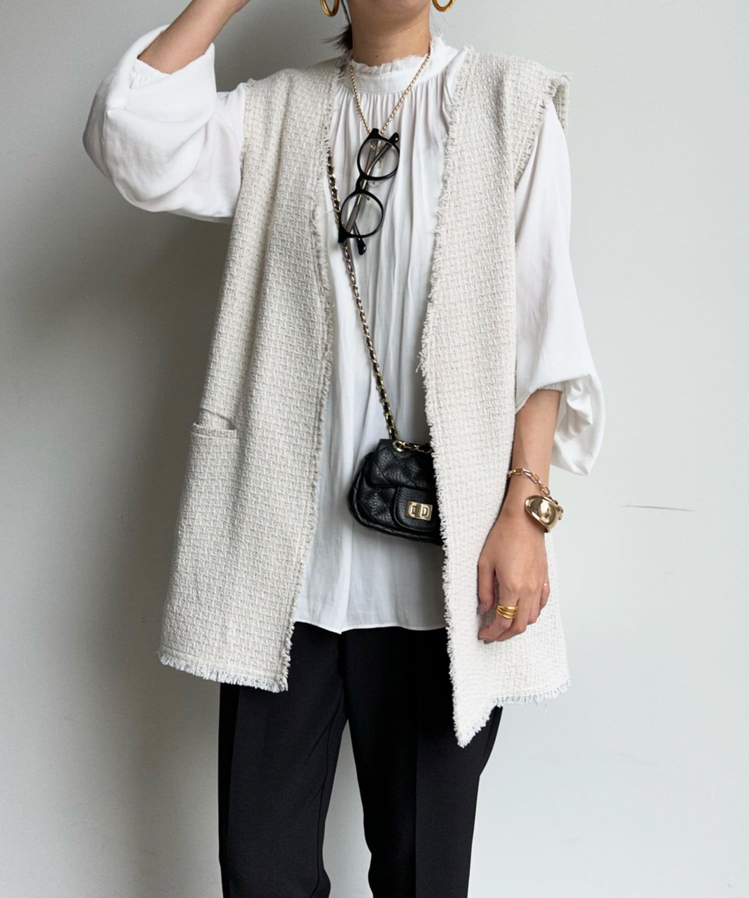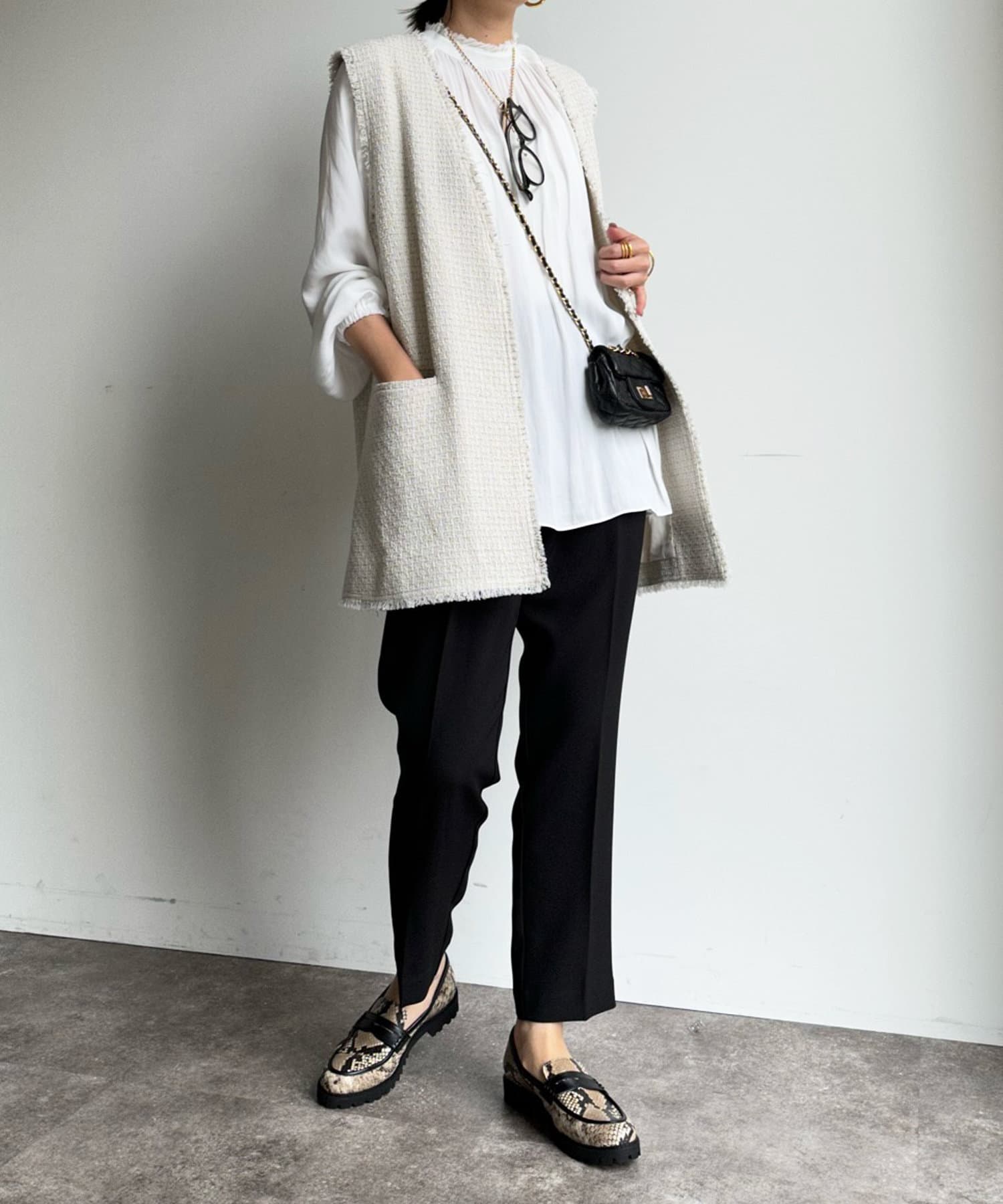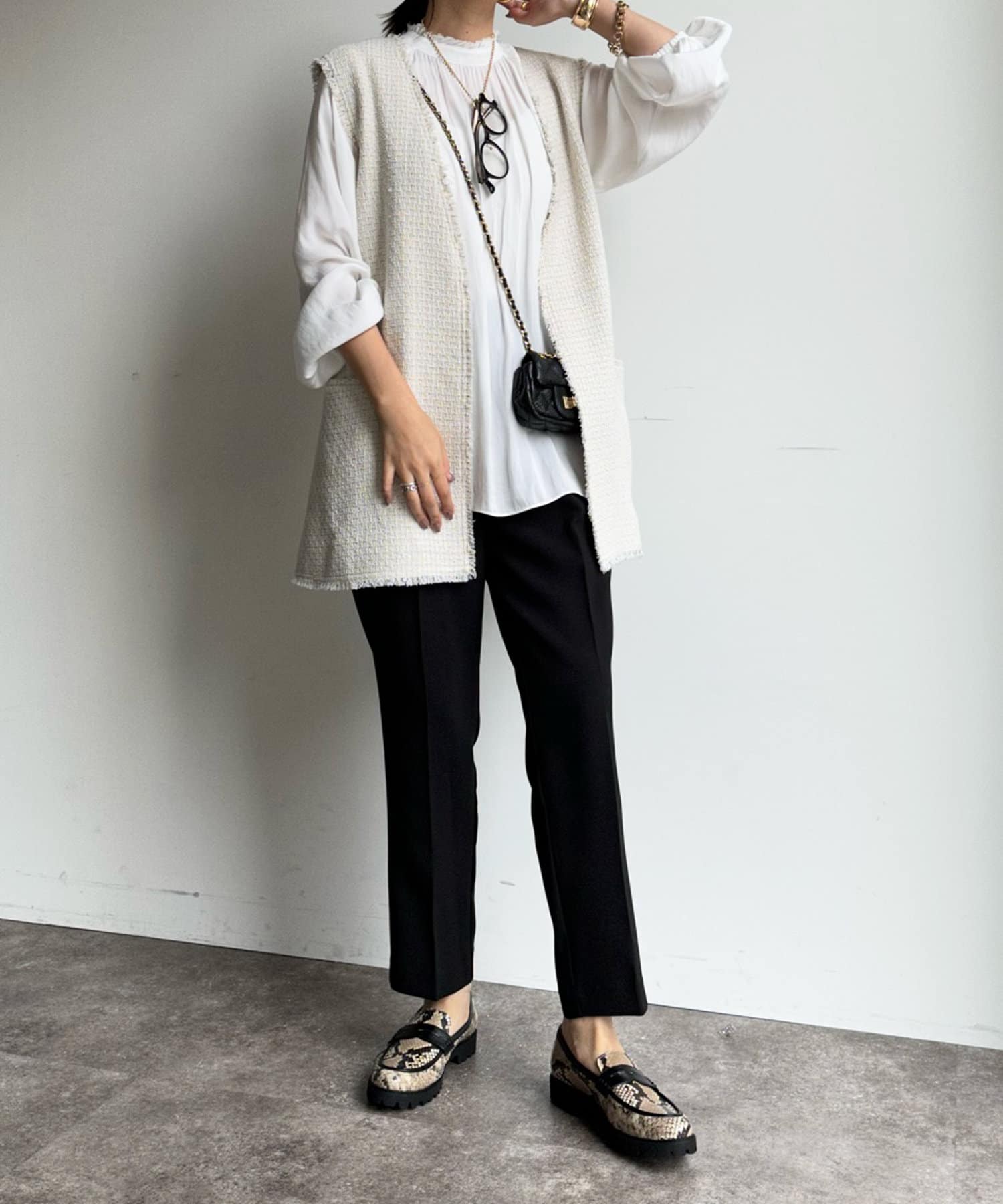 落ち感があり、柔らかに透ける素材感で上品さをプラス。