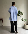 第一ボタンを外して顔まわりに抜け感を出したり、ボタンを開けて羽織としてばさっと着ていただくなど、幅広いコーディネートに活躍してくれる一着です。