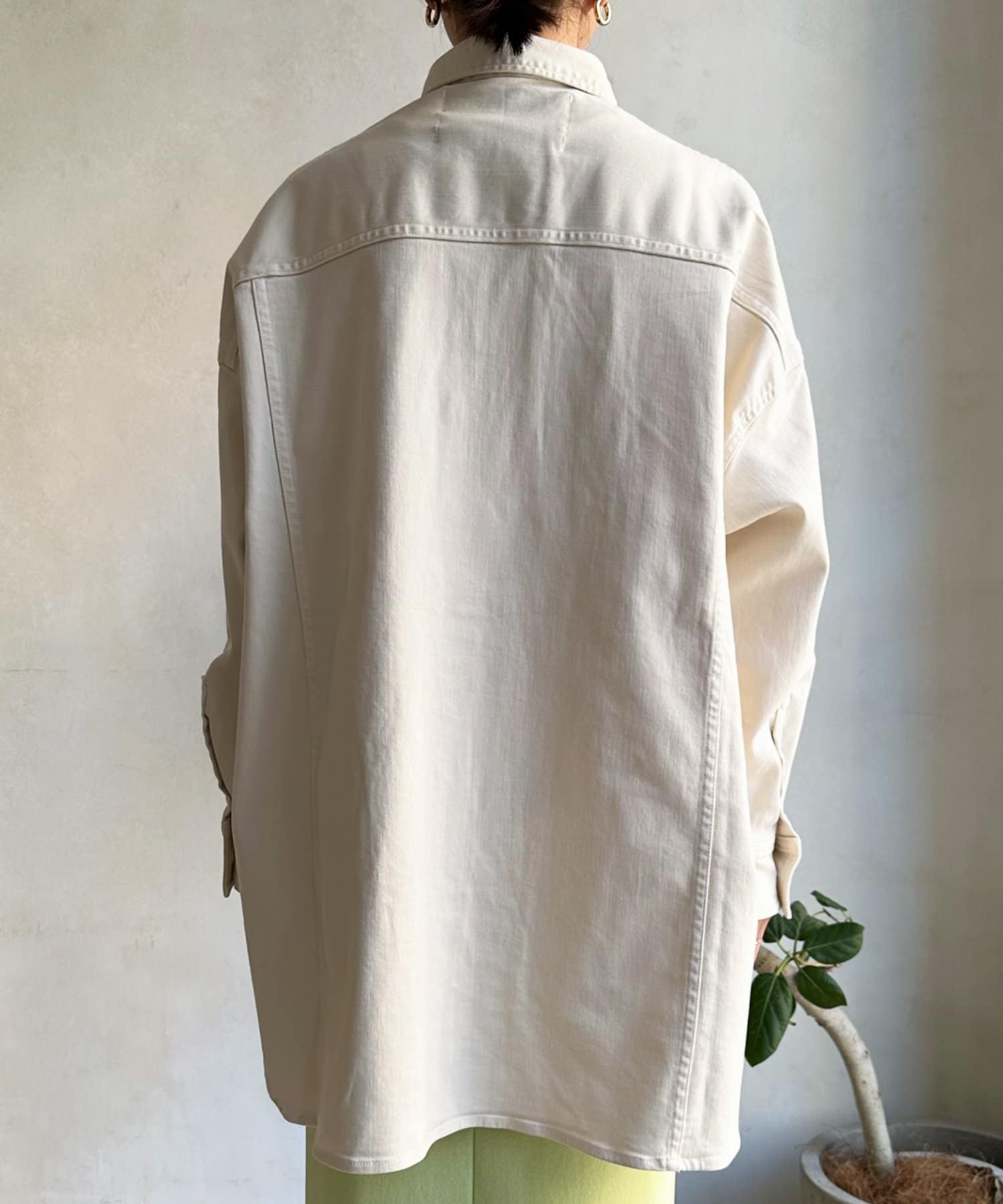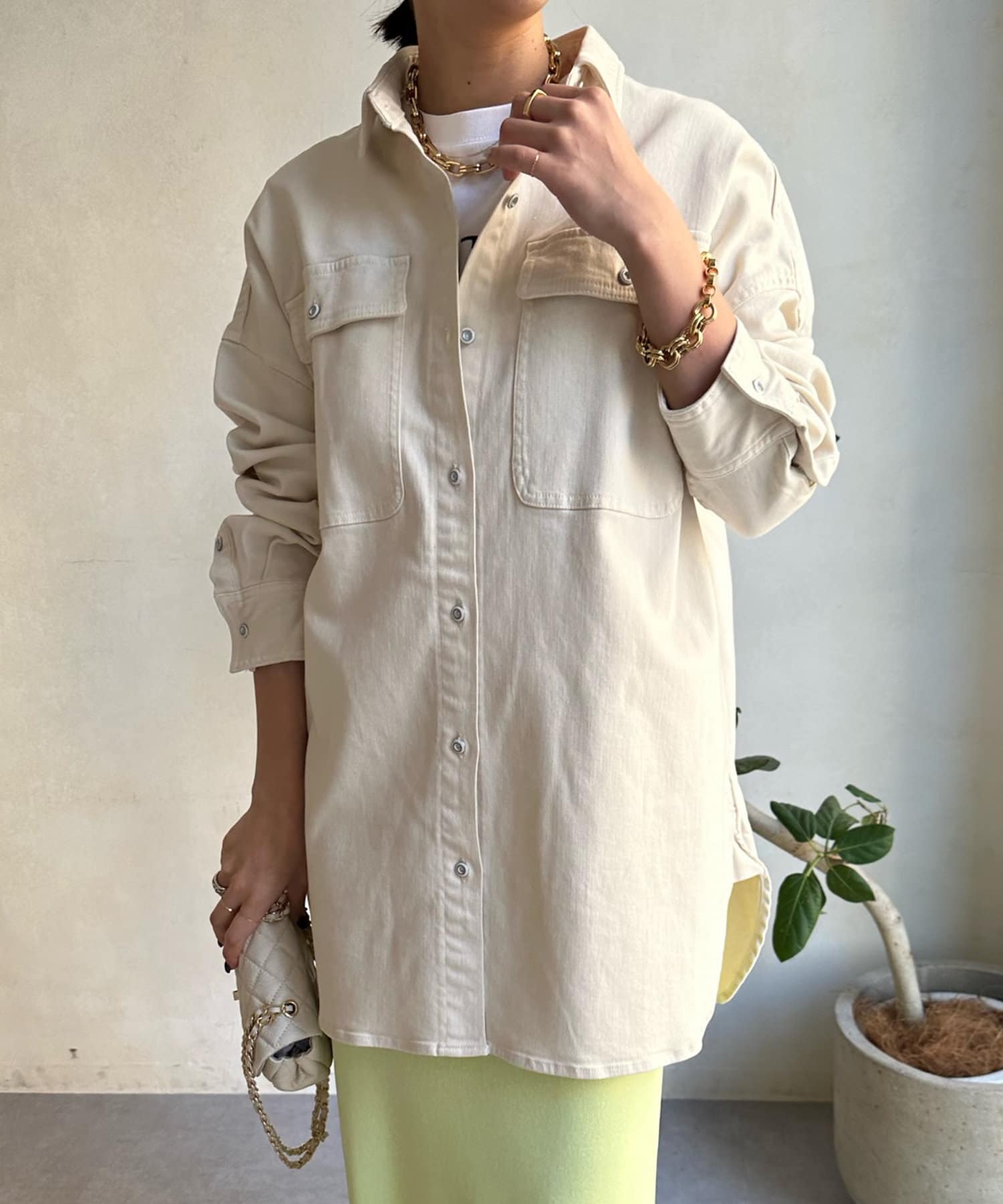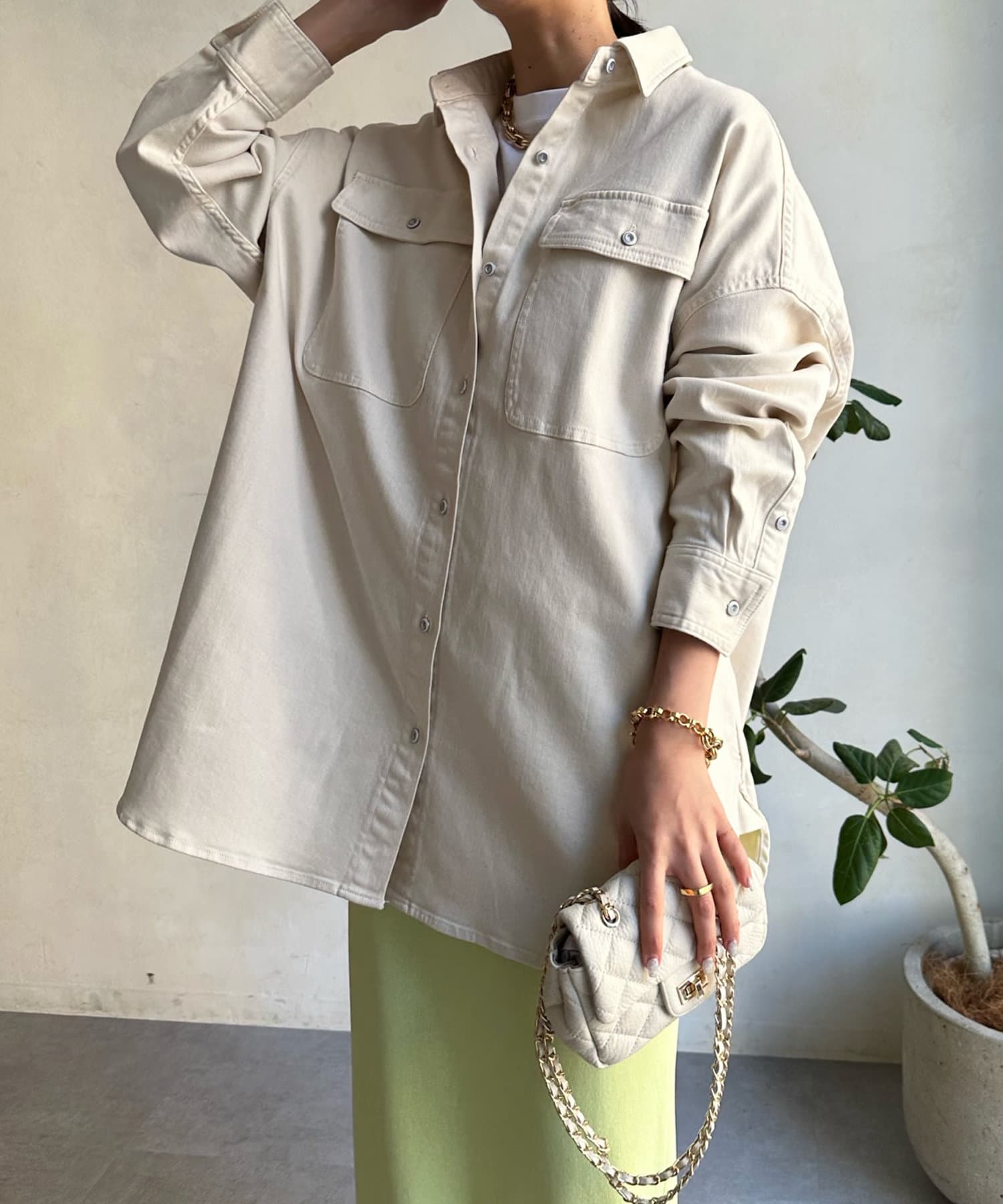 包み込まれるようなサイジングがポイントのビッグシャツ。