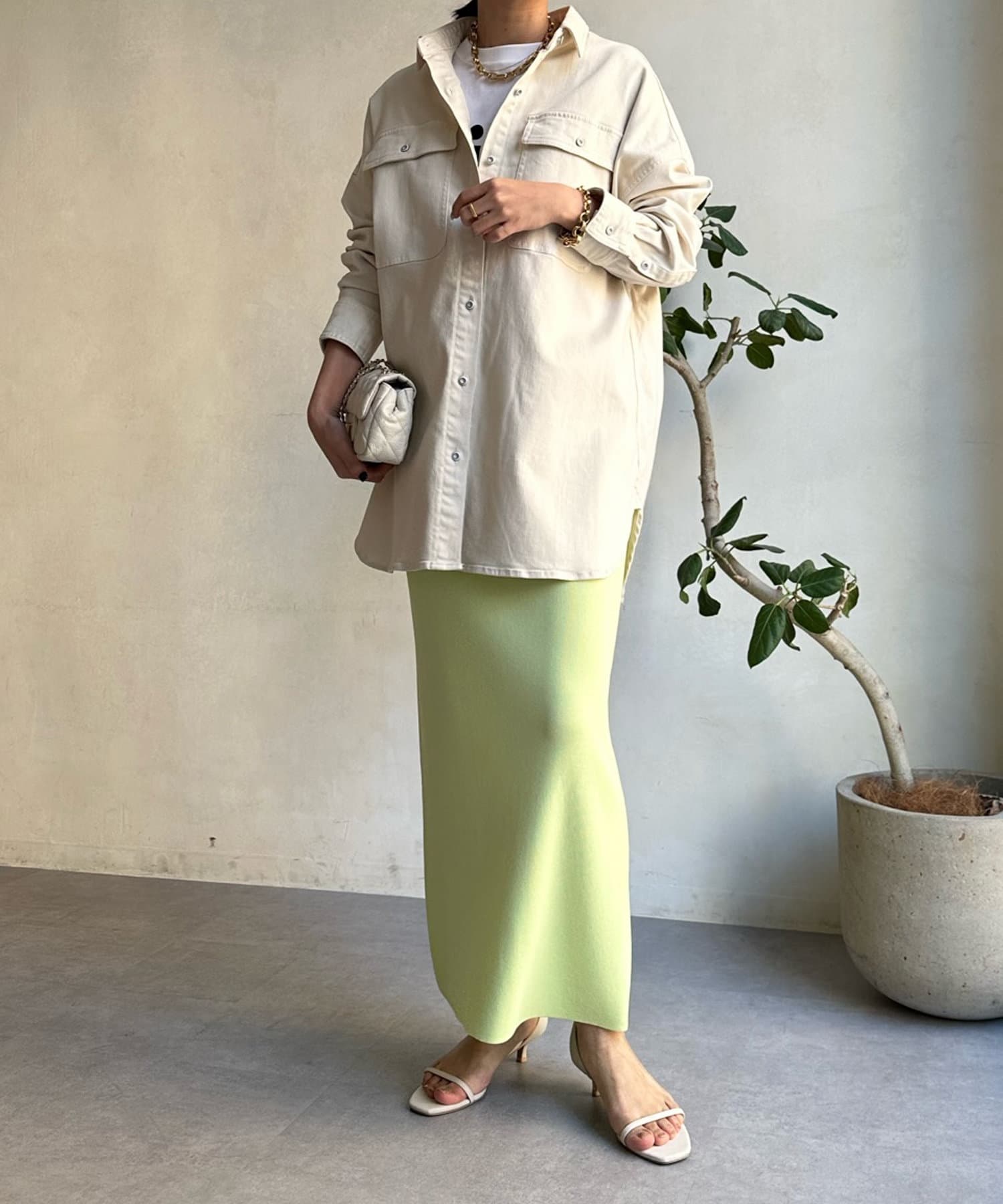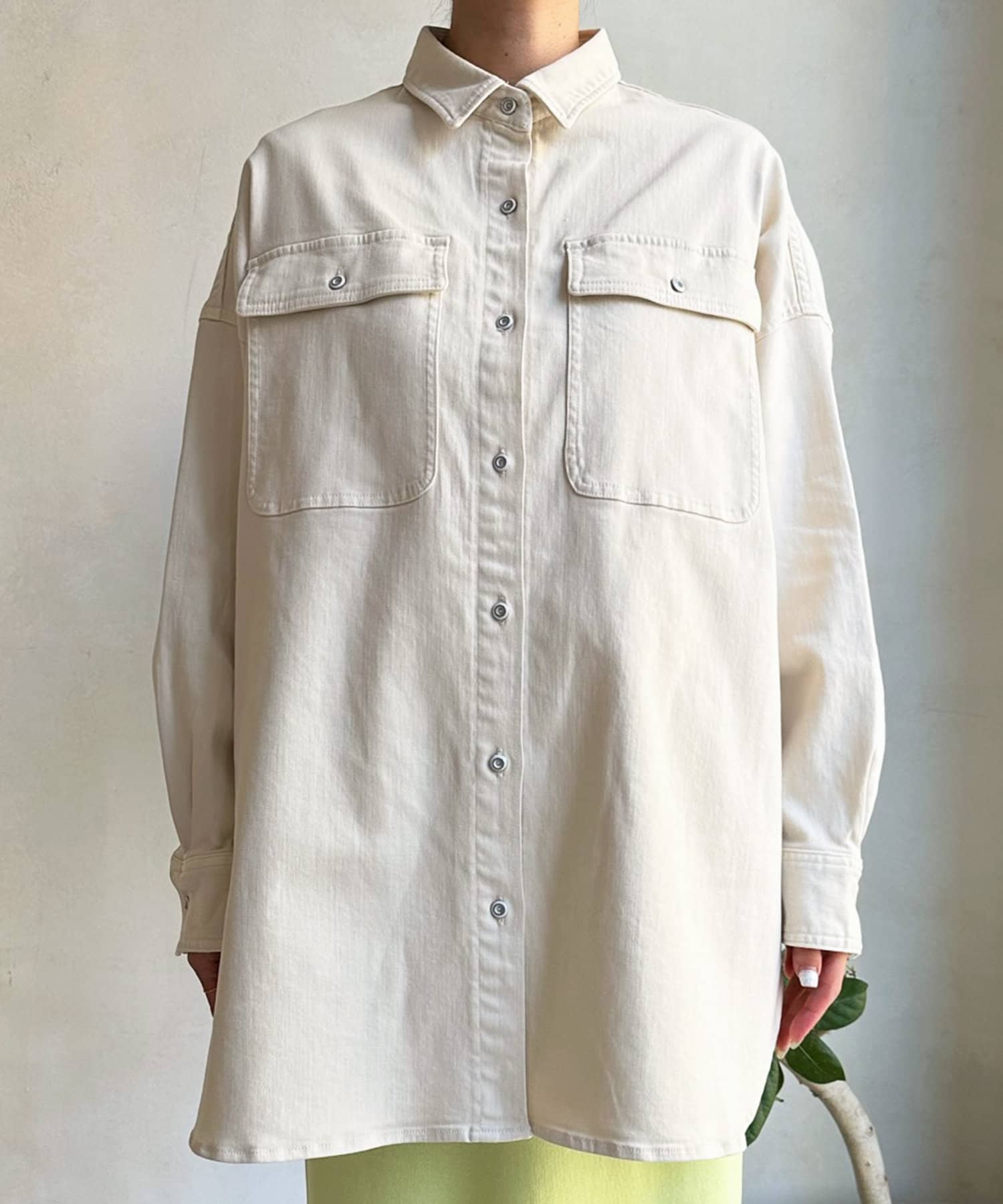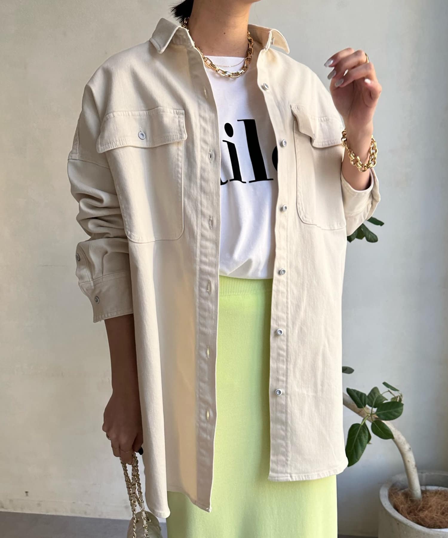 包み込まれるようなサイジングがポイントのビッグシャツ。