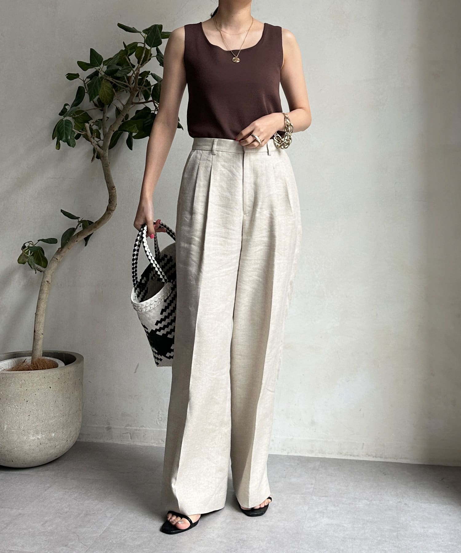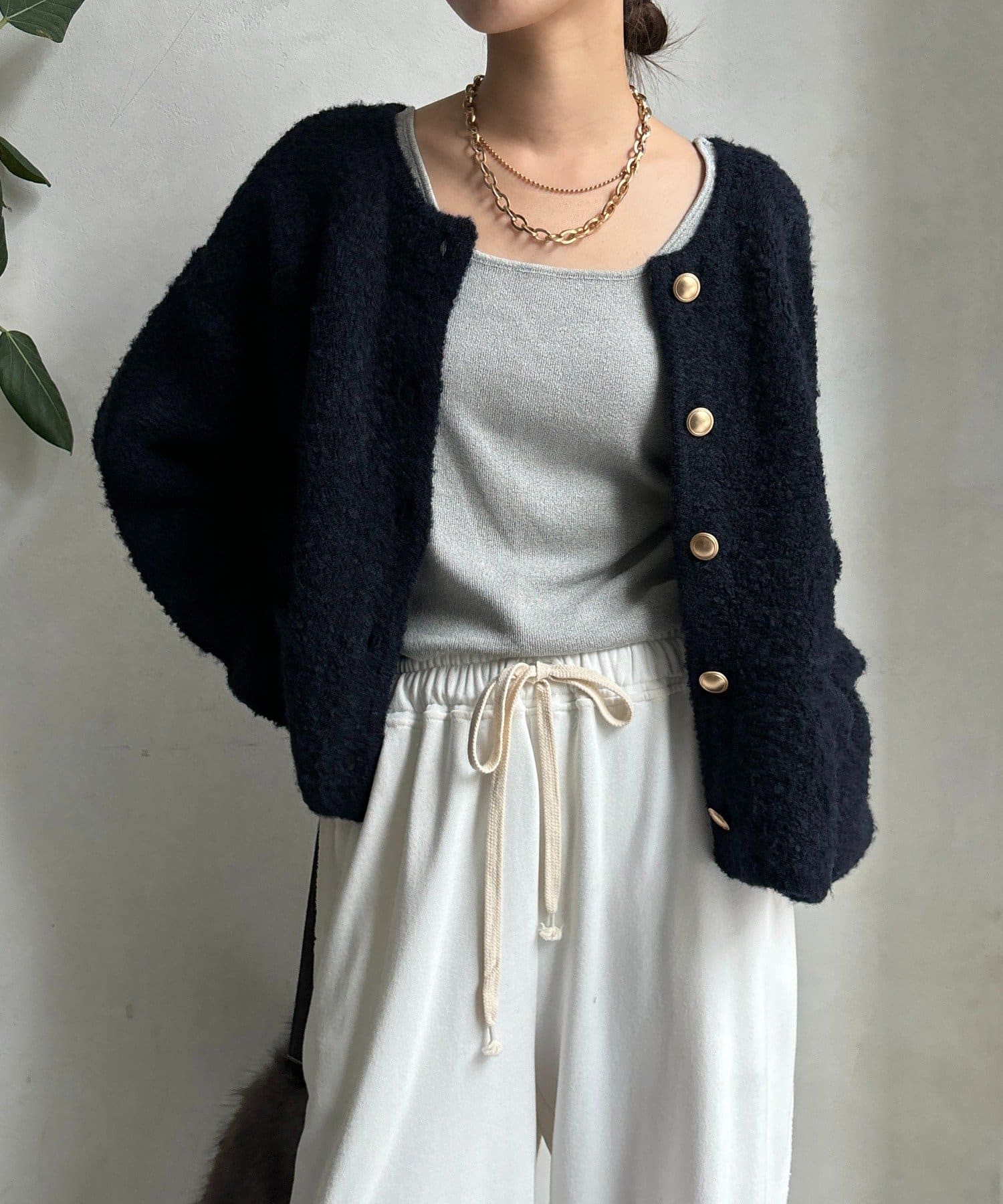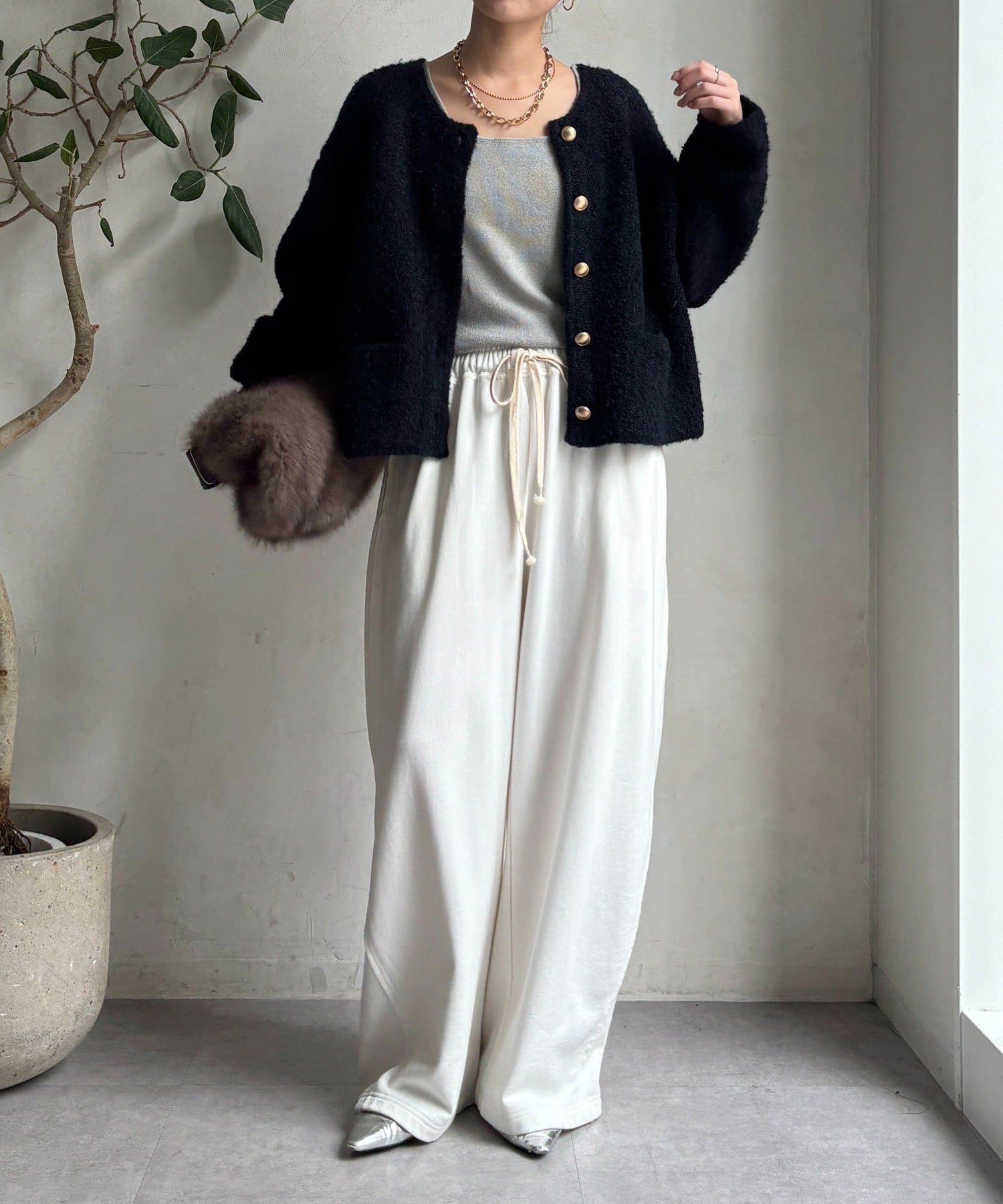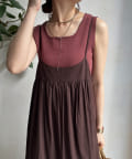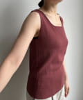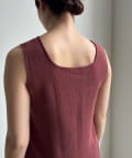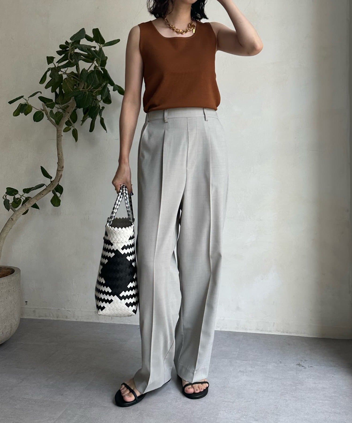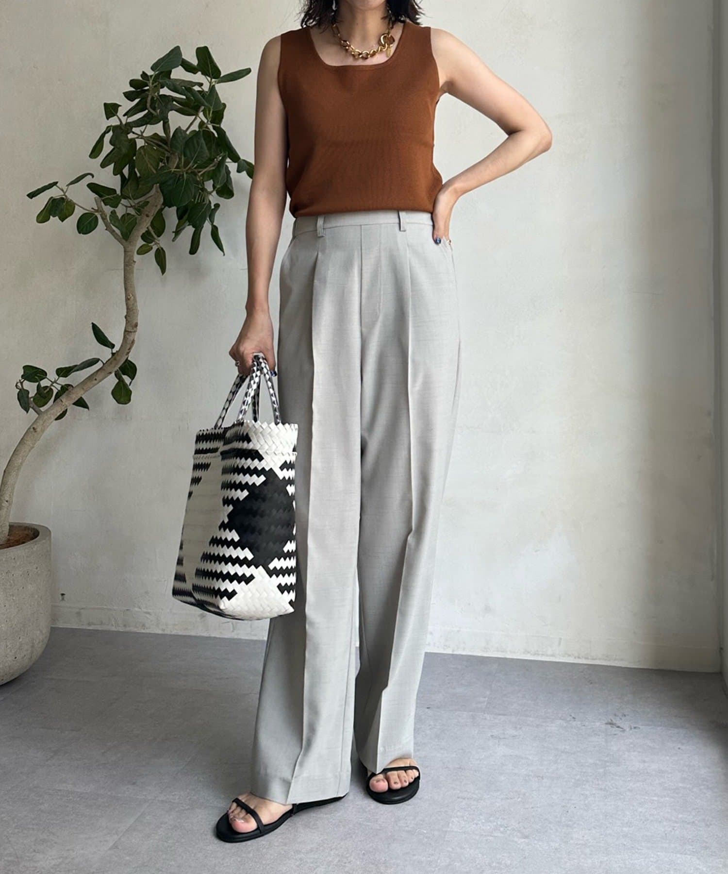 ニット素材で楽に着られ、スクエアネックは小顔効果やデコルテも綺麗に見せてくれます。