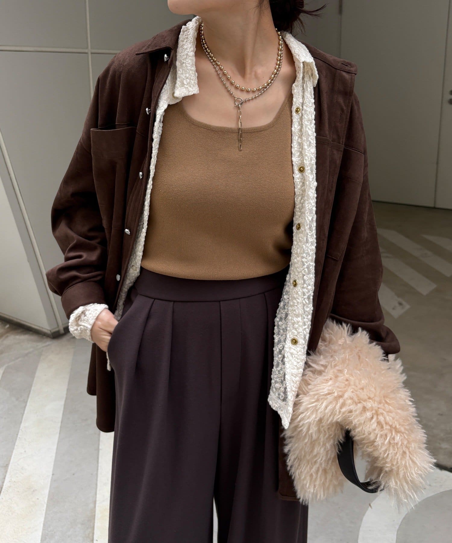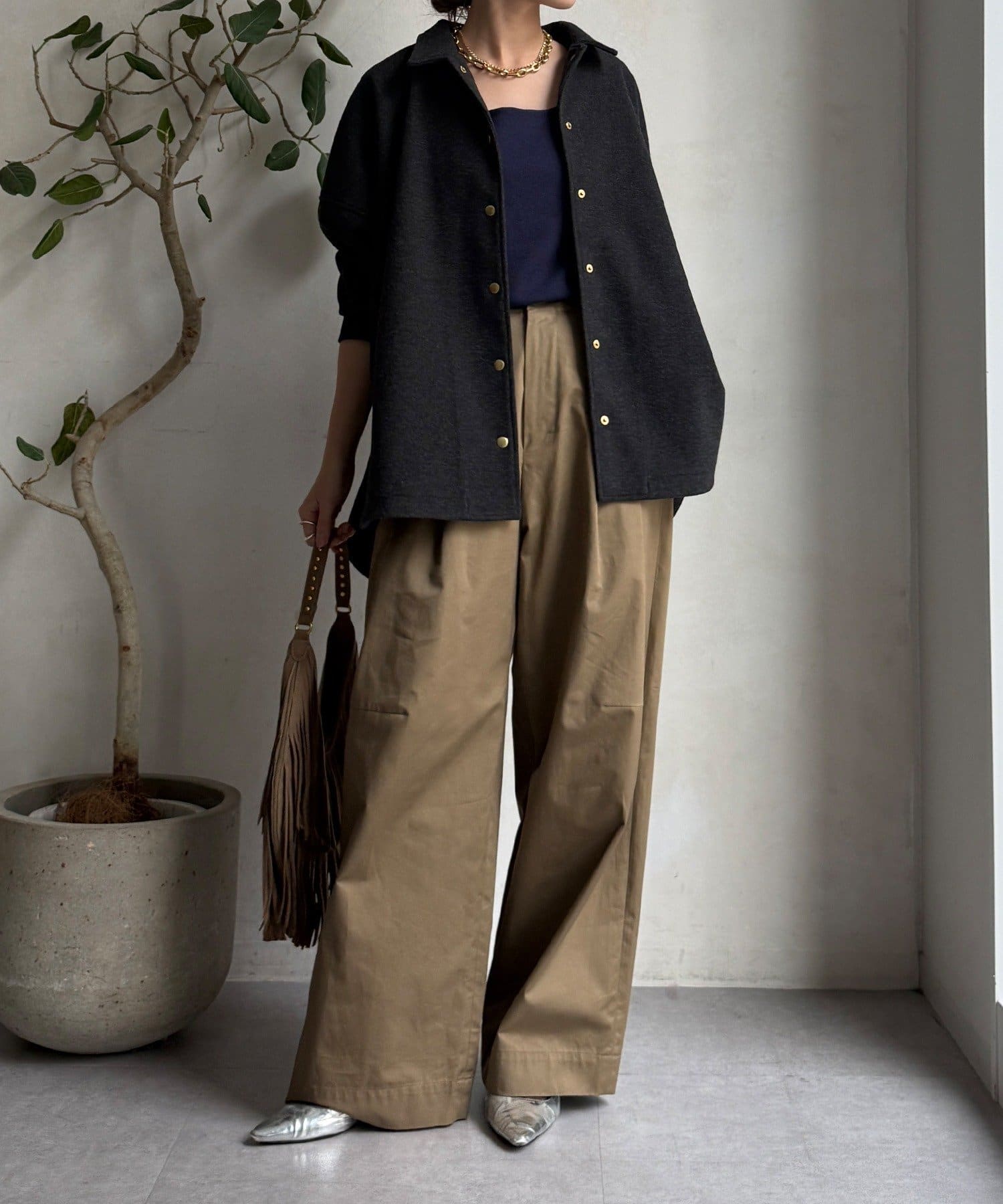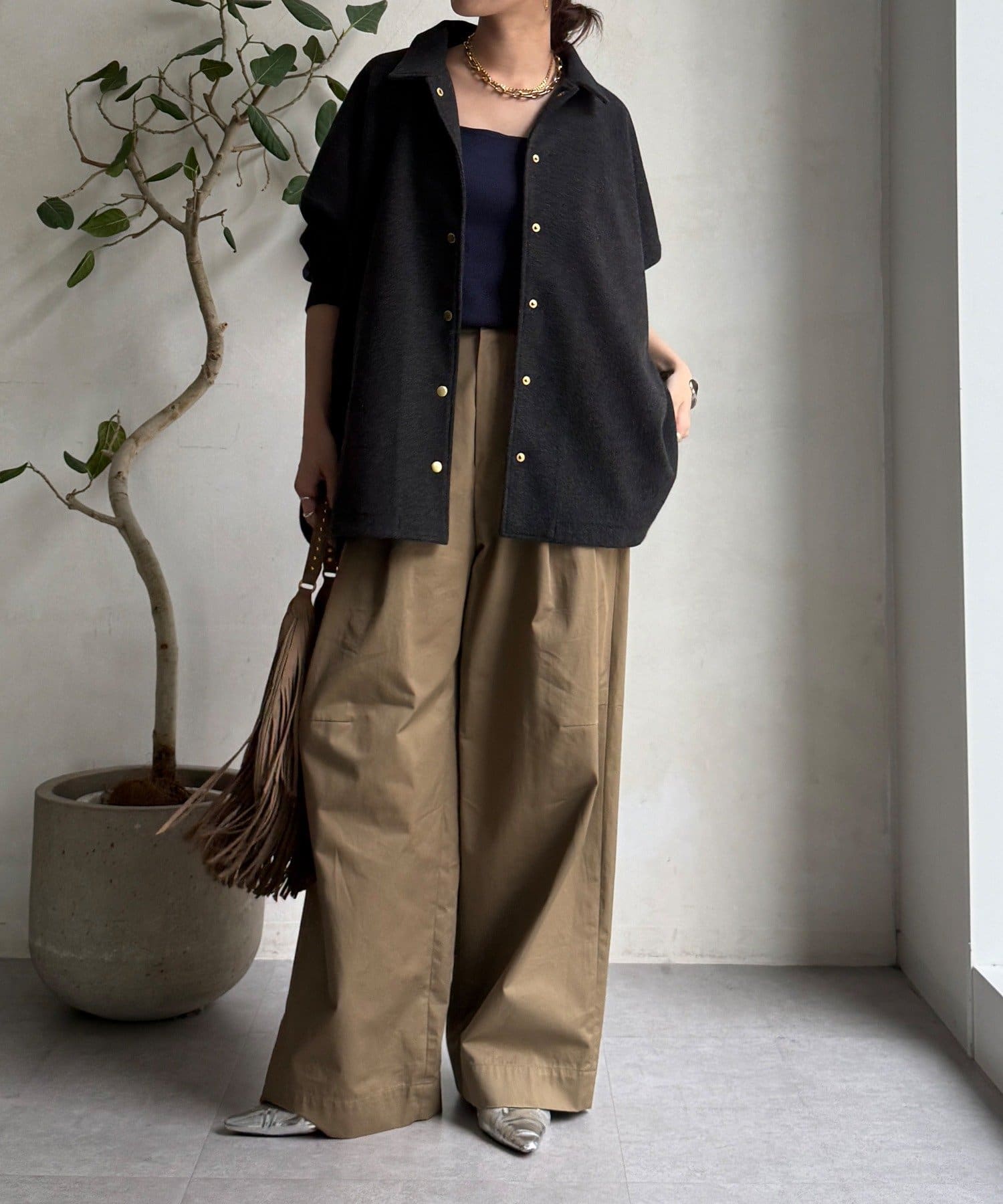 羽織りアイテムのインナーとしてはもちろん、1枚着にも対応可能なためロングシーズン活躍が期待。