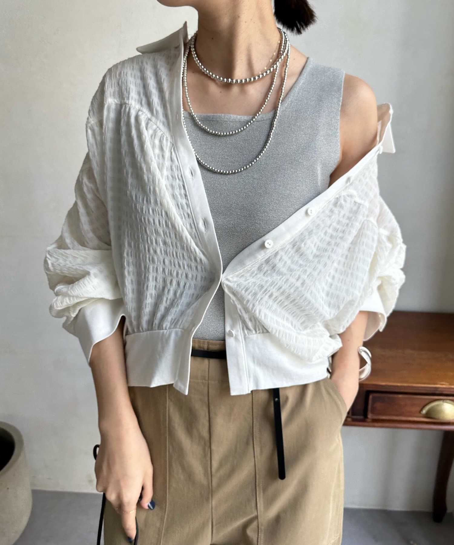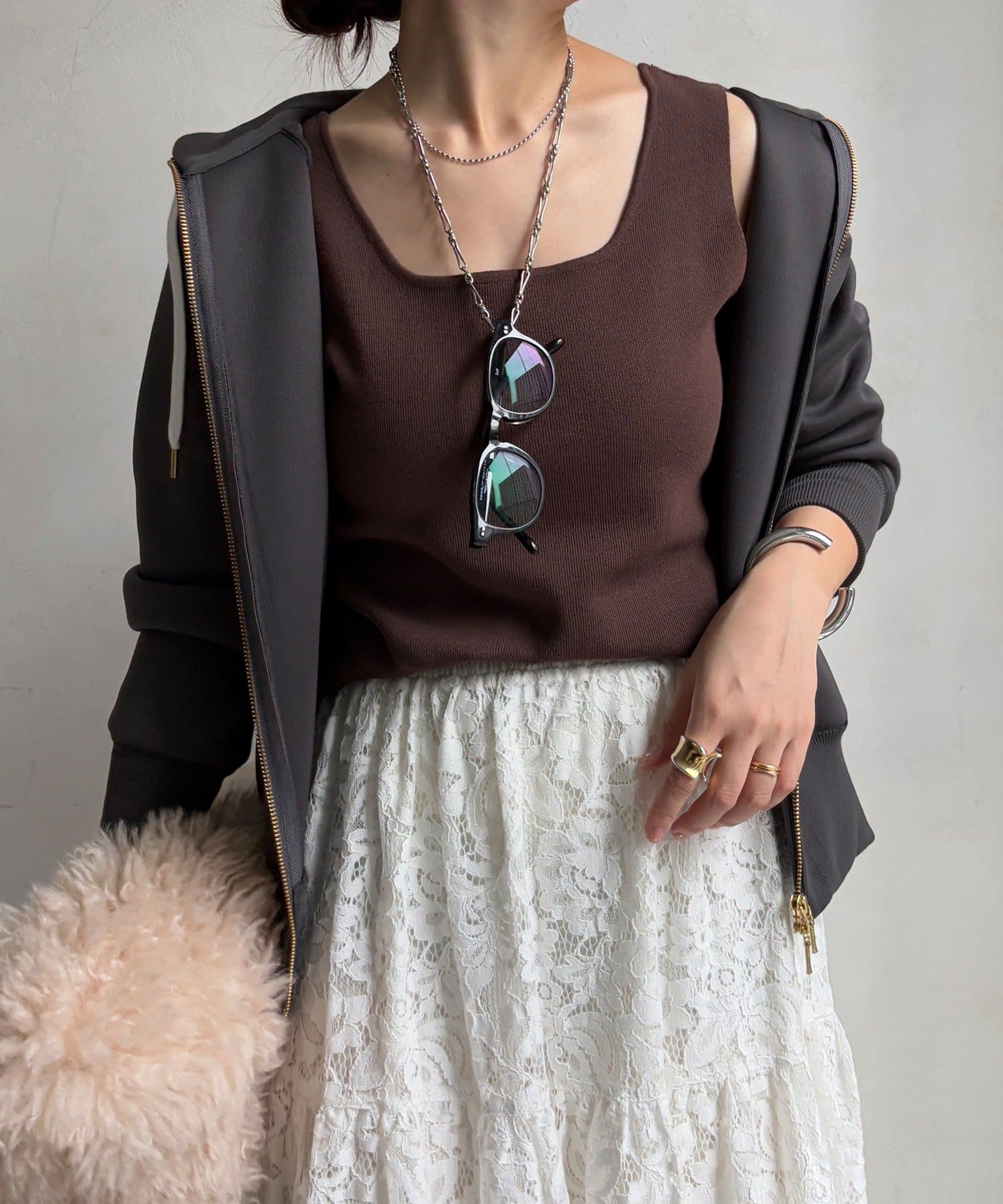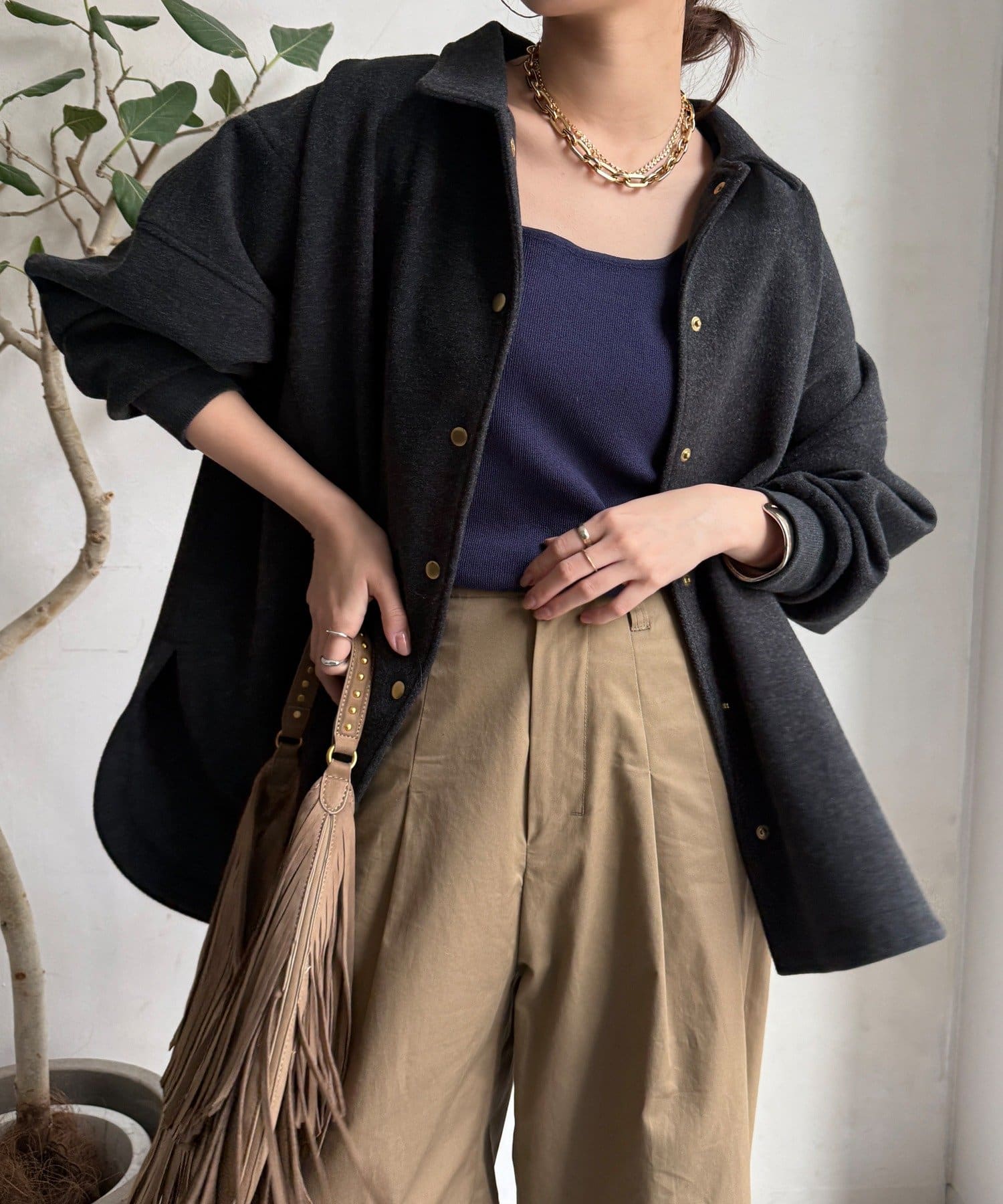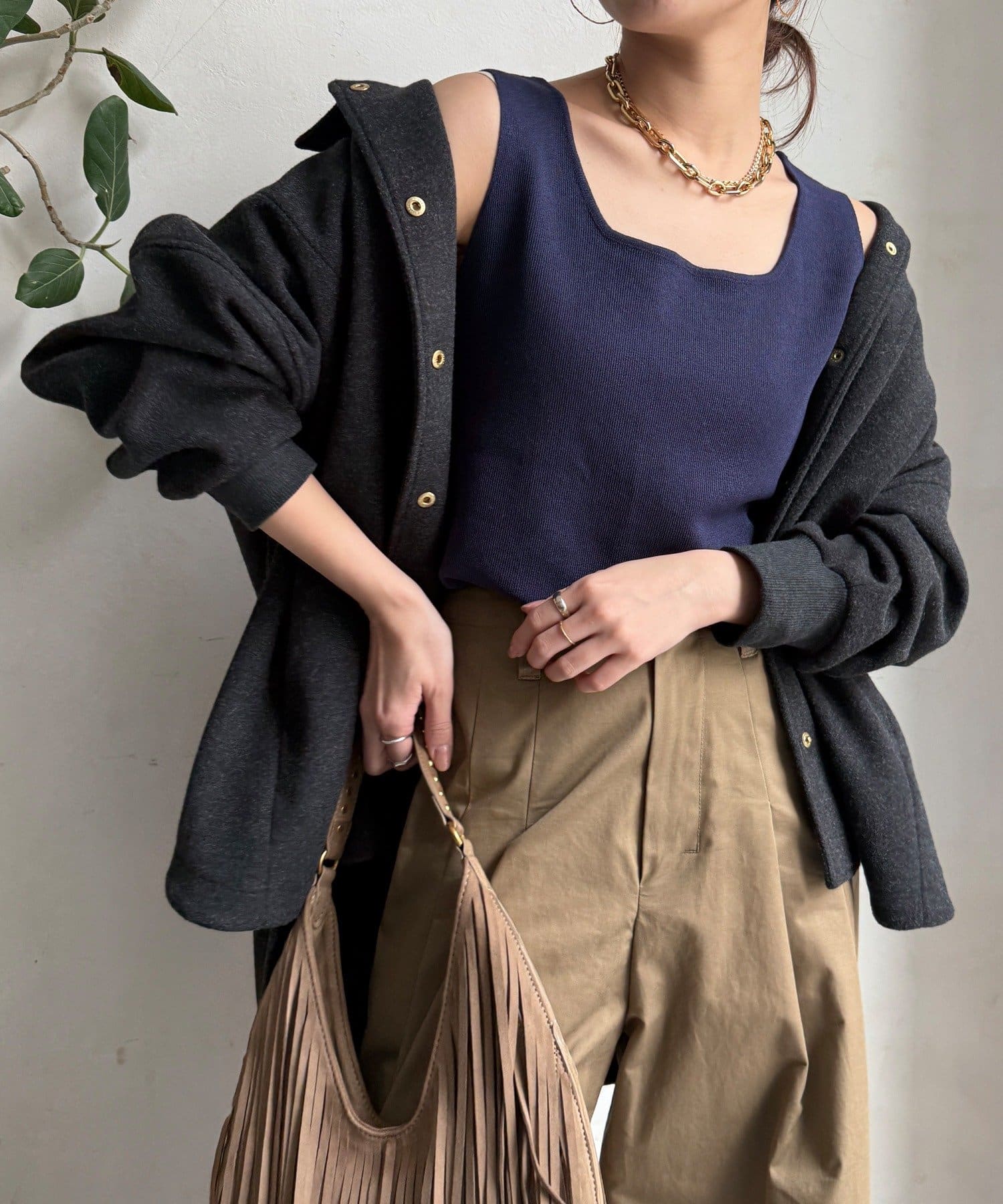 羽織りアイテムのインナーとしてはもちろん、1枚着にも対応可能なためロングシーズン活躍が期待。