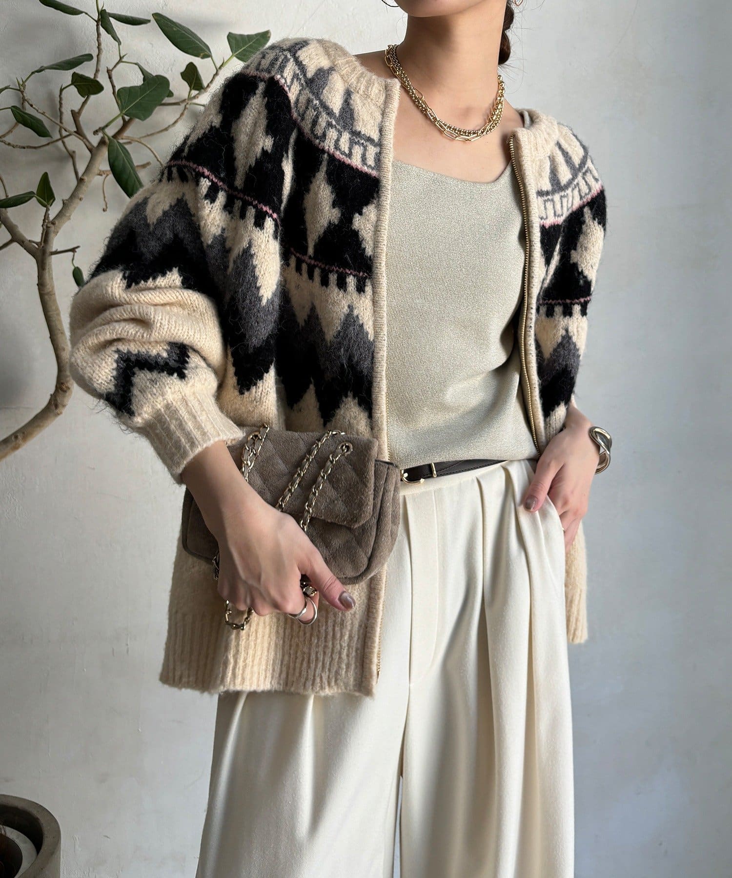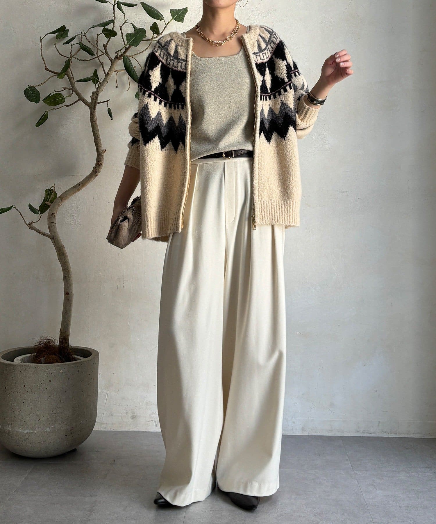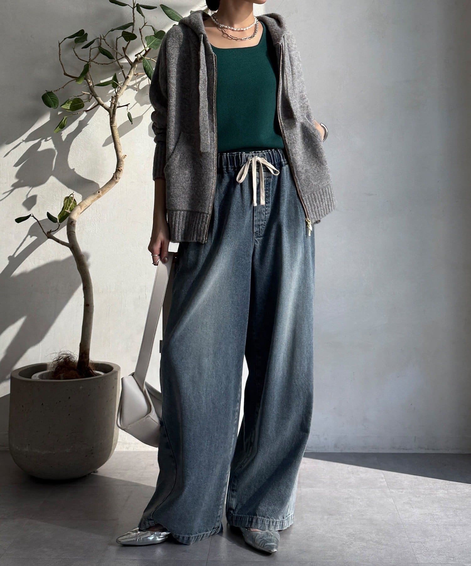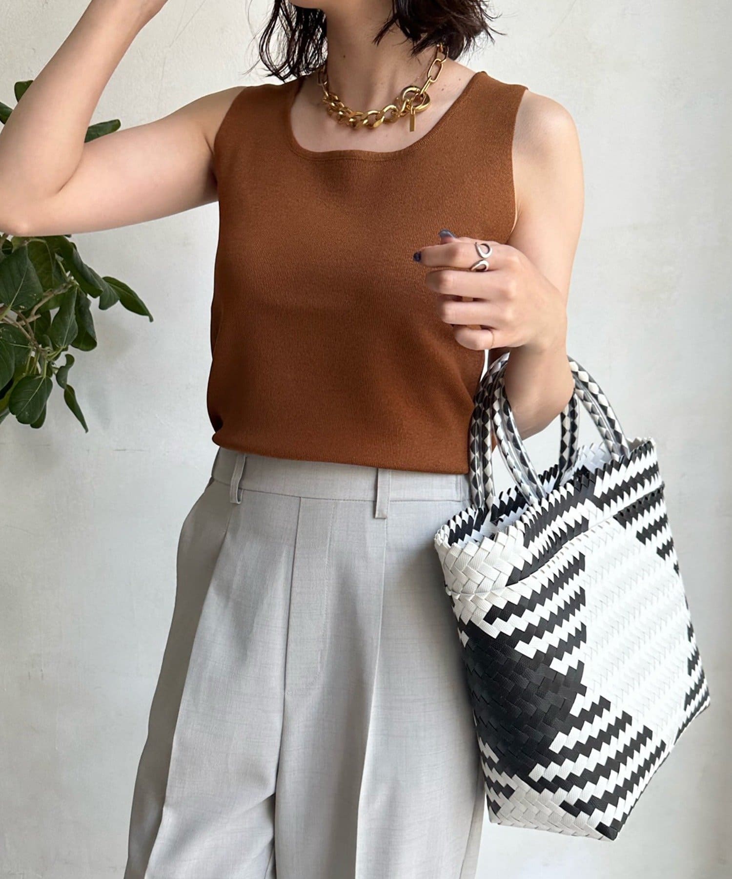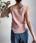 ニット素材で楽に着られ、スクエアネックは小顔効果やデコルテも綺麗に見せてくれます。
