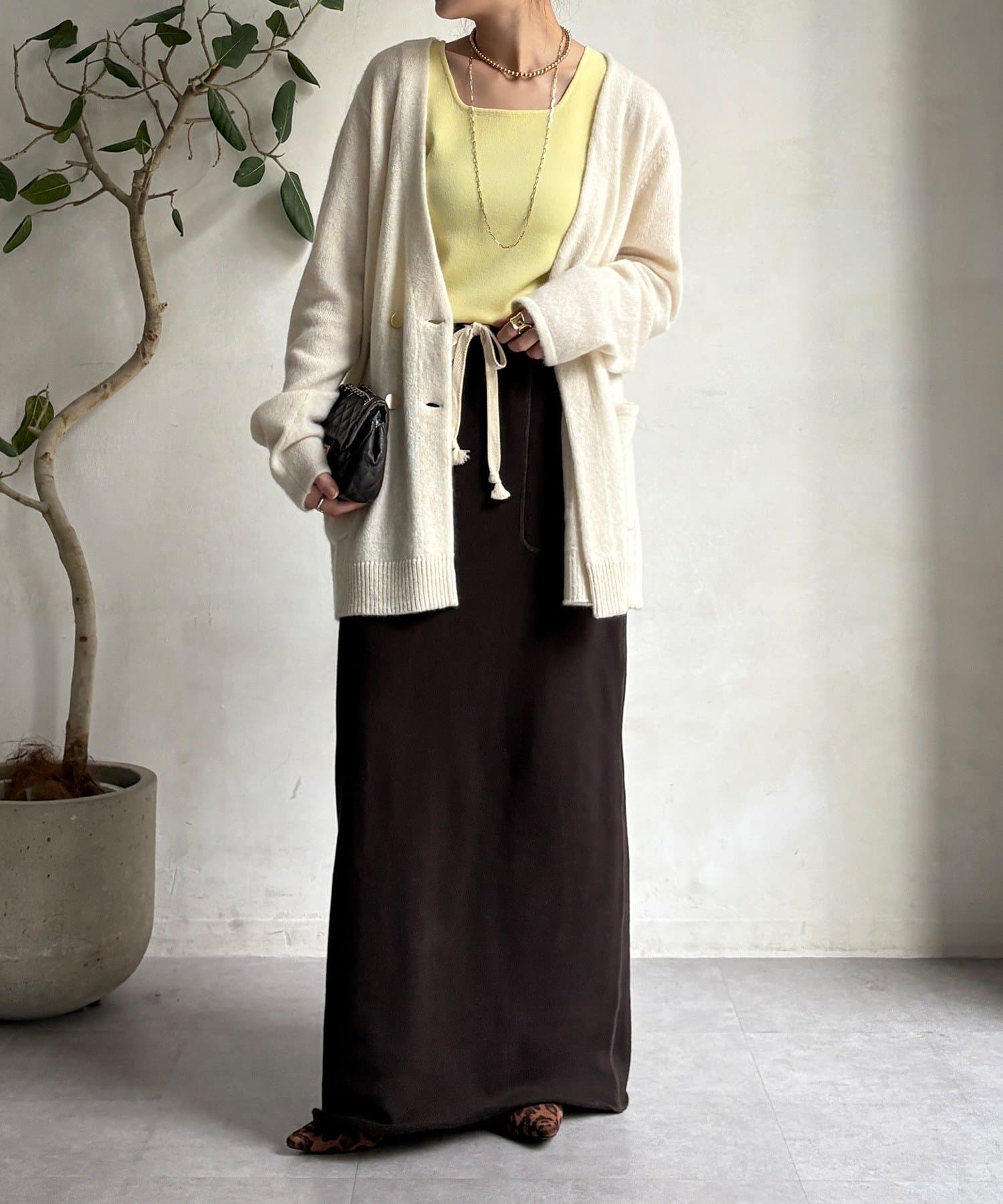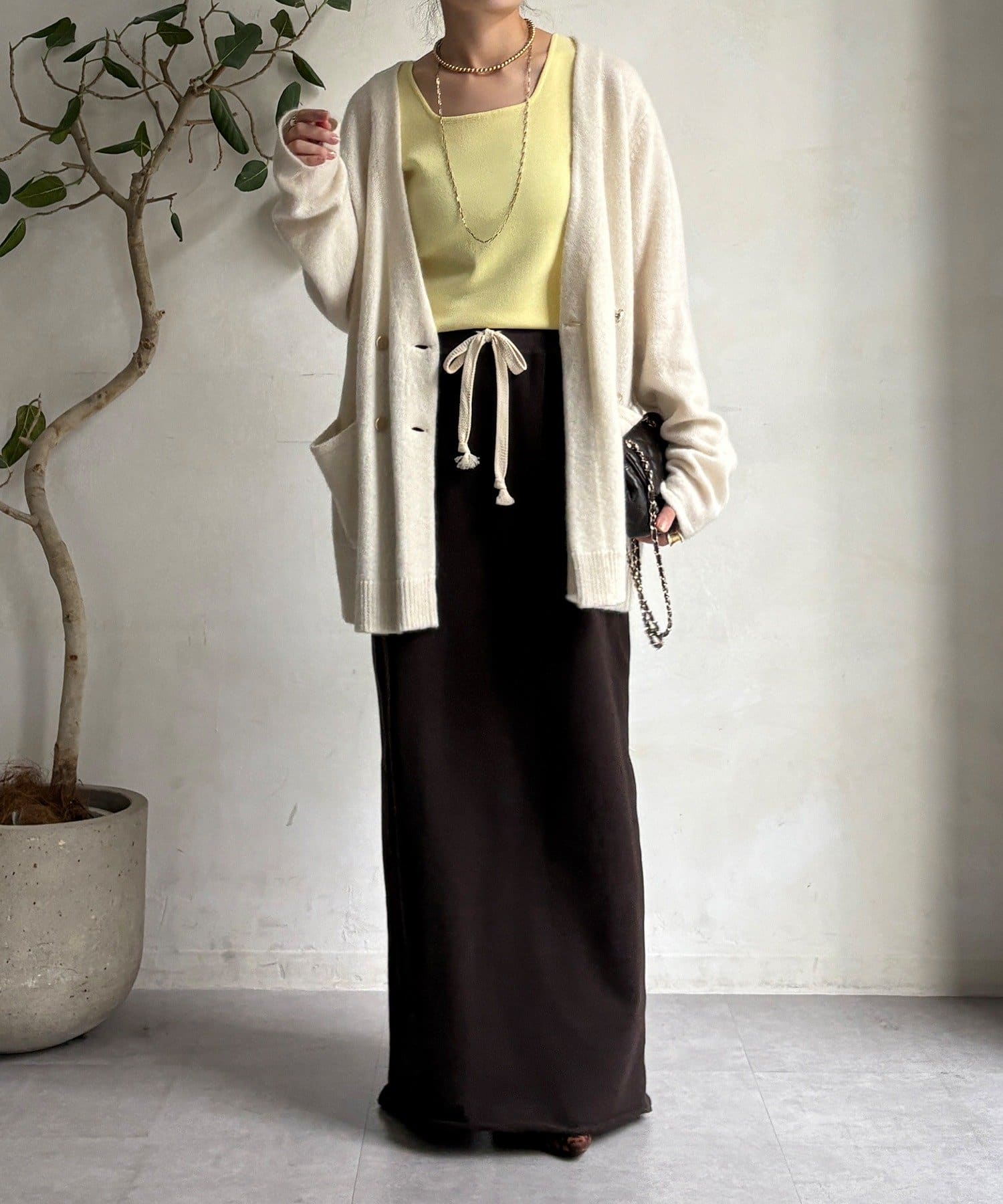 羽織りアイテムのインナーとしてはもちろん、1枚着にも対応可能なためロングシーズン活躍が期待。
