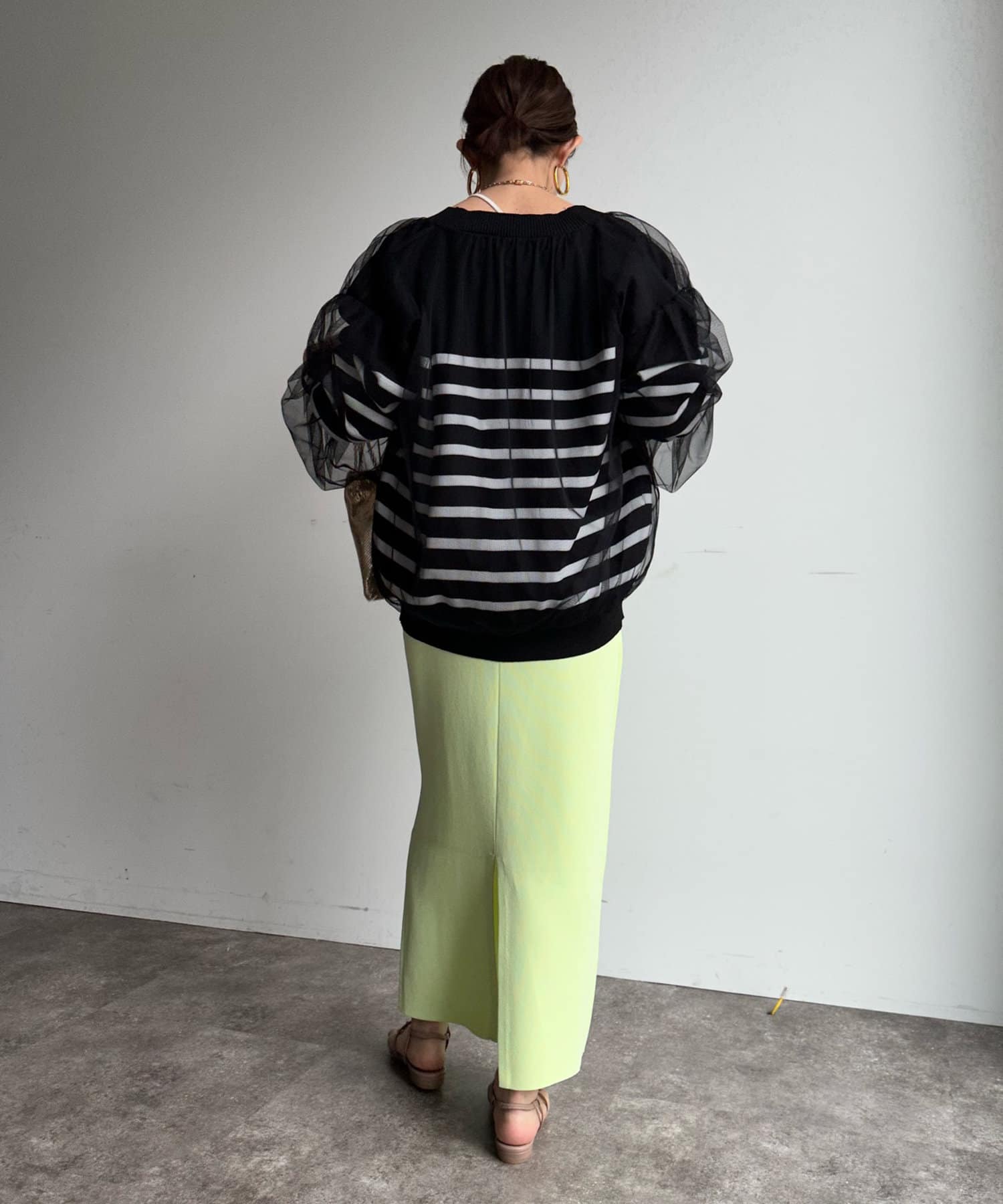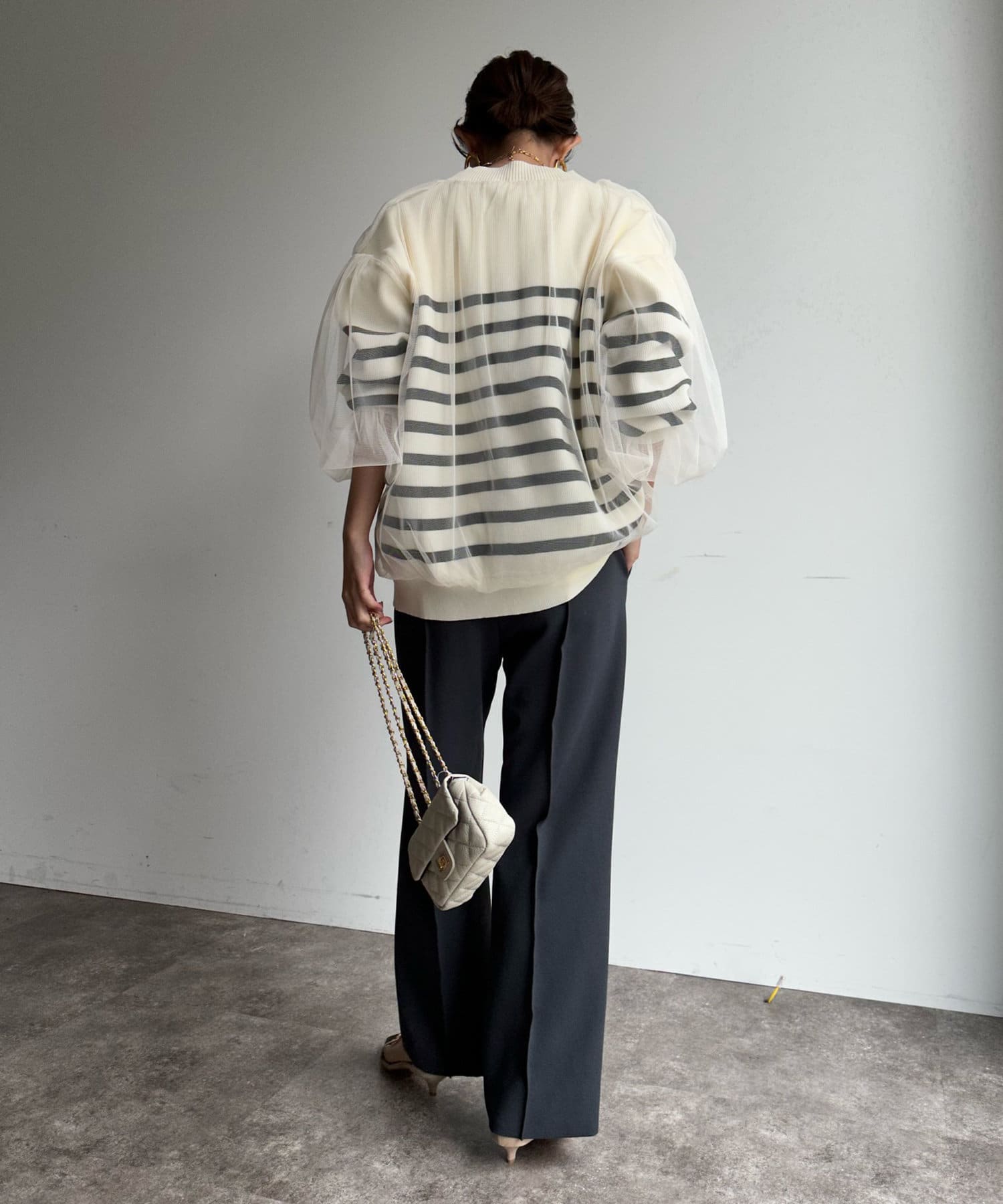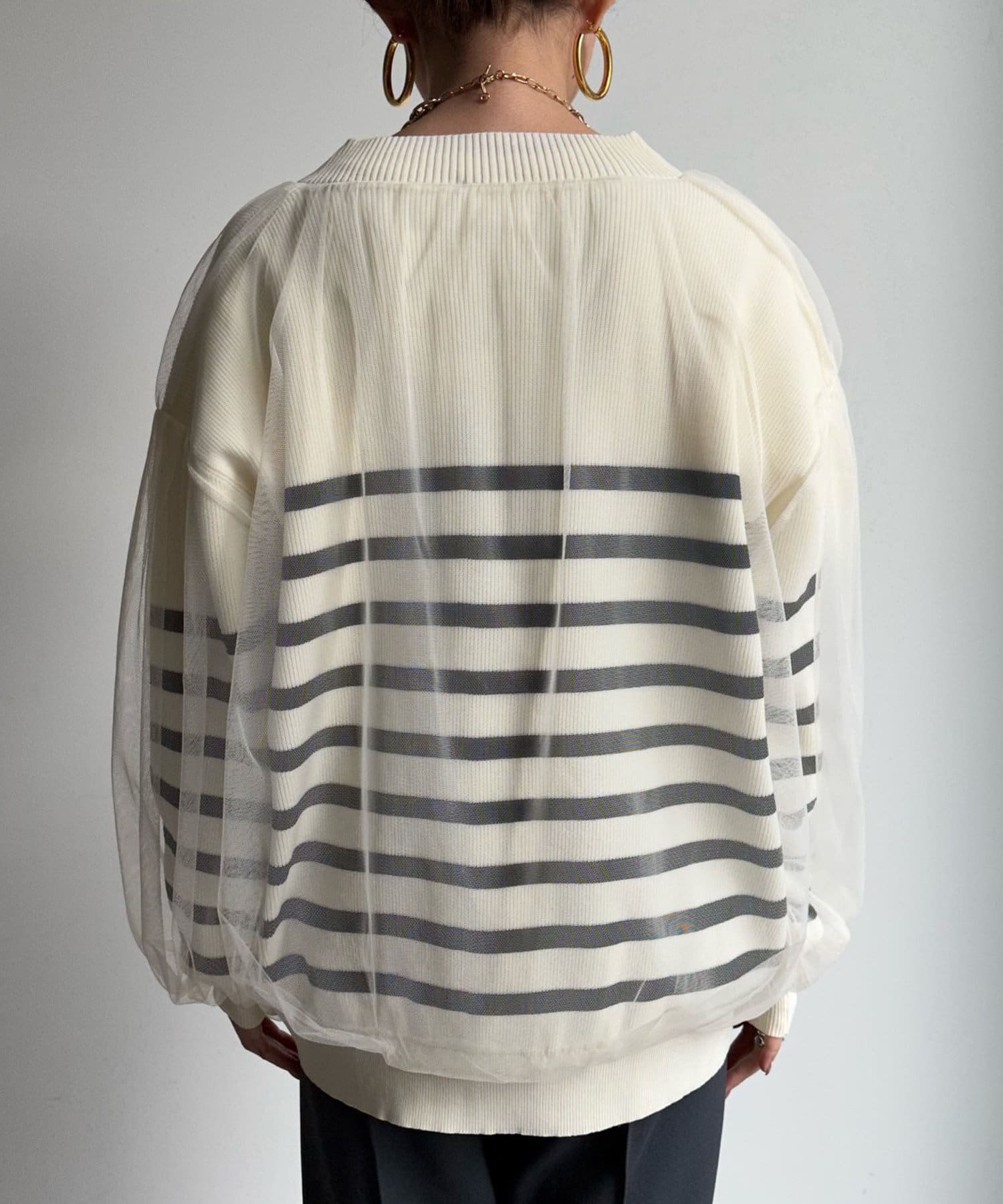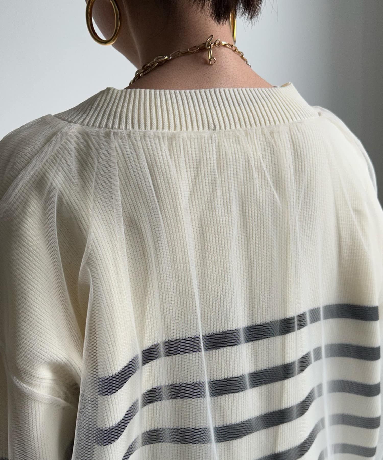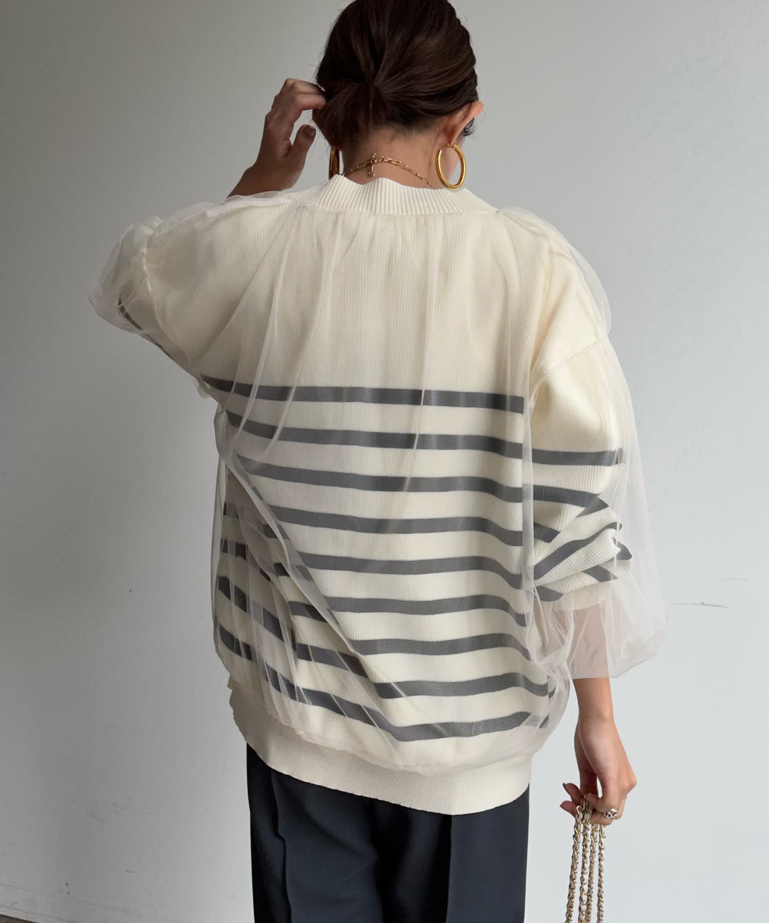 【WEB限定】チュールレイヤードボーダーニットカーディガン
