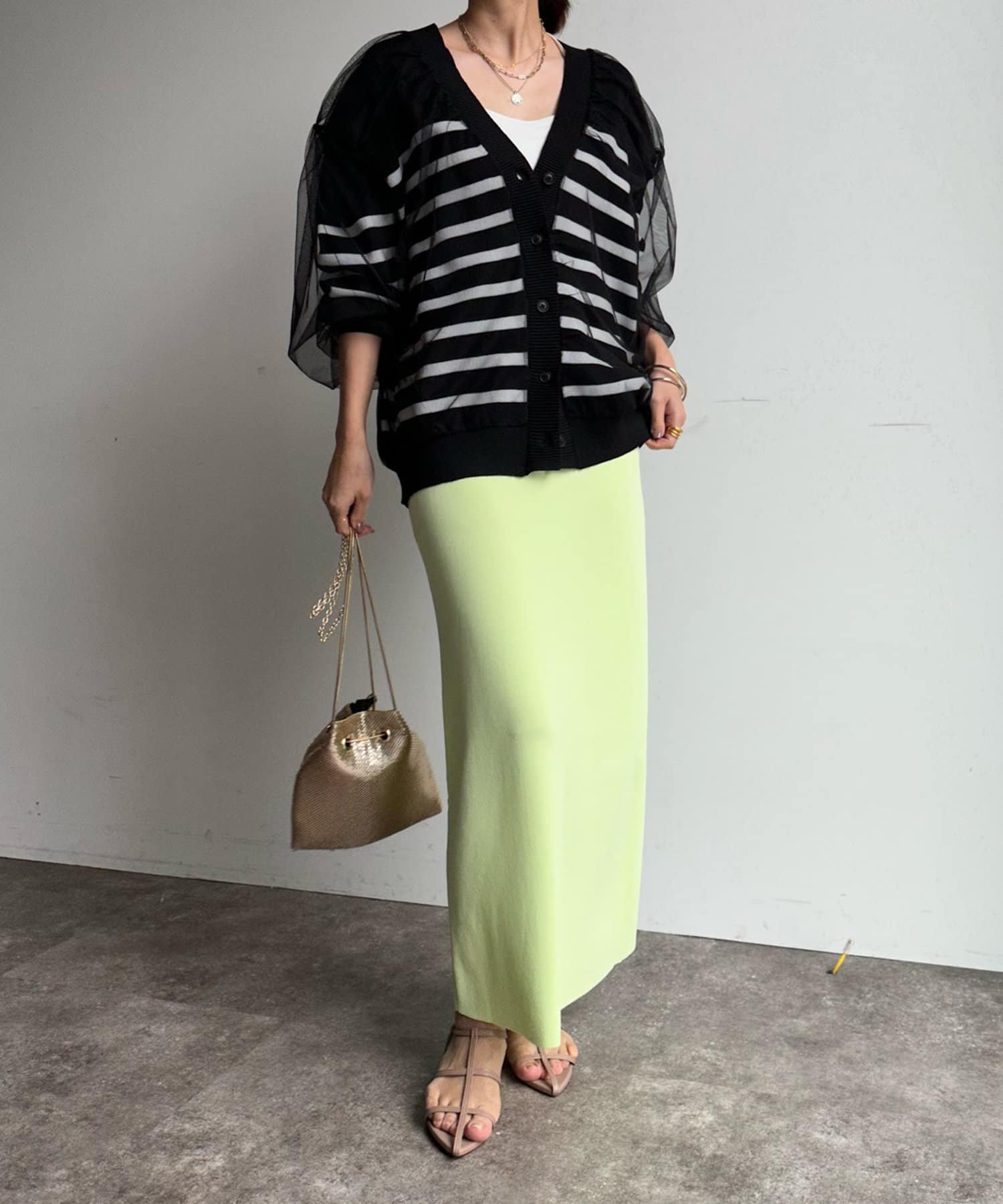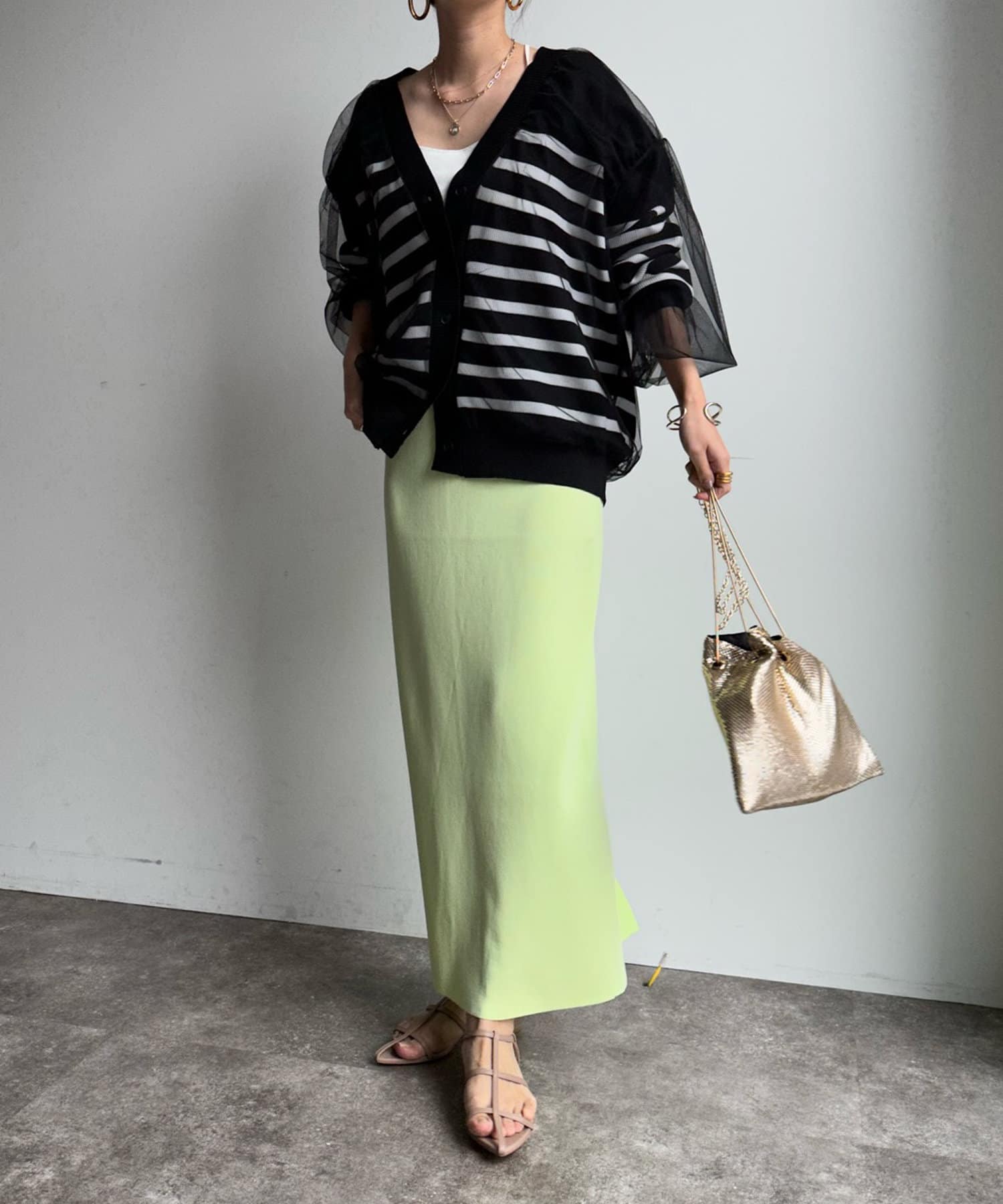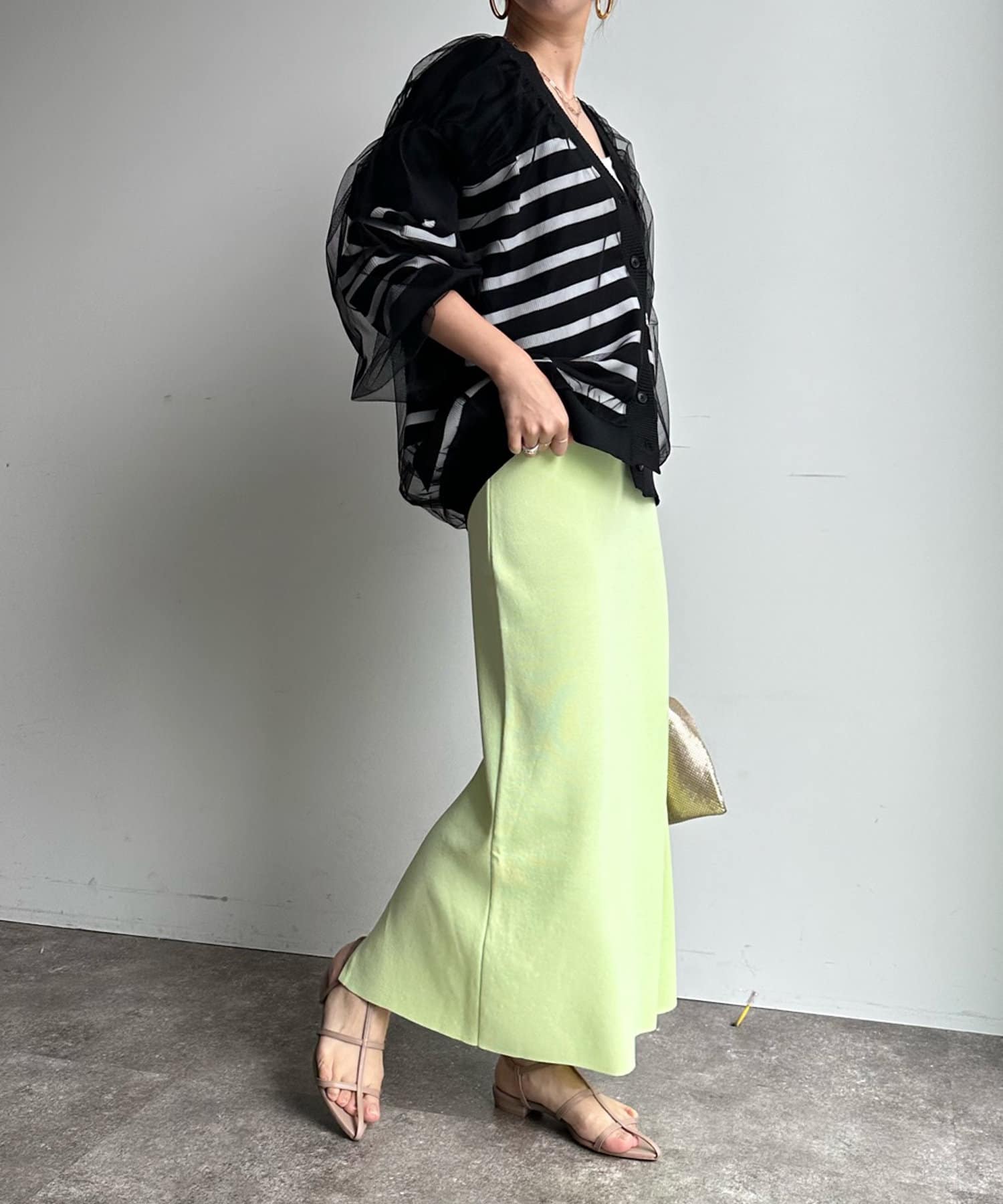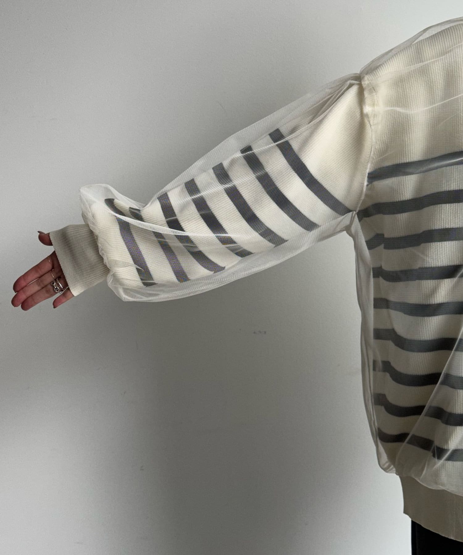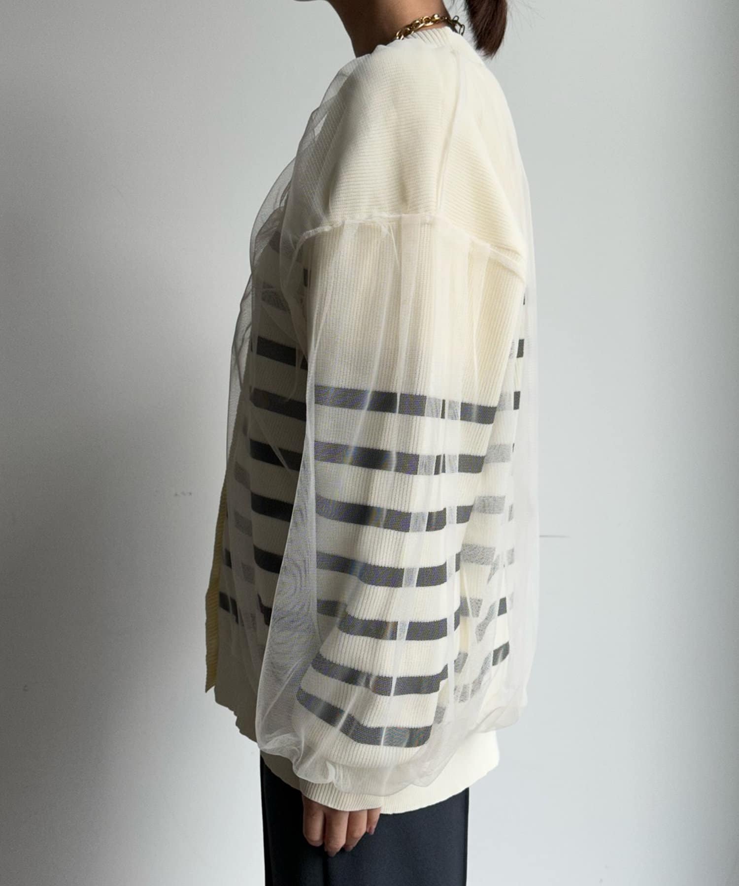 【WEB限定】チュールレイヤードボーダーニットカーディガン