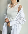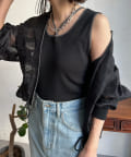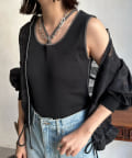 羽織りのインナーや、ヘルシーに1枚着としてもトレンディに決まるリブ素材のタンクトップ。