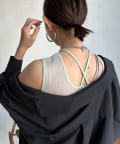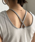 また、ネック部分の紐は前後どちらでクロスしてもかわいい仕様に。