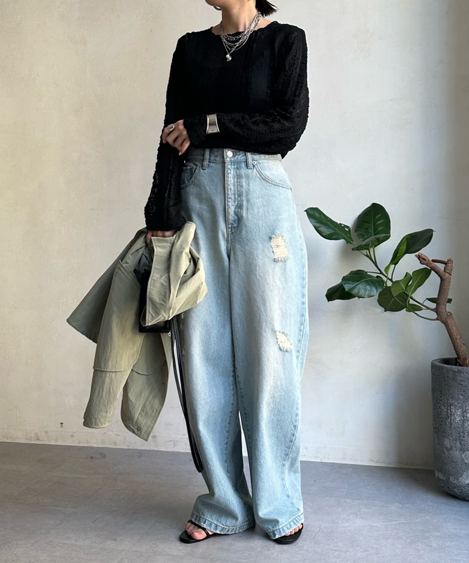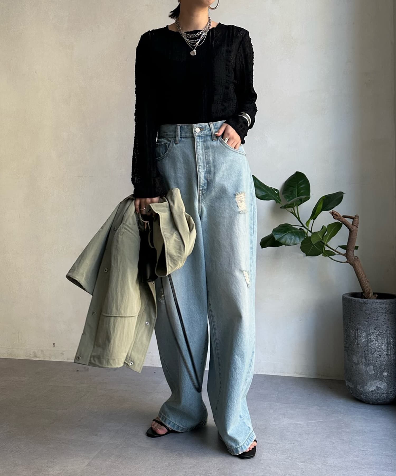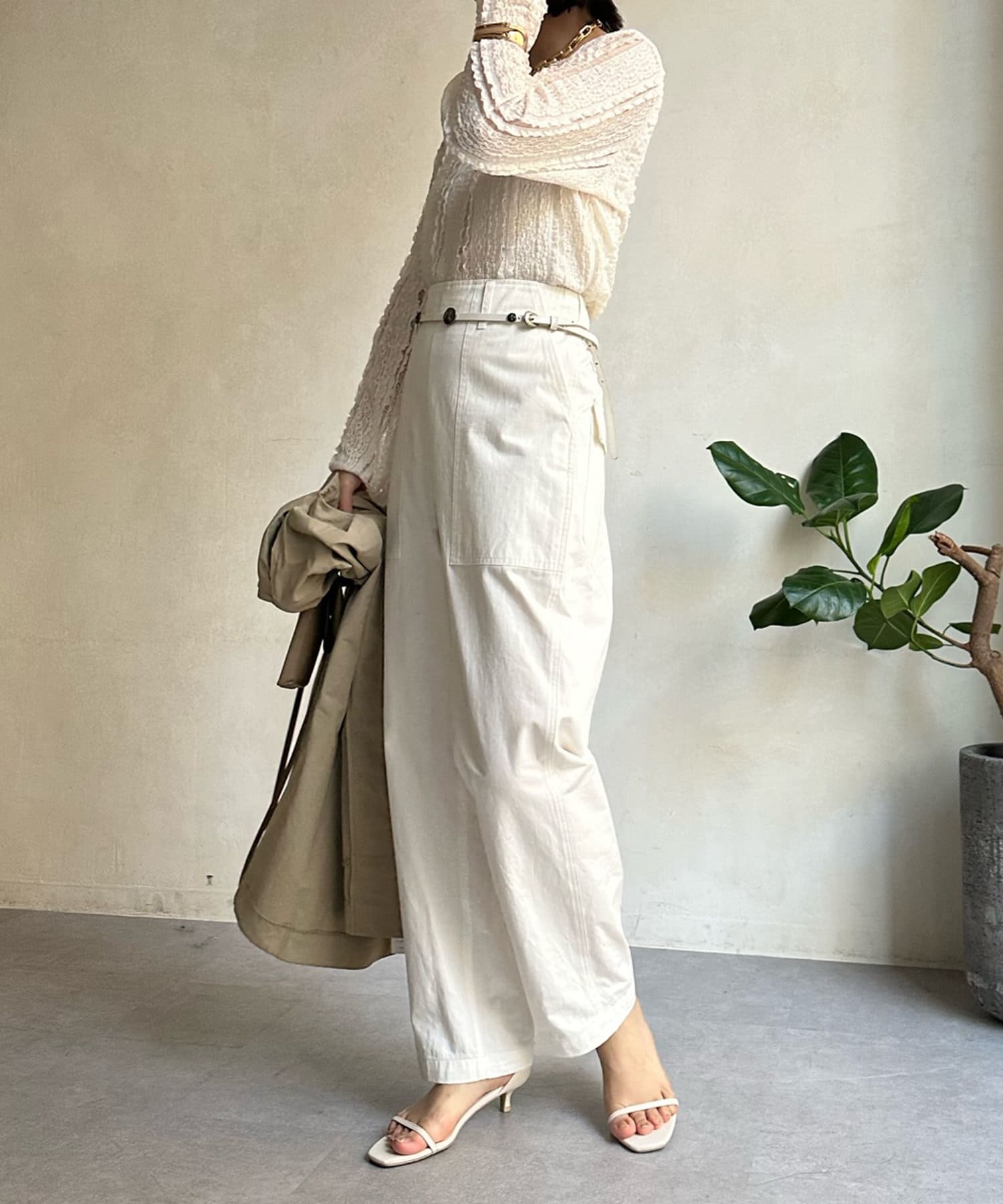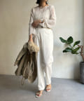 ゆとりのあるスウェットなどのプルオーバーとレイヤードしたり、インナーにキャミソールを合わせると1枚着トップスとしても着回しできますよ。