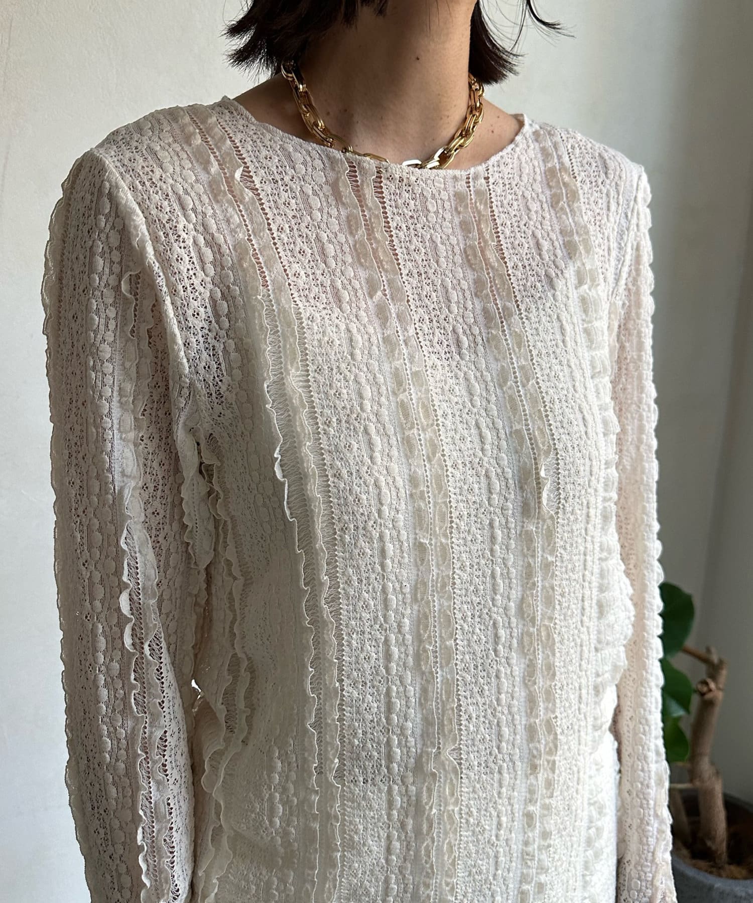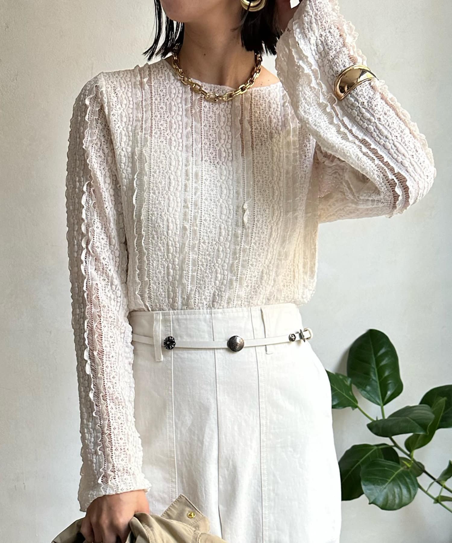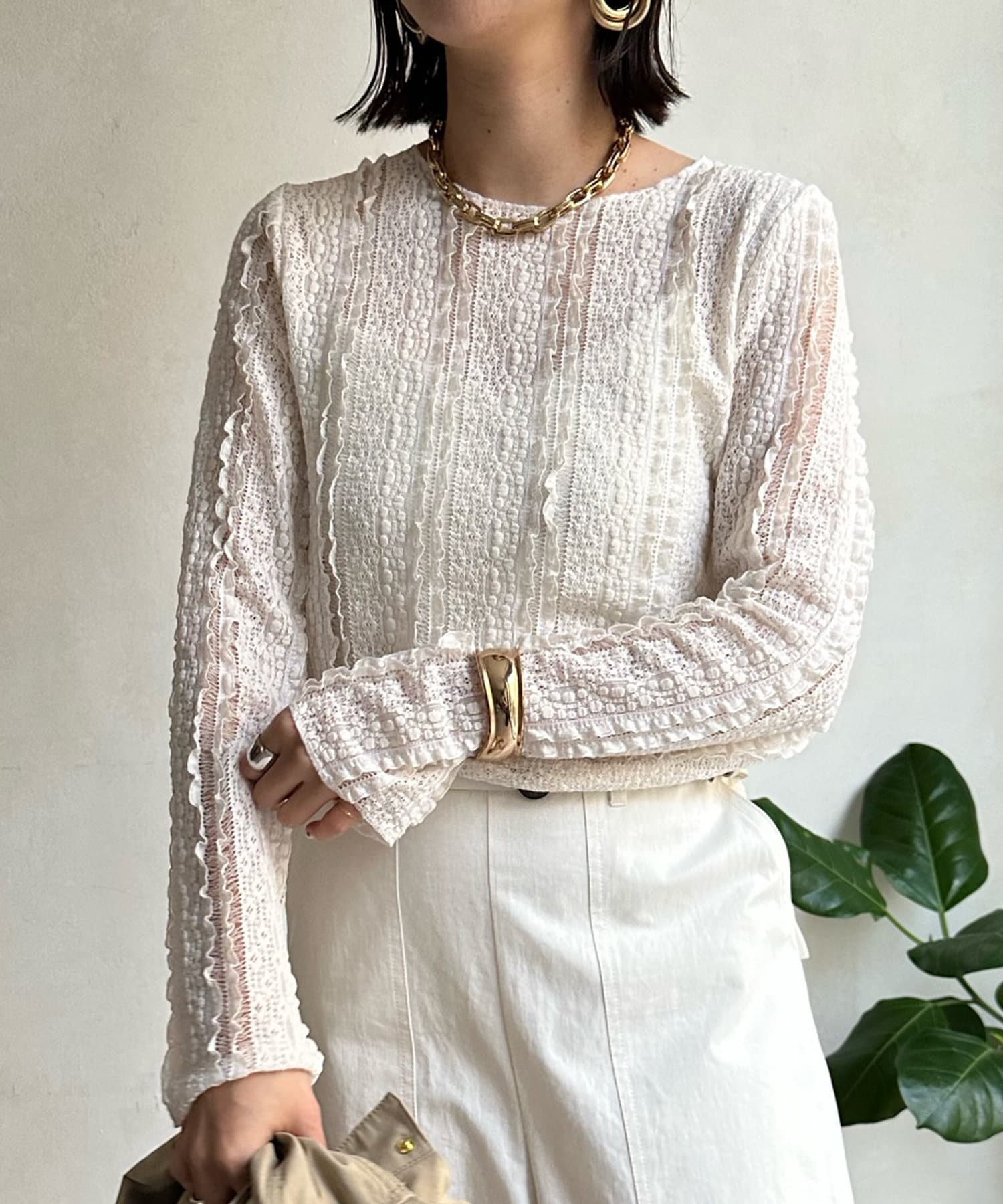 程よく伸びる立体的なレースで絶妙なこなれ感を演出。