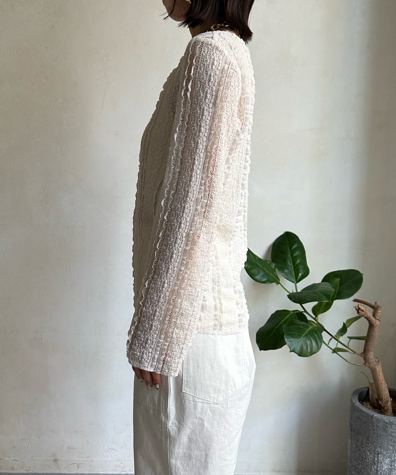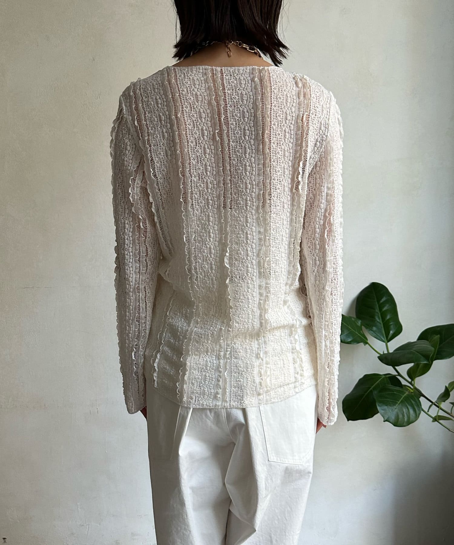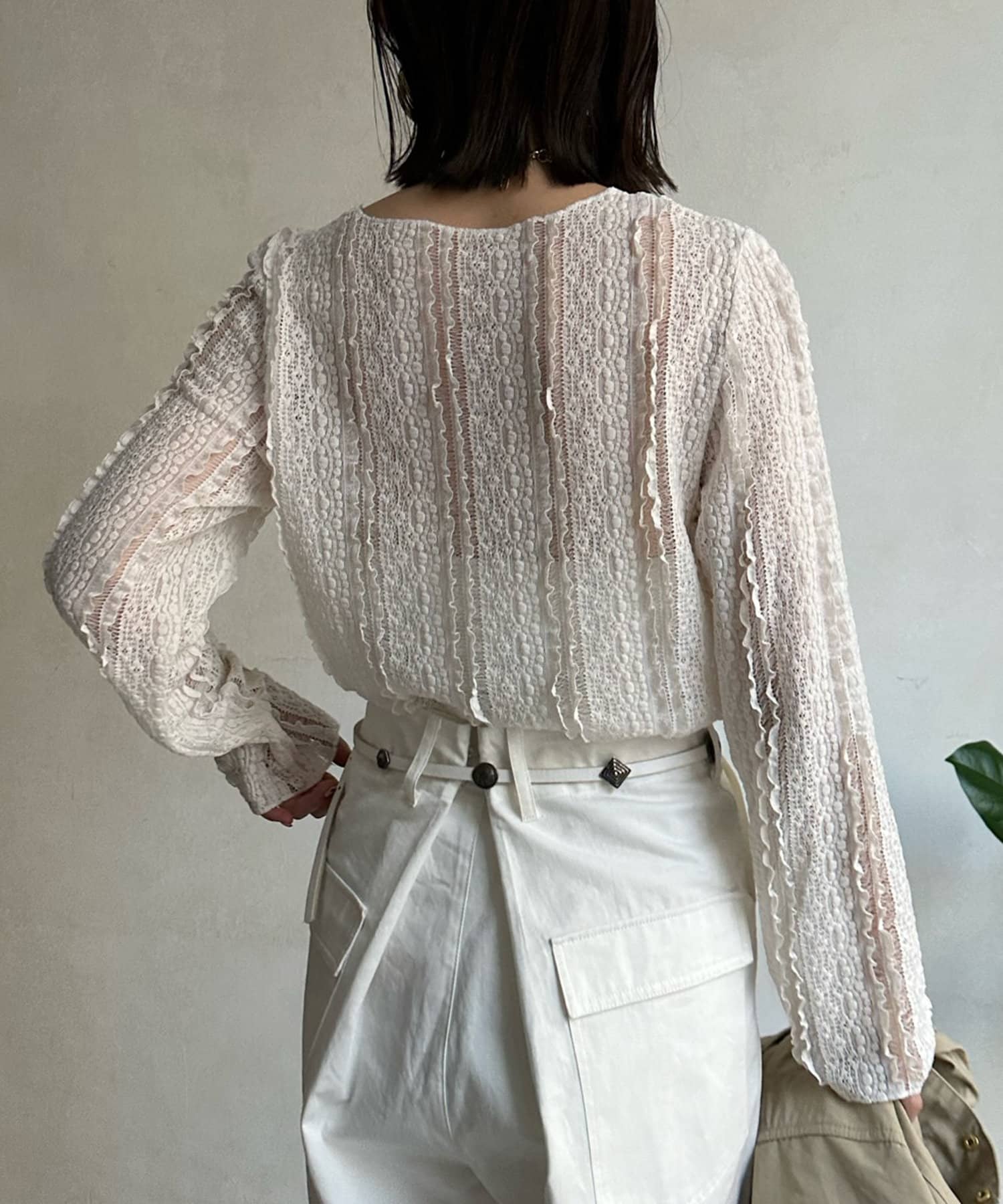程よく伸びる立体的なレースで絶妙なこなれ感を演出。