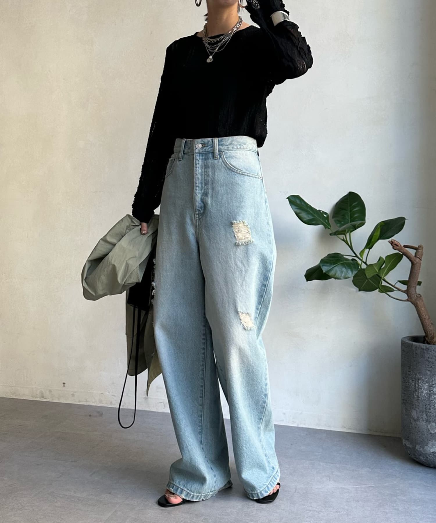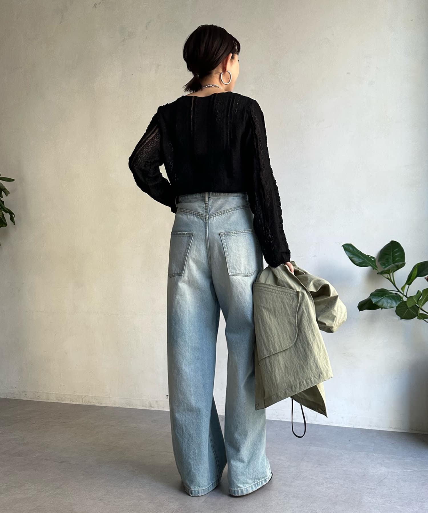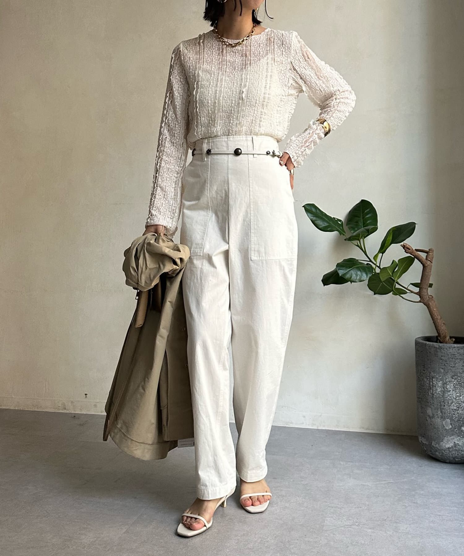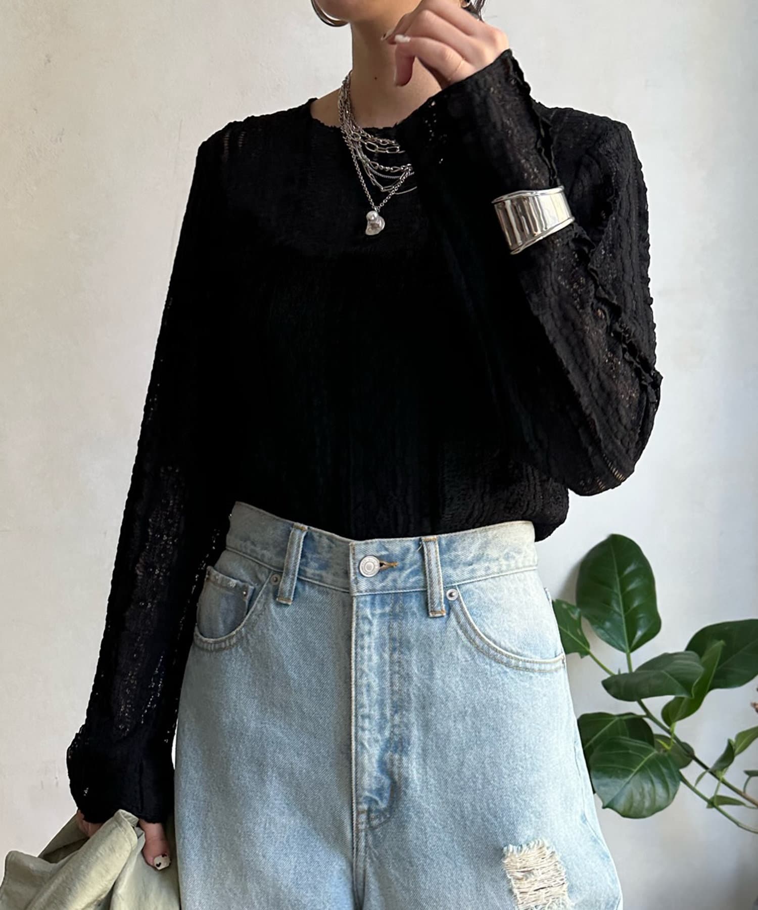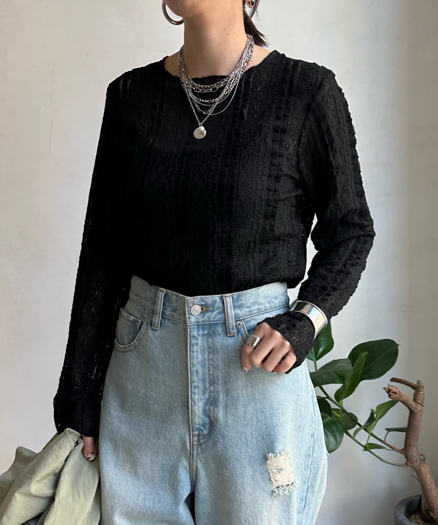 レースの凹凸感がシンプルすぎない大人でシックなスタイリングに仕上げてくれます。
