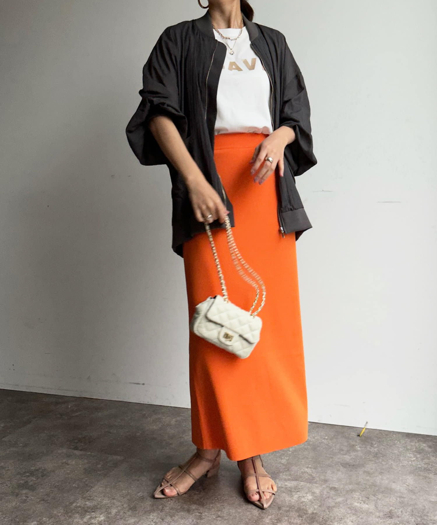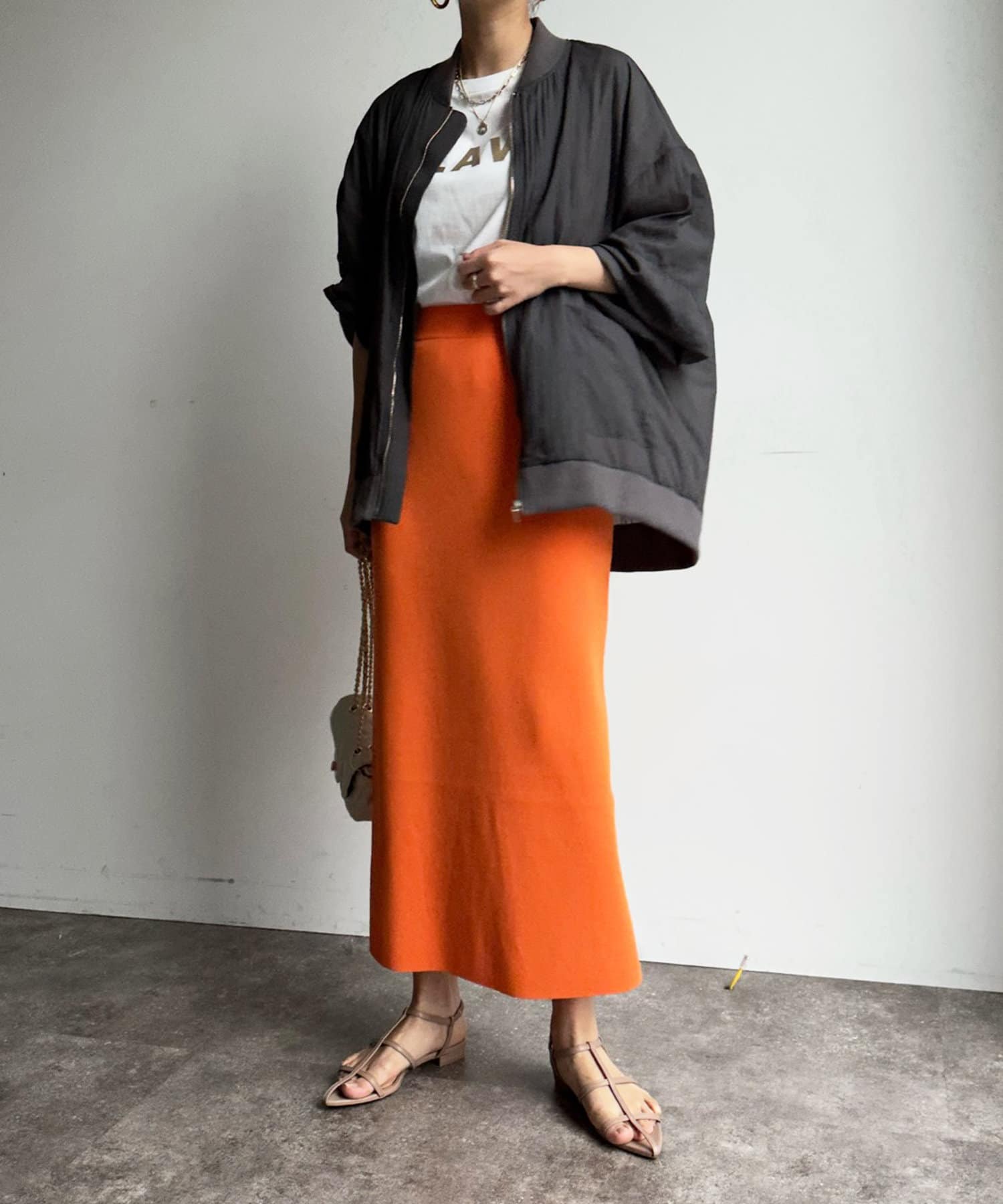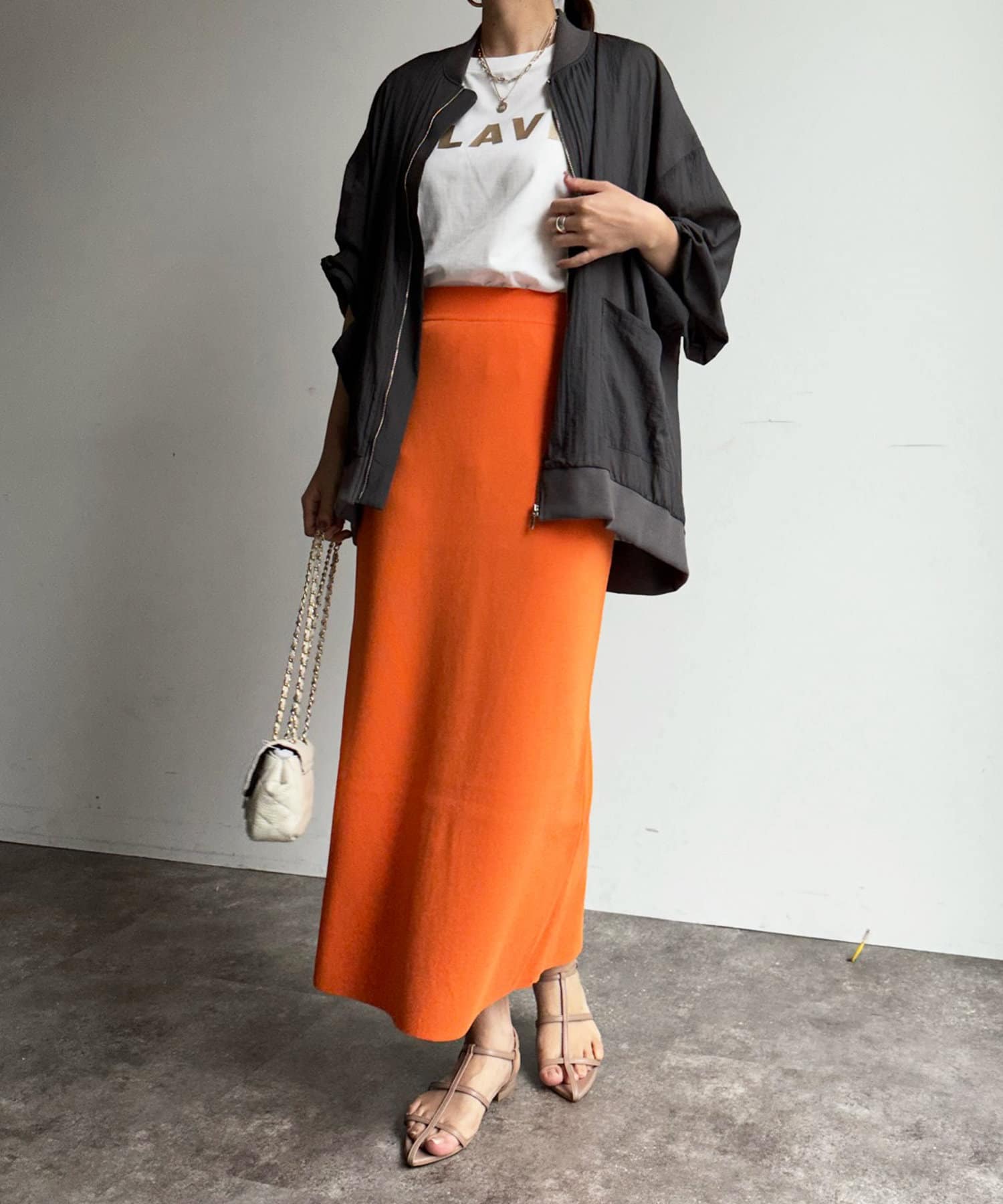一見カジュアルに見えるブルゾンですが、落ち着きのあるカラーリングと透けすぎない程よい透け感で、大人らしさを演出します。