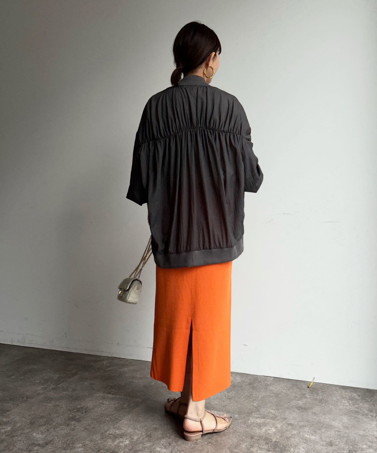シアー素材&バックギャザーデザインで抜け感たっぷり