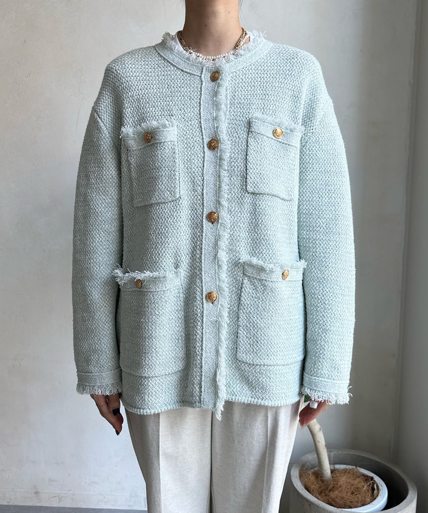 ポケット&金ボタンをあしらい、品の良さとカジュアルさを兼ね備えたニットジャケットのWEB限定アイテム。