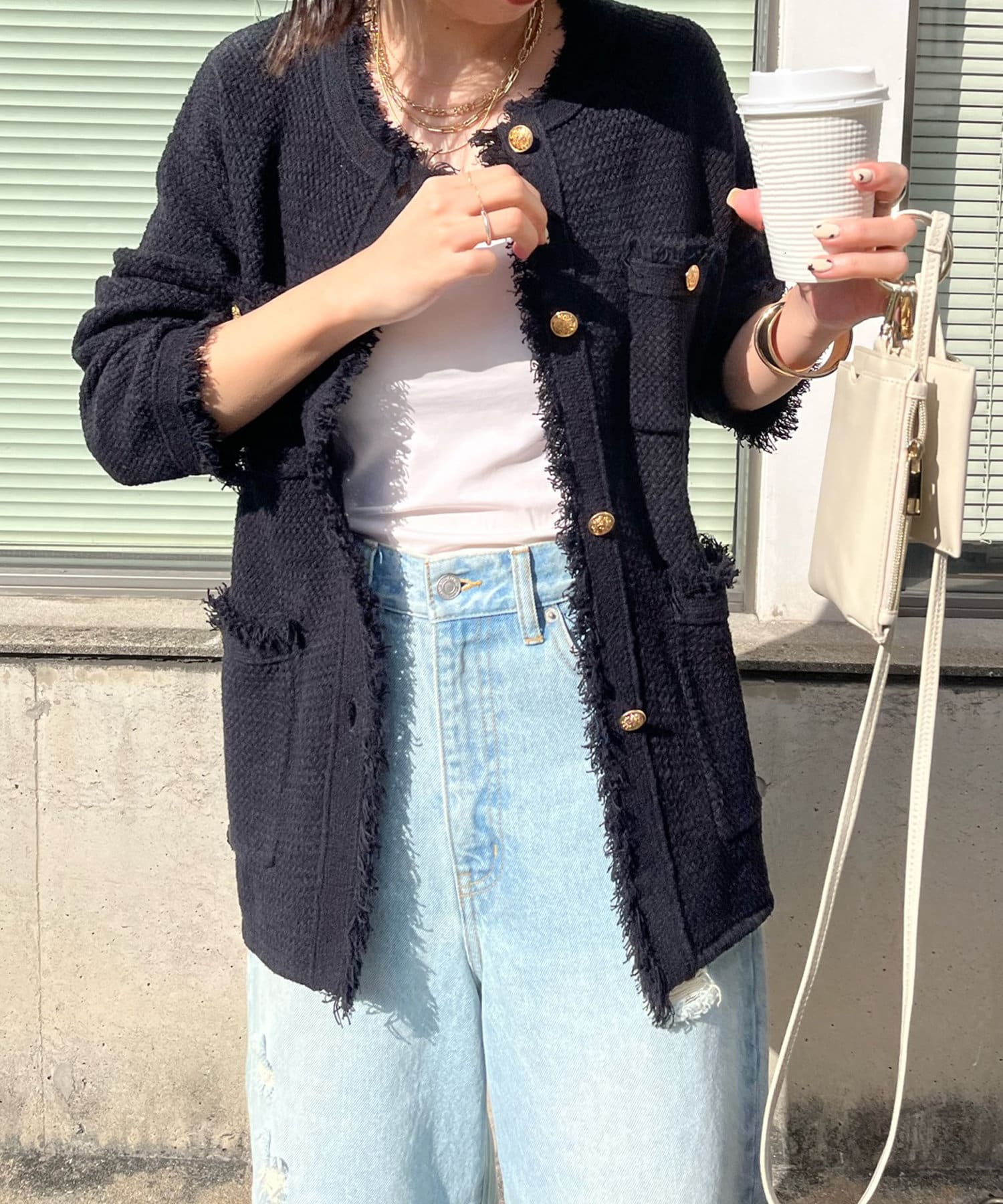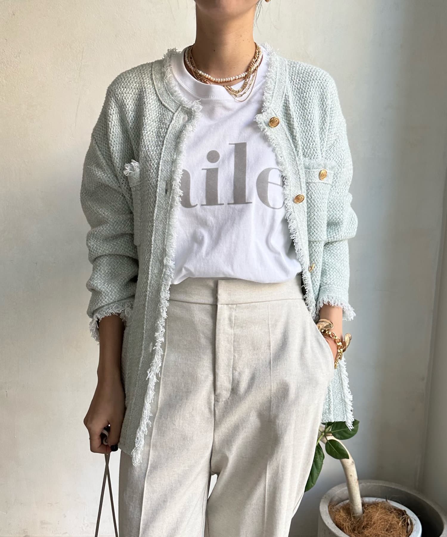 ジャケットほど固くなり過ぎず、でもカーディガンほどカジュアルにはなりすぎないバランスが、おしゃれさを引き立たせてくれます。