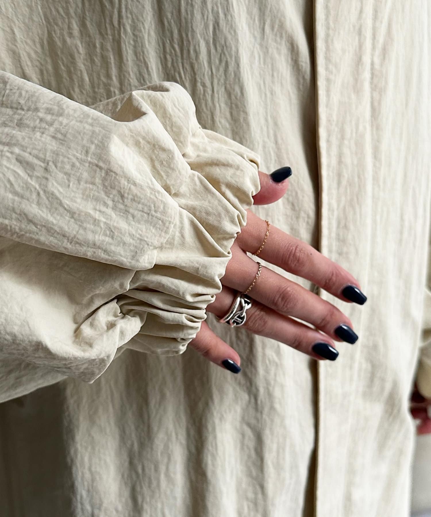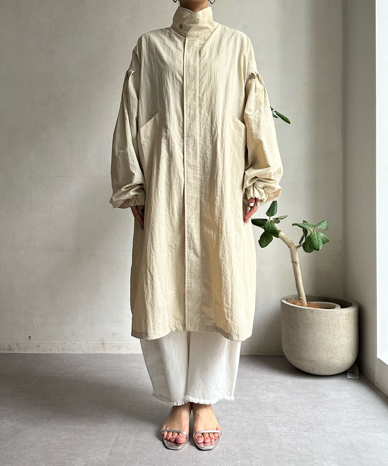 ジッパーを閉めて襟ボタンも閉じてレディーライクな ドレスのように着たり、 オープンにしてさらっと羽織ったり、 着方によって様々なイメージのコーディネートが楽しめます。
