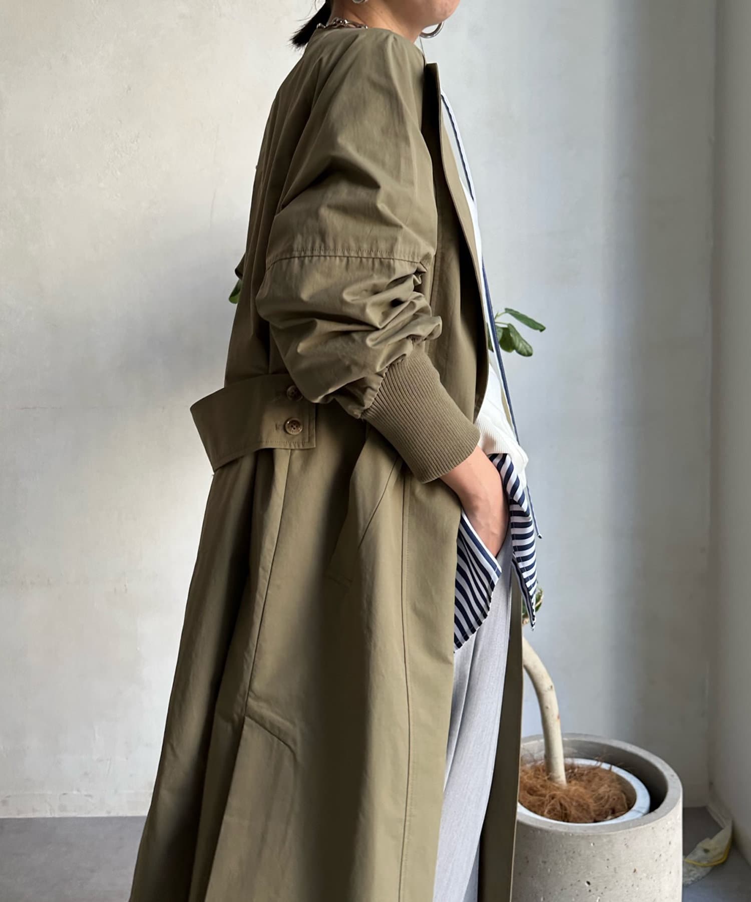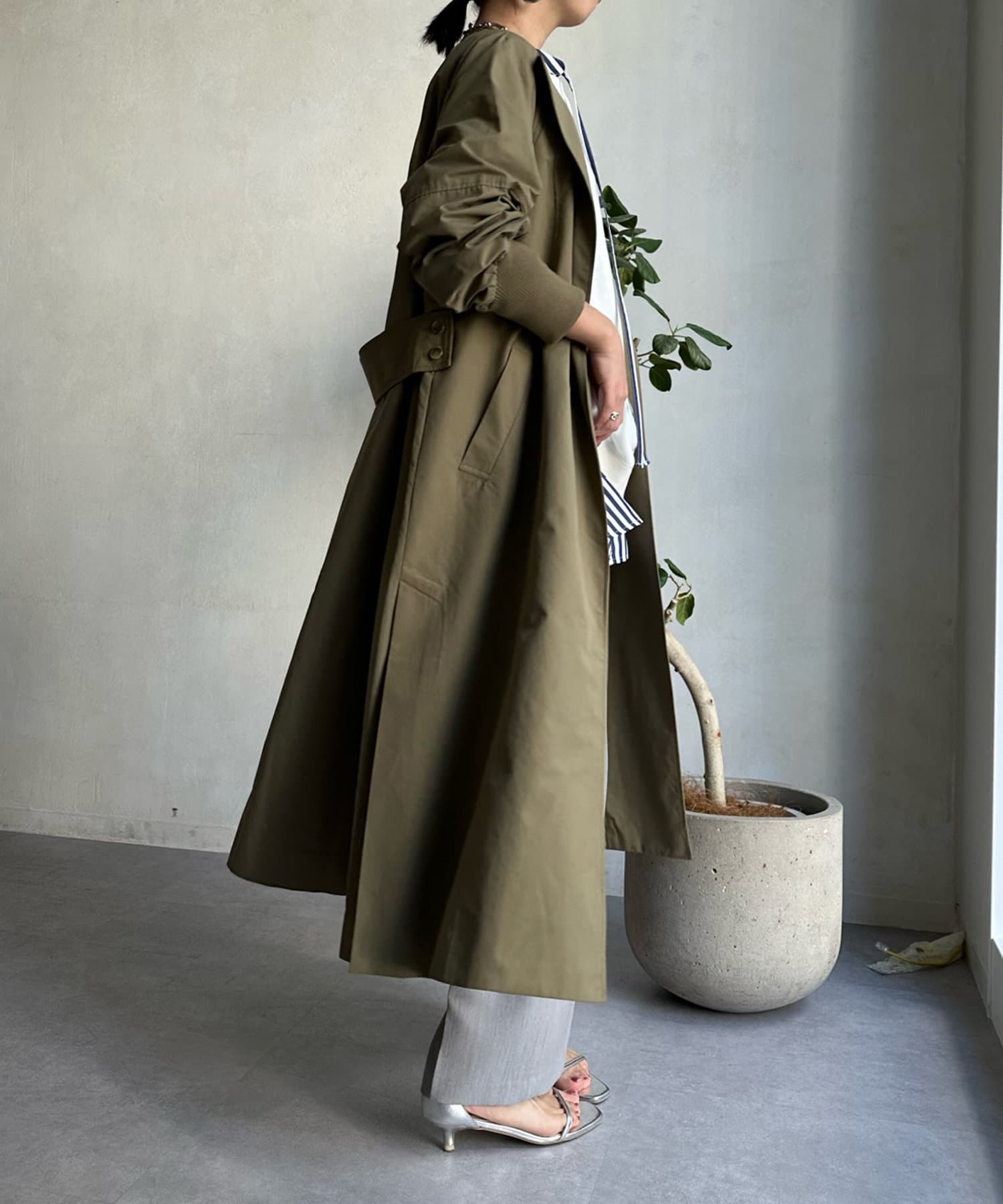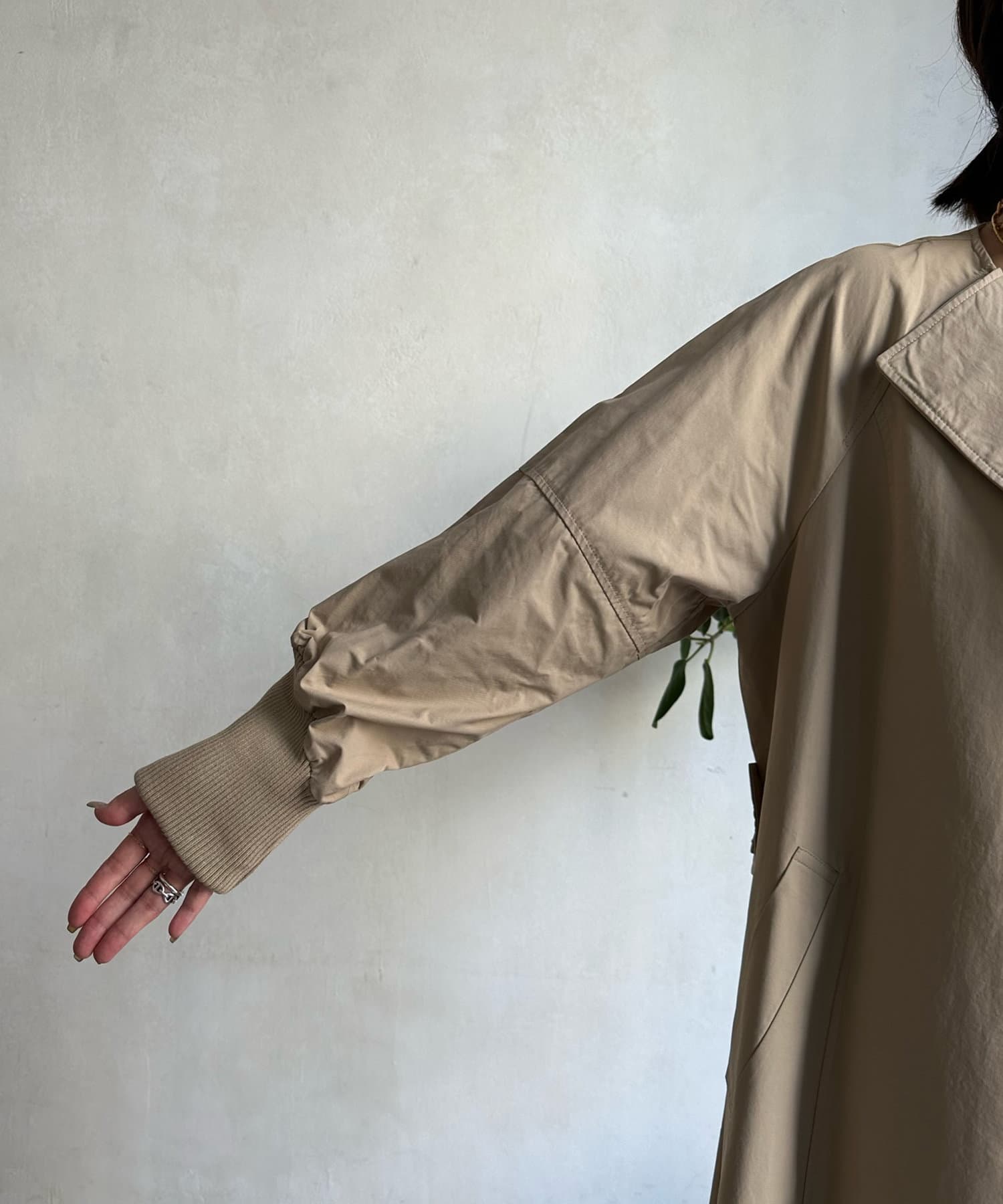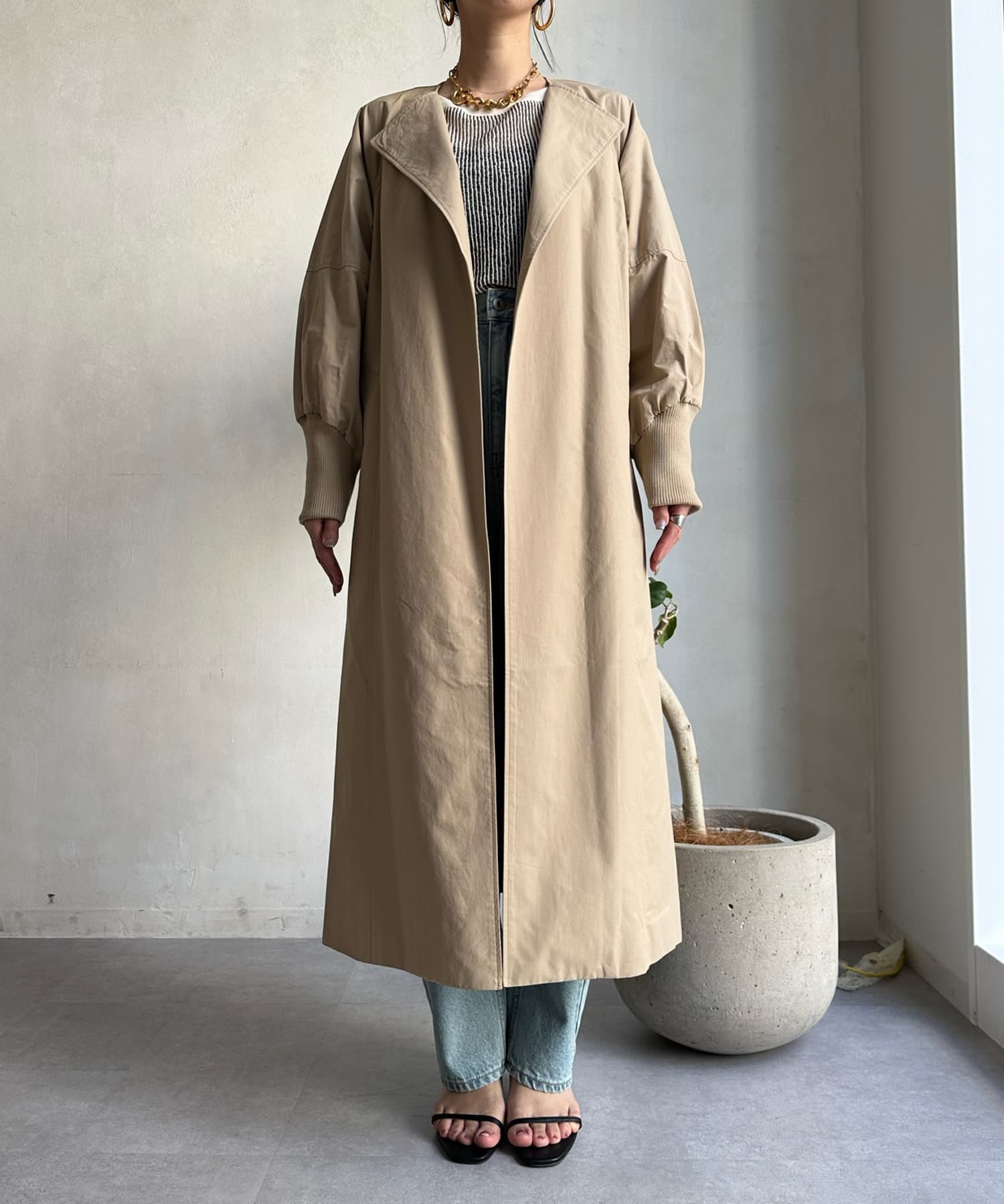 存在感のある襟が首元をすっきり見せてくれ、袖のリブをキュッと捲るとふんわりとしたボリュームスリーブになるのもポイントです。