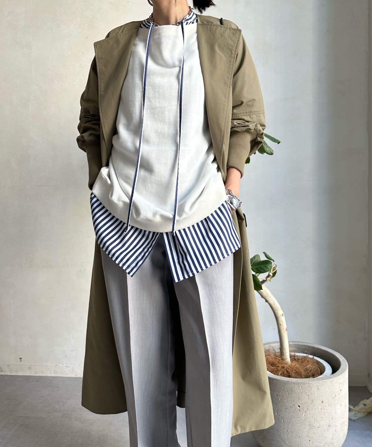フロントを開けてさらっと着流せるため、中のレイヤードも楽しみながらよりオシャレに格上げしてくれますよ。