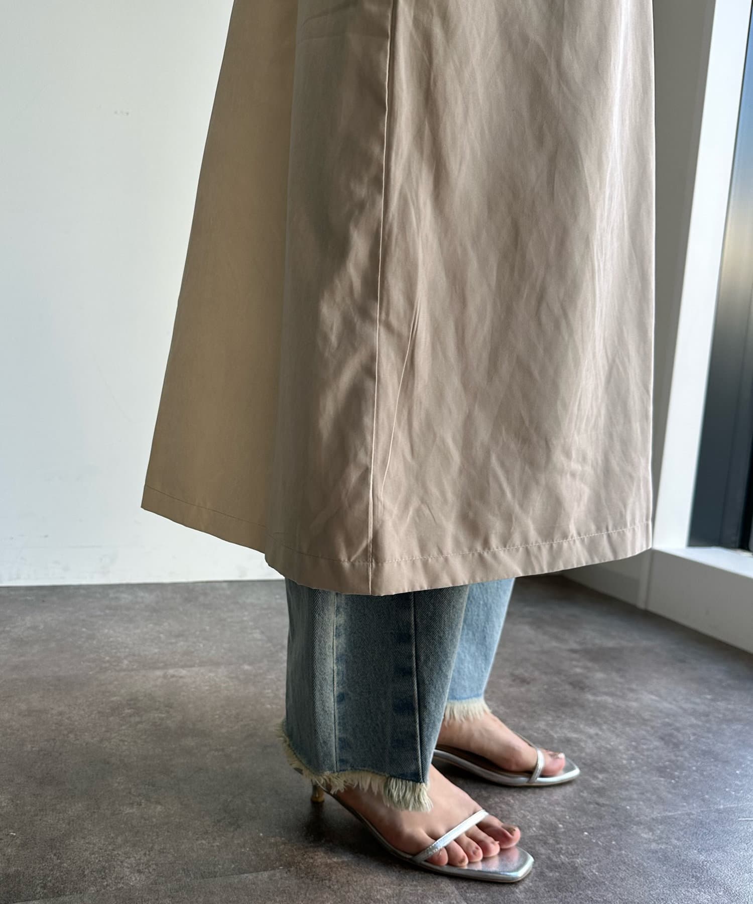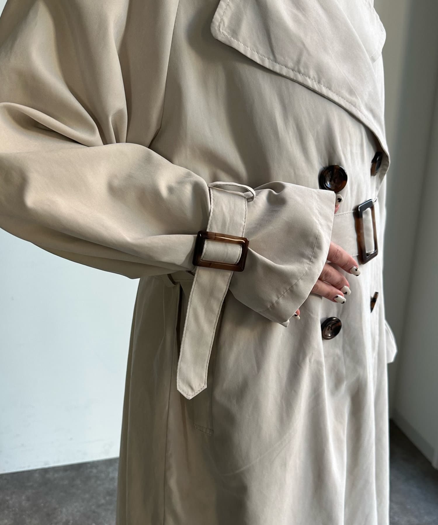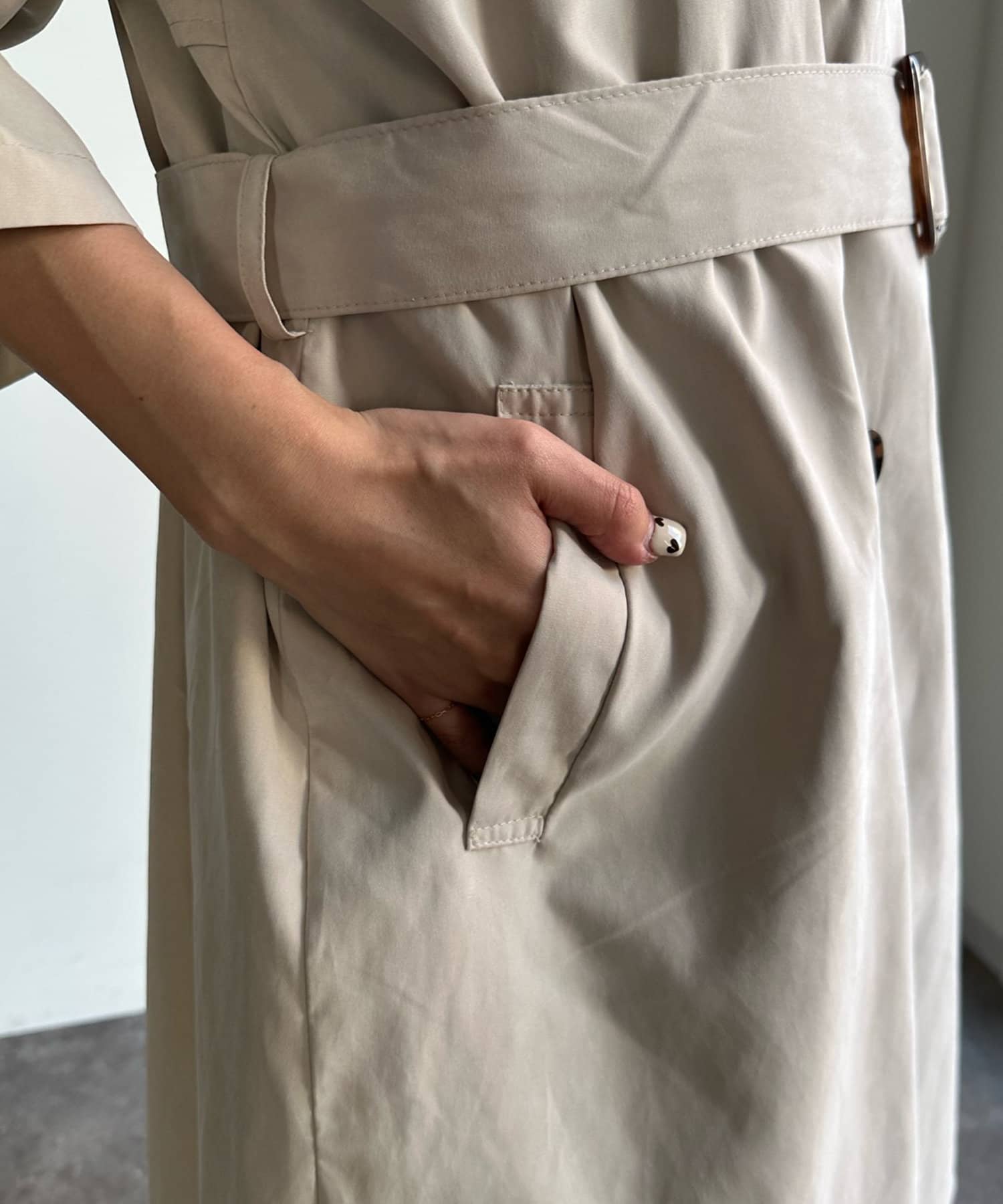 しなやかさとハリ感を兼ねそろえ、適度な厚みのあるトレンチコート。