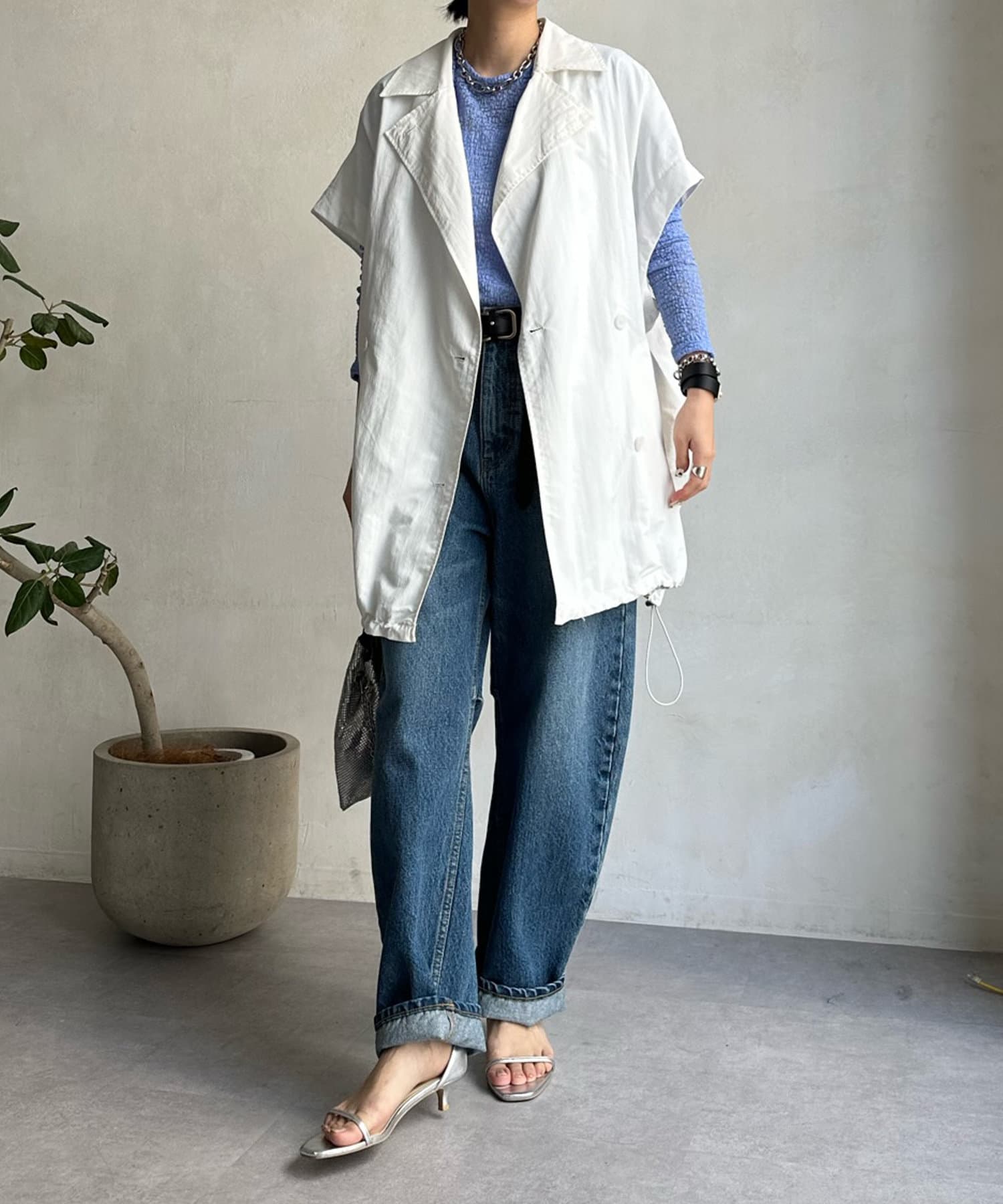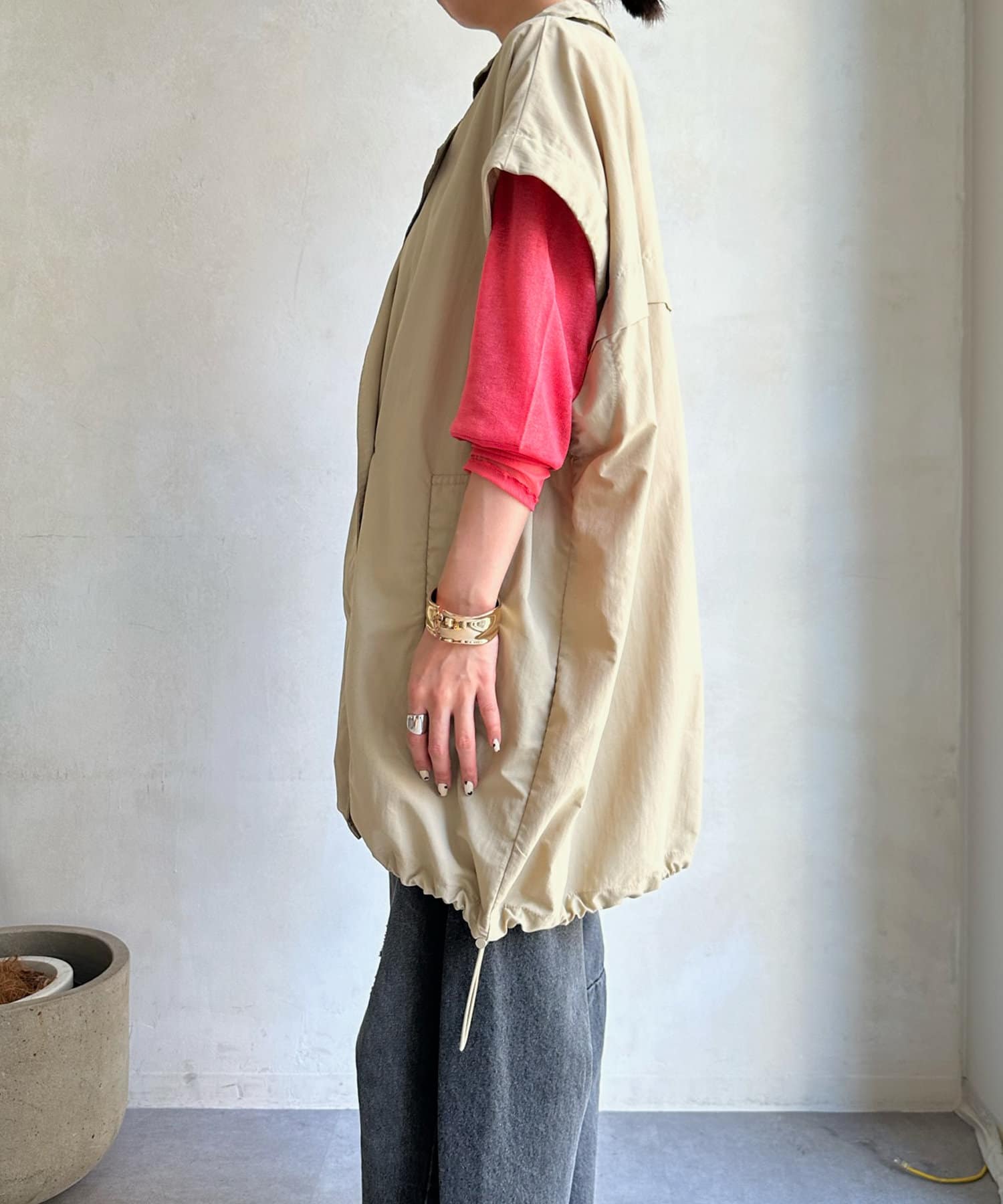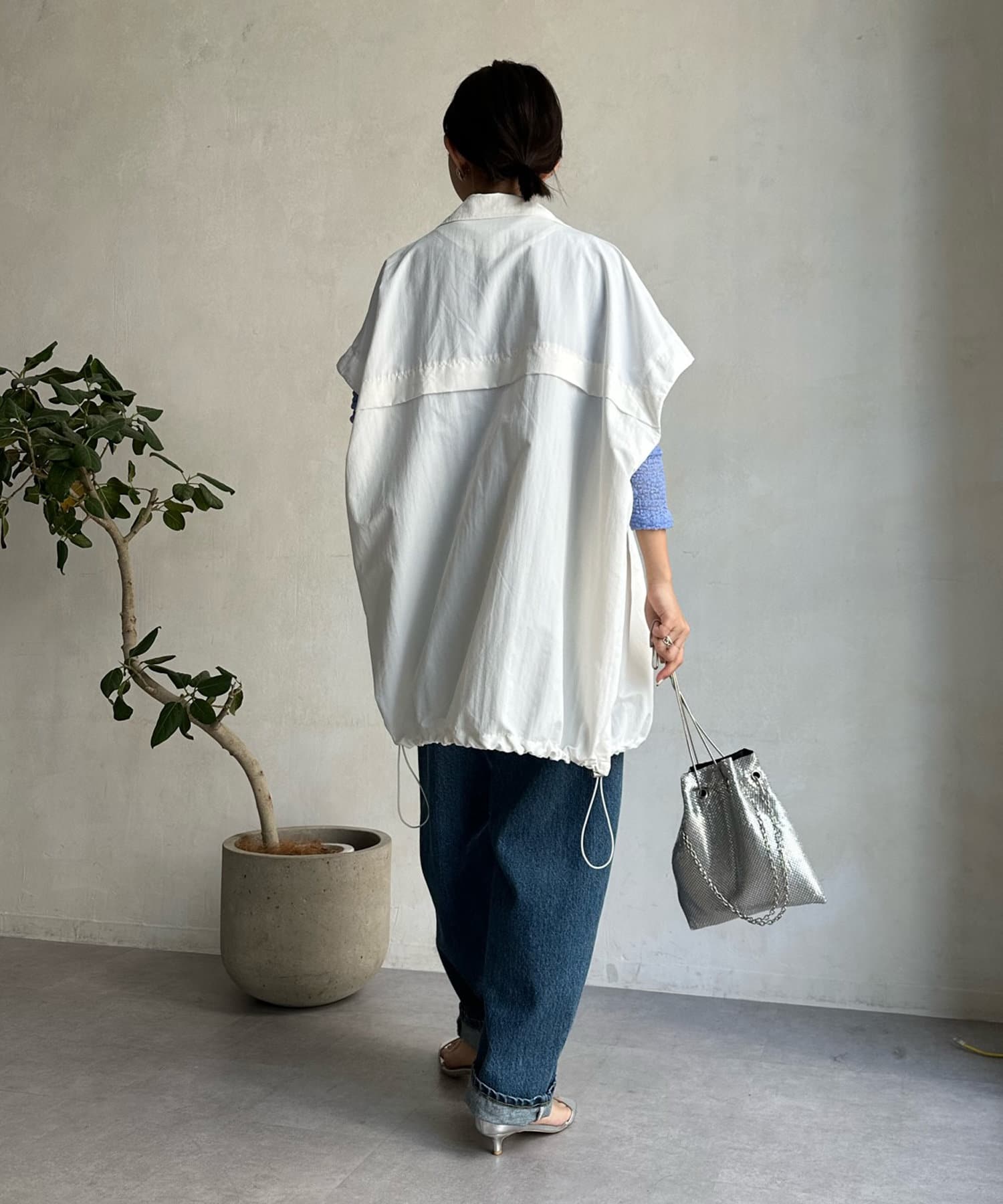 レイヤードしやすいゆったりとしたサイズ感で、袖部分を取り外すことによって、ベストのように着ることが出来る2way仕様!